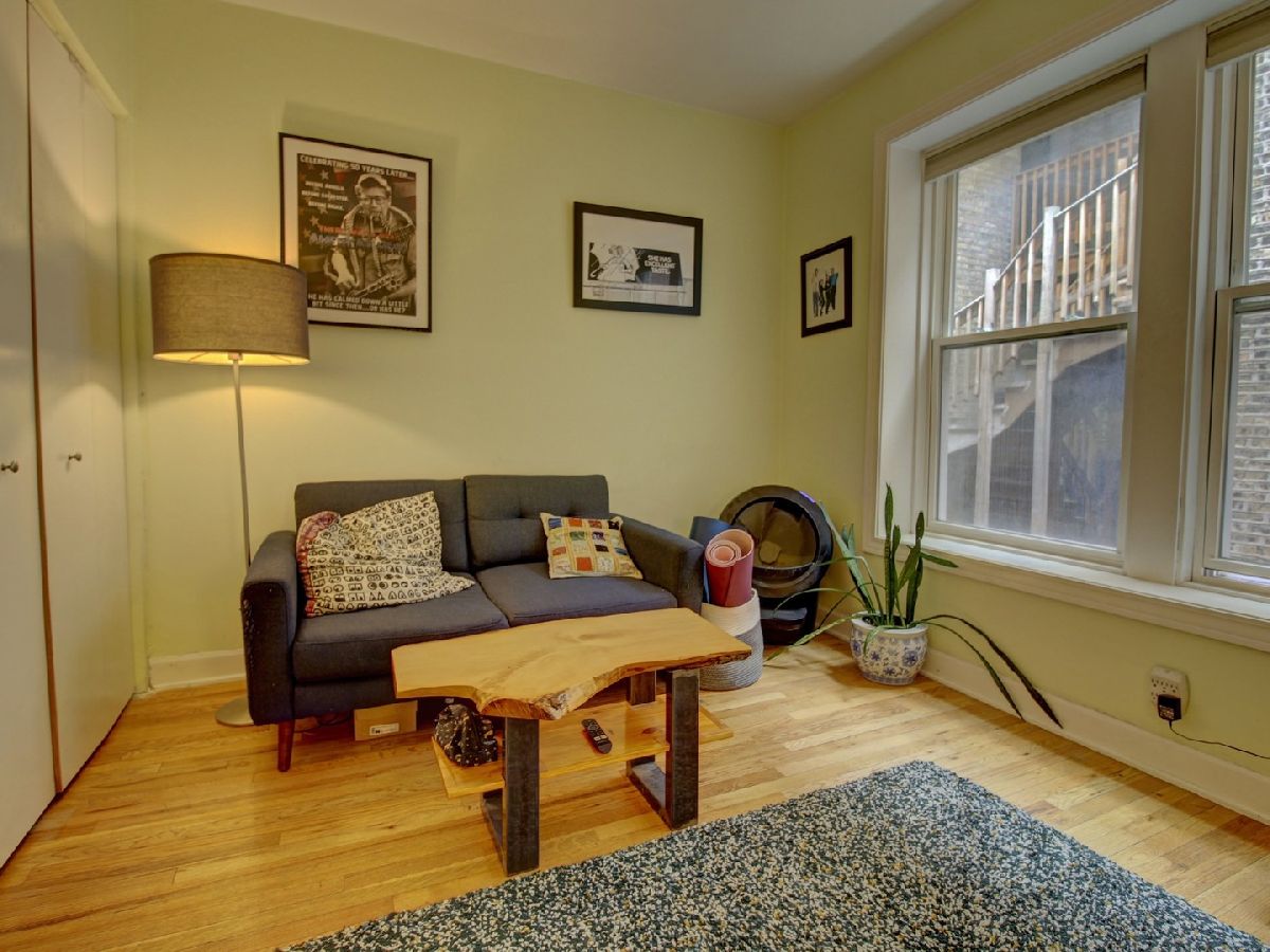 Come fall in love with this gorgeous light-filled condo in a charming courtyard building. This unit has been tastefully updated and features: remodeled kitchen (2019) with white shaker cabinets, tile backsplash, granite counters and stainless appliances, remodeled bathroom (2019) with new marble flooring, vanity, and walk in shower, newer lighting fixtures throughout, updated pluming and electrical, all new windows (2019), beautiful large living room with wood burning fireplace and custom built in bar and balcony overlooking the courtyard for entertaining and grilling. The building allows units to install in-unit laundry or there is free laundry in the basement. In addition, there is a bike room and a HUGE storage closet assigned to the unit. Mini split was installed in 2019 to provide heating and cooling for the entire unit though the current owners rarely used the heat function as the building provides radiator heat and gas included in the HOA. All of this is in the perfect location steps from the lake, shopping dining, bus, train, Wrigley and more!