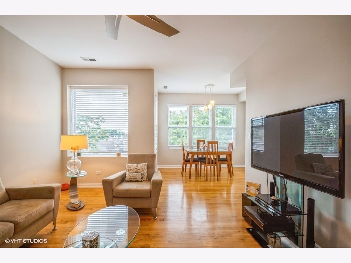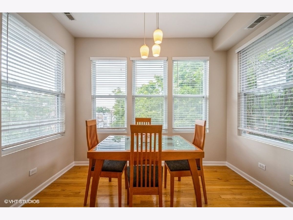 This original owner's unit is located on the top floor of a very well maintained 18 unit complex in Albany Park. Just under 1100 SF, this sun filled private end unit has 2 spacious bedrooms, 1 full bath with a whirlpool, plus washer and dryer. The entryway features a large open foyer which leads into a welcoming sized Livingroom and separate dining room... Beautiful hardwood floors highlight the whole condo, along with freshly painted walls, of course adds to its total luster. Generous size kitchen features ss appliances, granite counters, 42" cabinets, wine rack, and eat in area for a table. Enjoy your private balcony on the brand new deck. There's also a separate storage unit. **Best of all (with only 5 parking spaces total) this seller has the designated end spot for easy access in and out! Blocks to the Kimball Brown Line, minutes from expwys, Metra, restaurants, shops, grocery, schools, Eugene park, etc.!