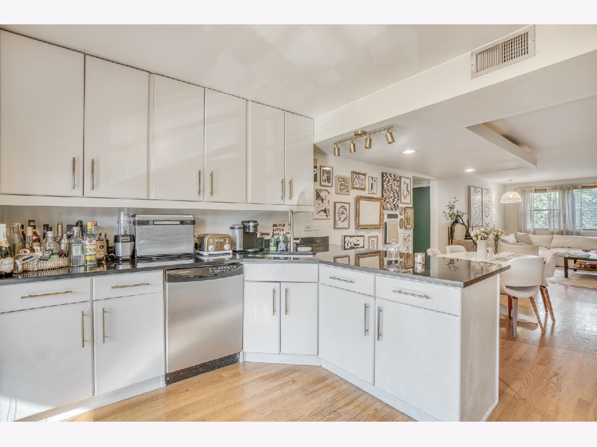 Welcome to this charming condo located in the desirable Irving Park neighborhood. Step inside and be greeted by the freshly painted interior (2021) creating a bright and inviting atmosphere throughout, open concept living with hardwood floors and in-unit washer/dryer (2018)! Kitchen features 42" cabinets, stainless steel appliances, granite countertops, and wrap around peninsula. Generous private deck off the back provides the perfect setting for hosting gatherings, enjoying al fresco dining, or simply unwinding after a long day. 2 car tandem parking space is included ensuring that parking is never a hassle. The new tasteful light fixtures add a touch of elegance to the space, enhancing the overall aesthetic appeal. Additionally, the large outdoor patio space Situated in a prime location, this home offers an array of nearby amenities and attractions. Just a bus ride down from Wrigleyville! Nature enthusiasts and pet owners will appreciate the proximity to California Park, Horner Park, and Clark Park a beautiful green space perfect for picnics, walks, and outdoor activities. For those seeking retail therapy or a quick caffeine fix, you'll find the convenience of Addison Mall just moments away, which includes popular establishments such as Target and Starbucks. Jewel Osco, is only 4 blocks away, making grocery shopping a breeze. And if you're in the mood for some delicious fast food, both Portillos and Chick-Fil-A are just a short 5-blocks away. If you want something more upscale you can find Smoque Steak House and other fine dining options all within reach. Conveniently located down the street from Addison blue line and highway entrance. Welcome home!