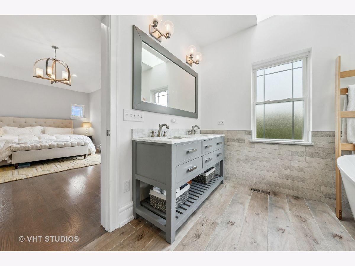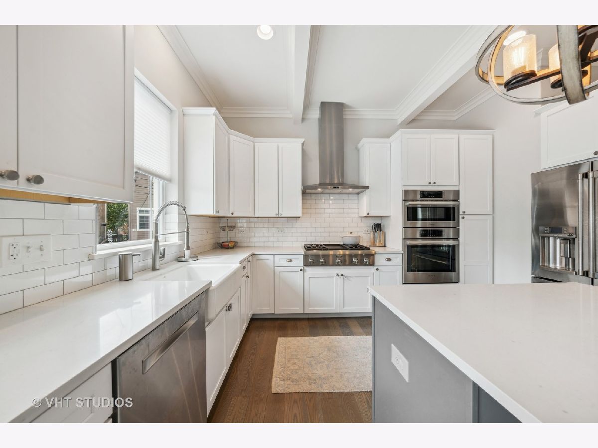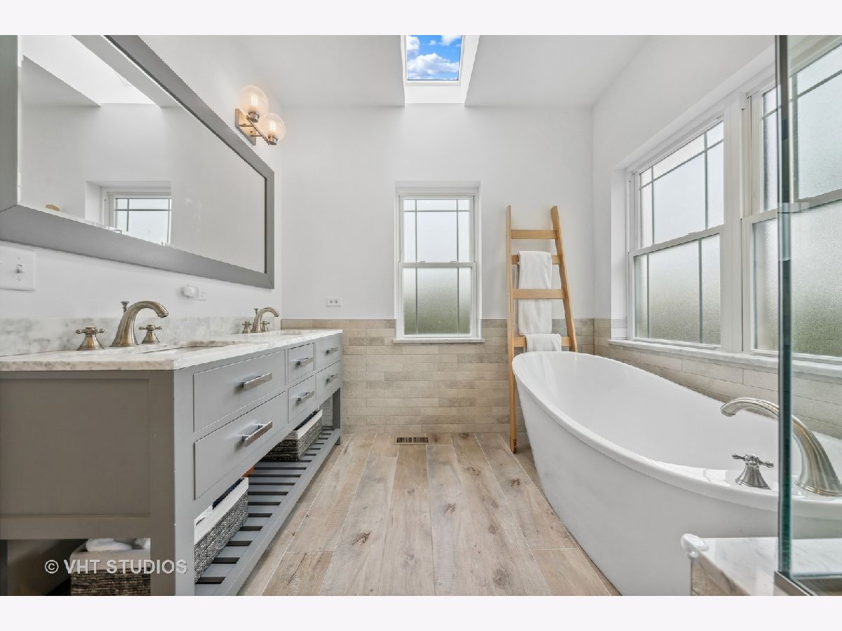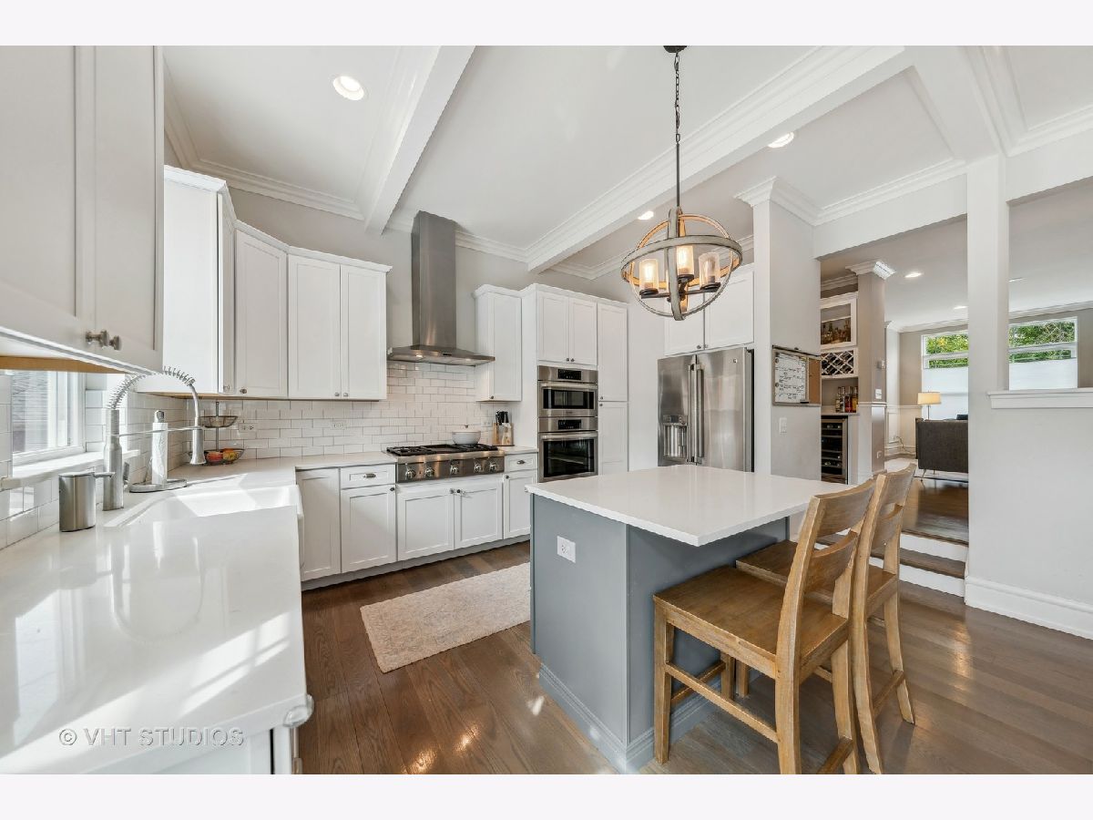 Experience the perfect combination of modern amenities and classic architectural details in this charming 4 Bedroom, 3.5 bath single-family home nestled in the heart of Villa District of Irving Park Neighborhood. Located on a serene, tree-lined street, this spacious home is perfect to enjoy the perks of urban living while maintaining a peaceful atmosphere. This home provides a spacious open floor plan, the living room, dining room with butler's pantry and built bar, two gas burning fireplaces, and kitchen area create the perfect setting for entertaining guests. The kitchen is equipped with stainless steel appliances, an island, and granite countertops. Step out onto the covered deck and fenced-in backyard, ideal for hosting and barbecuing. The second-floor houses three bedrooms, each with ample closet space and natural light, a full bath w/ tub, laundry closet equipped with a sink, cabinetry, and full-size front loading washer and dryer. The primary bedroom features a luxurious en-suite bathroom with a soaking tub and separate shower, organized walk- in closet, and balcony deck where you can enjoy your morning coffee. The lower level of the home includes a spacious family room w/ a built in bar with cabinets, a fourth bedroom, with ample closet space, and a full bathroom, radiant heated floor throughout, and grage access. This single-family home is located on a corner lot, offering ample space and privacy. The home also includes an attached two-car garage with a heated driveway, and central heating and cooling systems for year-round comfort Don't miss out on this one-of-a-kind opportunity to own a spacious and stylish residence in the heart of the highly sought-after Villa District of Irving Park neighborhood! Prime location with easy access to local amenities such as parks, schools, shopping centers, eateries, the Metra, Blue Line train and Kennedy Expressway.