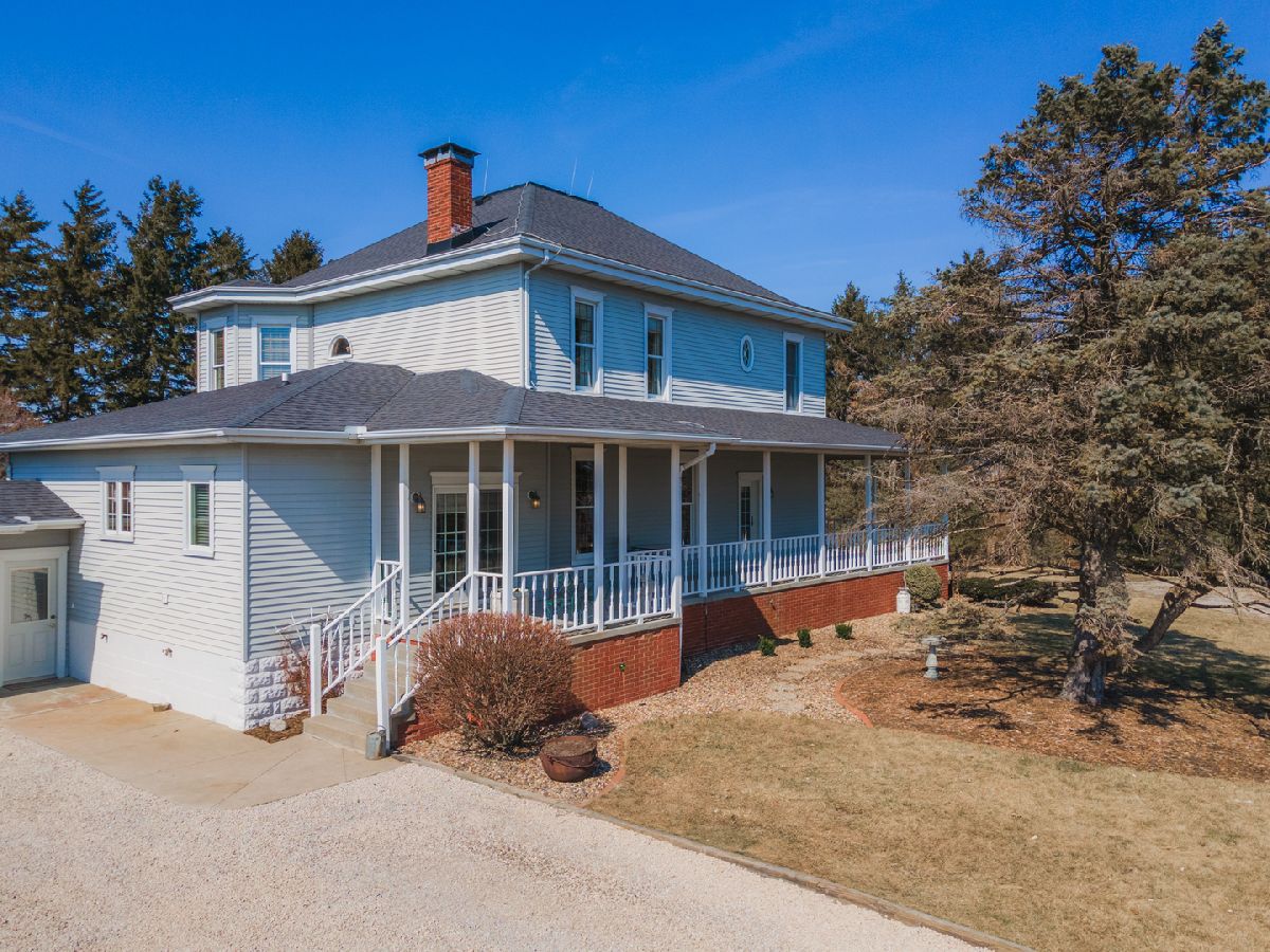 Truly amazing! The best of the old and the new on a 1+ acre lot in a quiet country setting surrounded by farmland. This house was totally restored in 1990 with all new plumbing, electrical, insulation, windows, drywall, kitchen, baths (including the addition of a master bathroom), steel siding and so much more. The owners have continued to improve it since that time. You can enjoy the outdoors from the wrap-around porch, the gorgeous enclosed porch, the deck, or the paver patio with a fire-pit. Backyard is very private with lots of trees. Step inside and appreciate all of the original wood trim, transom windows, tall ceilings, 3 antique fireplaces (1 is functional) and built-ins. The kitchen was opened and enlarged and has custom cabinets, granite counters and a large pantry. The laundry was moved to the main floor. Owner suite includes large bath with separate tub and shower as well as a walk-in closet. Main floor office could be bedroom 5. Recent updates include bath remodels, new roof with complete tear-off in 2016, new furnace and AC in 2018, new well 2014, screened porch was enclosed, newer water softener plus reverse osmosis treatment system. Large 29'x29' garage has extra electrical supply and is currently being used as a workshop. This is a gorgeous and beautifully maintained home!