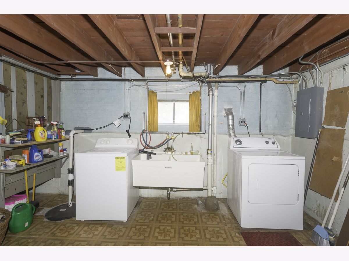 Brick English on corner lot with lots of potential!!! 1st floor features living room with hardwood floors, eat-in kitchen, full bath, 2 bedrooms both with hardwood floors and a den. 2nd floor features 2 bedrooms with knotty pine paneling, hardwood floors and a half bath. Great potential for expansion on 2nd floor. Full basement with exterior access is partially finished with rec room with dry bar and large laundry/storage room. Nice fully fenced in yard with 2-1/2 car garage with partial driveway off of Waveland Avenue plus covered cement patio (could be used as a patio or carport). Updated electric, furnace and a/c replaced in 2020, tear off roof on house and garage in 2011, newer cement sidewalks, flood control and more. Well maintained home by the same family for many years just needs some cosmetic updating.