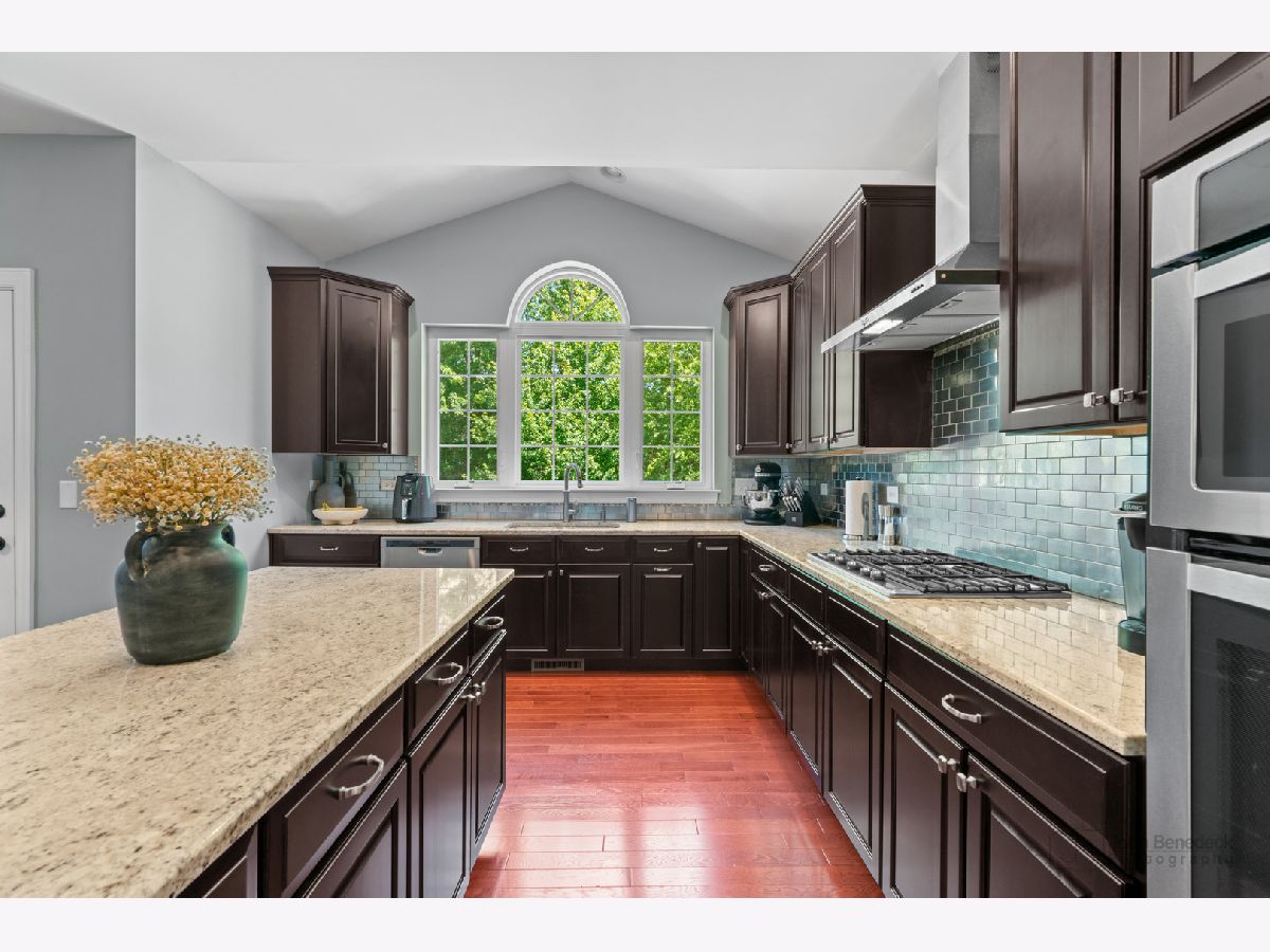 This stunning home offers a luxurious living experience nestled in Bowes Creek Country Club, you'll have access to an 18-hole golf course and a restaurant just steps away. The brick-front exterior provides a charming facade, while the property backs onto a dense tree line for privacy. Inside, the chef's kitchen features a large center island, a built-in desk and opens to a two-story family room complete with a cozy fireplace, making it perfect for entertaining and everyday living. The open floor plan includes a first-floor den and Laundry Room. Upstairs the Primary Suite is a true retreat with an amazing closet featuring custom California Closet organizers and an en-suite bathroom with heated floors, dual sinks, a vanity area, a large soaking tub, and a separate shower. This home is also conveniently located near Randall Road shopping and Restaurants, District 301 schools and Rt 20 and I90 access. This one won't last!