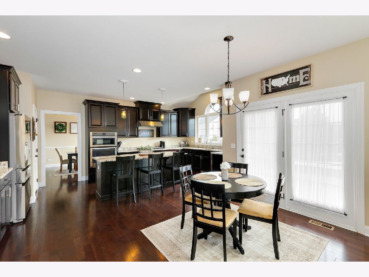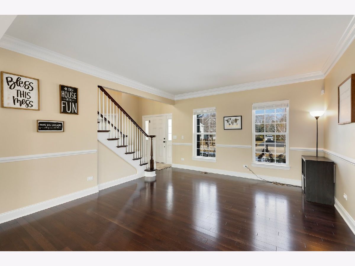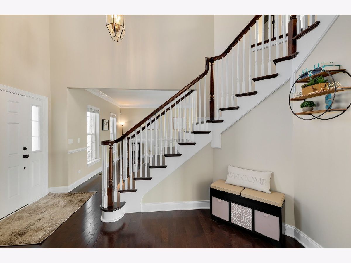 Enjoy the luxurious lifestyle at Bowes Creek Country Club and highly rated District 301 schools. You will be impressed from the moment you walk into this home with 2 story entry, hardwood floors throughout the foyer, living dining and kitchen. The kitchen features striking espresso cabinetry and light granite counters, pantry closet, a huge island and triple window overlooking the yard. The light floods into the two story family room windows and also features a fireplace and second staircase. New carpet in the family room and first floor office. Enter from the garage into the laundry/mudroom. Upstairs the Primary bedroom features a HUGE walk-in closet, an ensuite with dual vanity, separate soaking tub and shower along with a bonus area perfect for a sitting room, nursery, office, work out area, you decide! The other three bedrooms share the hall bath with dual vanity. Loads of potential for even more space in the basement with bathroom rough-in. Enjoy the upcoming warmer weather on the paver patio with seating walls and firepit.