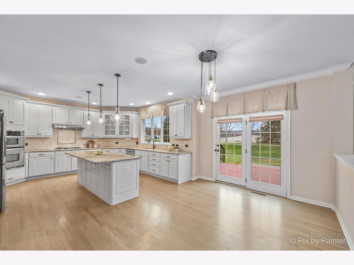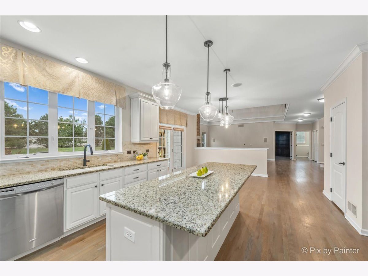 Beautiful home with an open floor plan located in desirable Bowes Creek Country Club. Gorgeous eat-in kitchen featuring a large island, breakfast bar, crown molding, granite, stainless steel appliances and walk in pantry. 2-Story family room with floor to ceiling brick fireplace. First floor den with double French door entry and built in book shelves. Formal dining room with chair rail and crown molding. Master suite offers a sitting room, columns, 3 walk in closets w/designer organizers, make up area and double door entry. Luxury Master bath with it's own thermostat. Princess suite with private bath. Full finished basement with full bath, theatre room, custom bar, 2 wine refrigerators and recreation area. Hardwood flooring throughout the main floor. 2-Story foyer. Brick front exterior. Yard features trellis, custom patio and deck. Subdivision offers golf course, clubhouse, parks and walking trails. Burling school district 301. Playset included. You will be impressed!