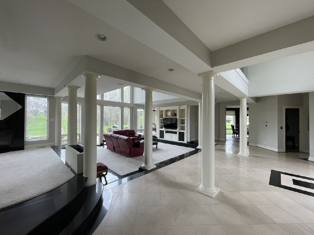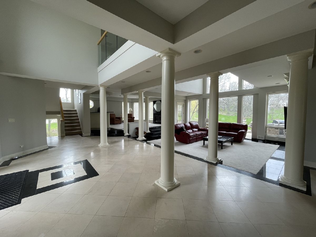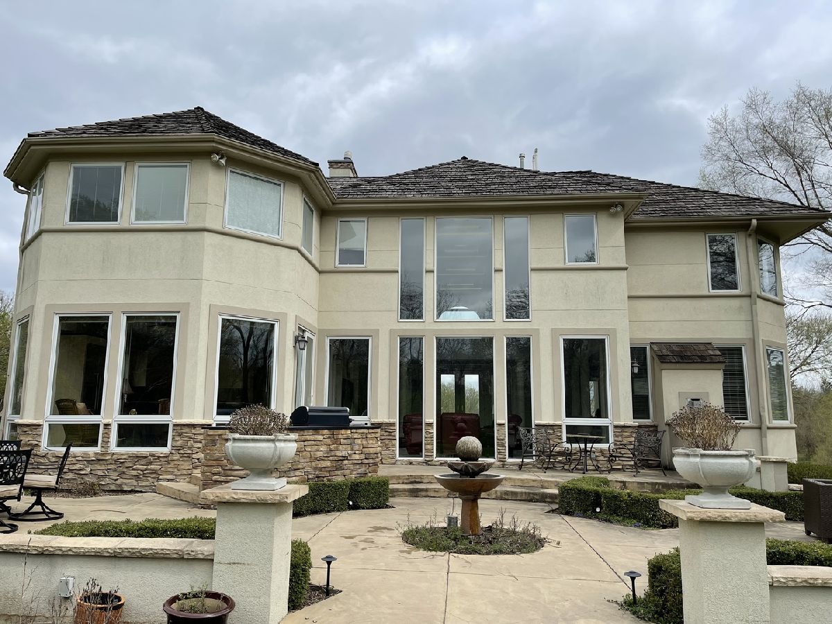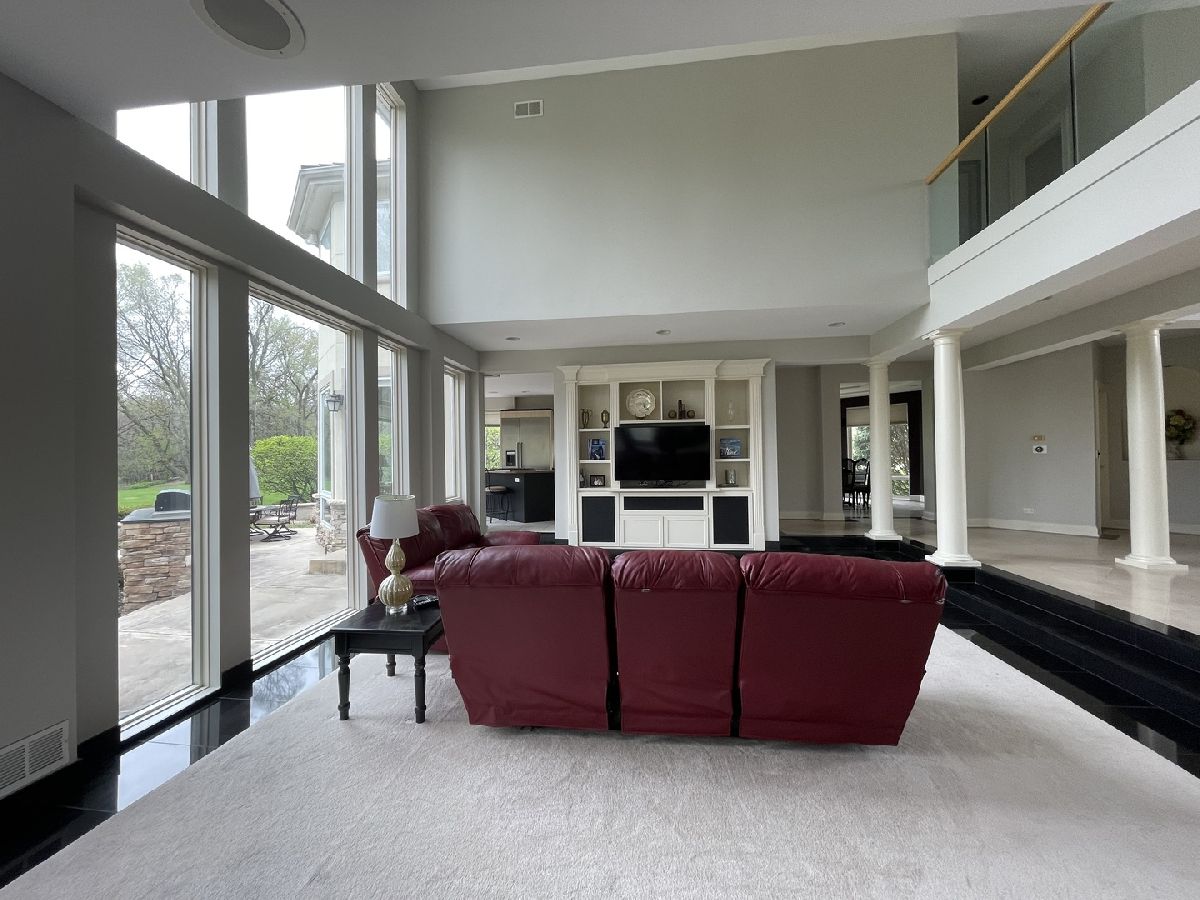 Impressive stucco contemporary on 1.5 acres on a quiet interior lot with a cul-de-sac location in Silver Glen Estates! New roof is on its way! Built for entertaining indoors and outdoors with huge floor-to-ceiling windows and stunning views of the expansive private backyard. Be sure to look up at the layered tray ceiling with recessed lighting in each layer-great ambiance for evening events. The elegant porcelain tiled foyer gives plenty of overflow space for guests as it opens into the main living area. Family room with lofty 2-story ceiling, built-ins, a wet bar & fireplace. Amazing kitchen with big island, tons of custom Neff cabinetry, granite counters, and Thermador appliances. All the extras-Thermador oversized fridge/freezer, warming oven. The imported cabinetry has glass slide outs & stainless steel liners. The kitchen and eat-in open onto the huge rear patio with an outdoor kitchen made of stone and granite and a built-in Traeger grill/smoker. Dining room features an octagonal tray ceiling, porcelain floors, more floor-to-ceiling windows, and a built-in china cabinet with glass shelving. The master bedroom is a spa-like retreat with a fireplace, private wrap-around balcony (view the Fox River!), sitting room, built-ins, a built-in beverage fridge, built-in speakers, and a huge walk-in closet. The master bath features travertine tile, double sinks, a whirlpool tub, and a separate his/her water closet. 2nd master bedroom with double closets and a full bath with another jetted tub. Every bedroom is unique and oversized with generous closet space. The finished walk-out basement includes a soundproof 175-inch screen movie theater with surround sound, tuner, DVD player, and projector for cozy nights at home. Also, a 2nd fam room, 2nd wet bar w/custom lighting, double fridge for wine and beverages, exercise room/playroom, poker/card playing area, pool table area, 5th bedroom, and a full bath with walk-in shower. The basement opens onto the lower firepit area which leads up the stone steps to the rear patio. The expansive rear patio with retaining wall has multiple levels featuring another gas-fed built-in fire pit with room for seating, a large area for tables and chairs, low voltage lighting, and a beautiful fountain. The upper level of the patio has space to expand with more tables and chairs. Built-in speakers inside the home as well as around the patio-just ask Alexa to play whatever you're in the mood for. The private first-floor office is bright and sunny with lots of windows and could be a 6th bedroom or playroom. Large mudroom off the heated garage for coats/shoes plus a separate walk-in guest closet right off the foyer. The 2nd-floor laundry has a sink, folding counter, tons of cabinets, and a closet. Fresh paint on upper levels. Sprinkler system, water filtration system, softener stays. Zoned HVAC, One A/C-5 yrs, One Trane heater-2 yrs, both H20 heaters-6 yrs