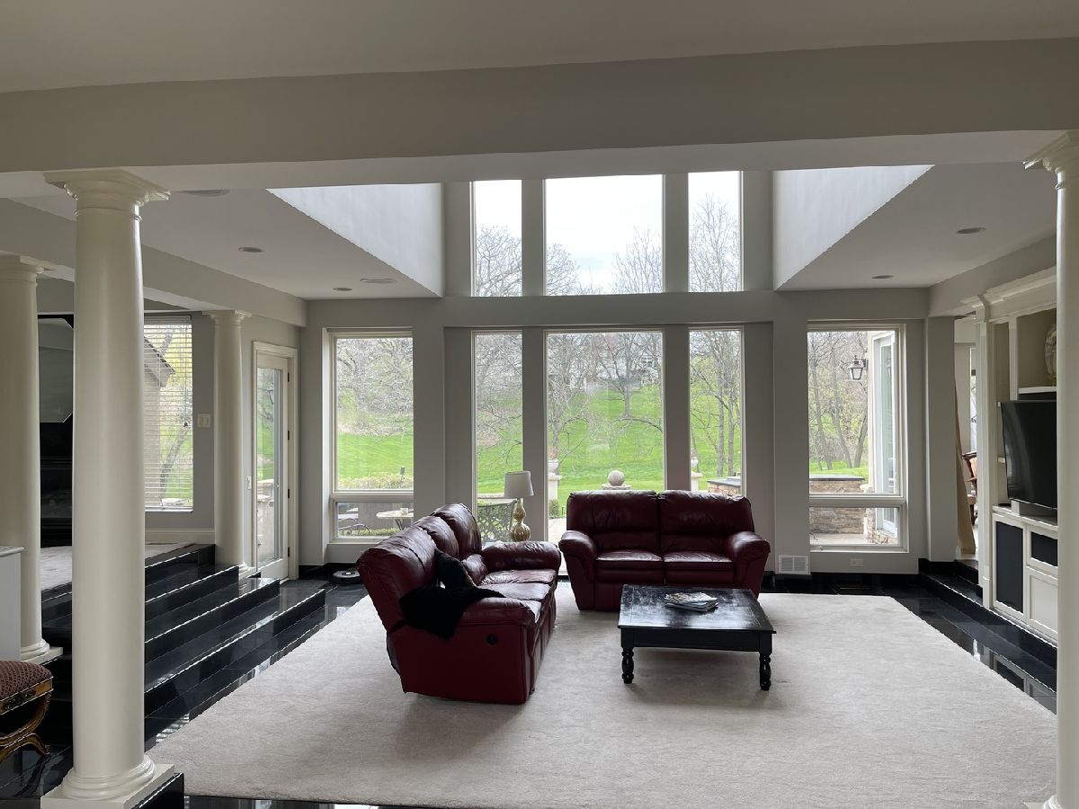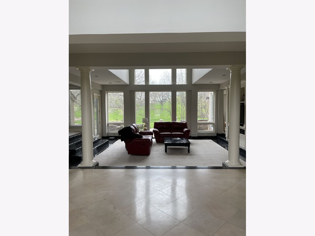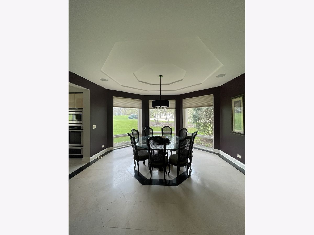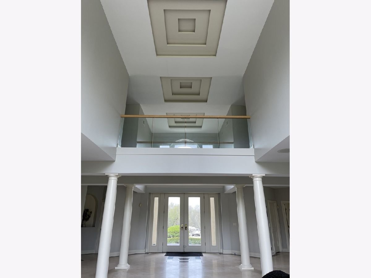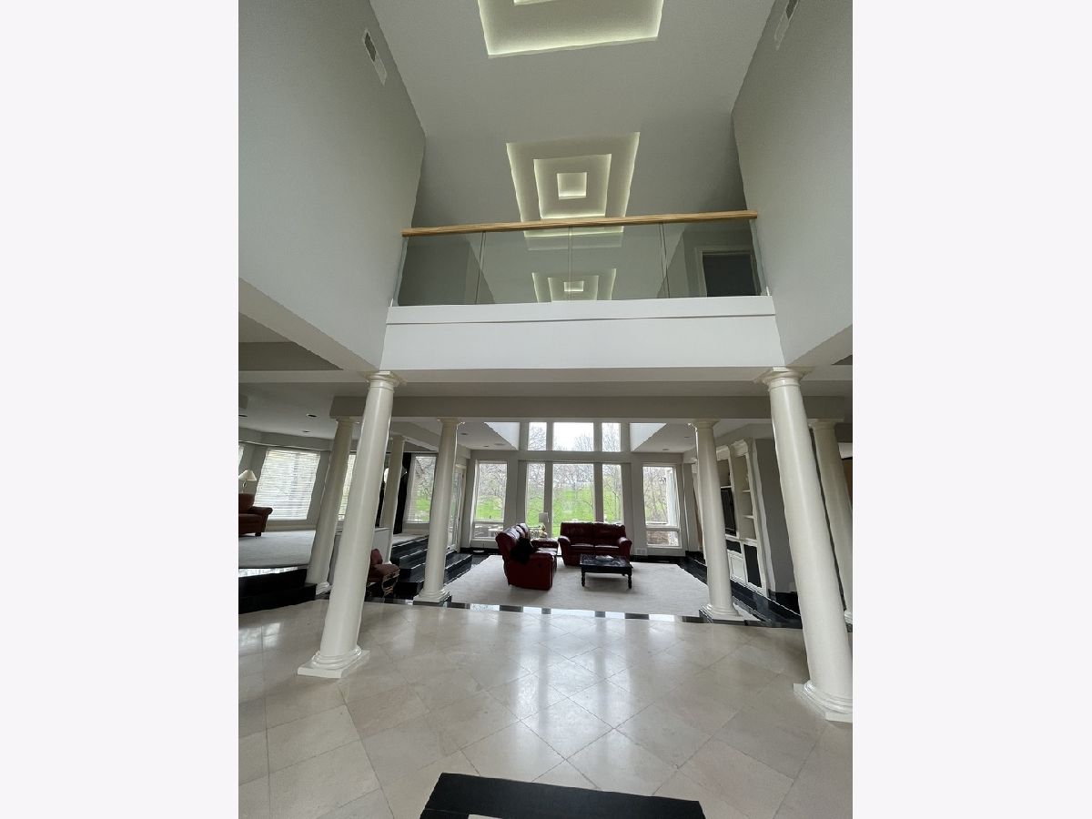 Impressive stucco contemporary on 1.5 acres on a quiet interior lot with a cul-de-sac location in Silver Glen Estates! New roof is on its way! Built for entertaining indoors and outdoors with huge floor-to-ceiling windows and stunning views of the expansive private backyard. Be sure to look up at the layered tray ceiling with recessed lighting in each layer-great ambiance for evening events. The elegant porcelain tiled foyer gives plenty of overflow space for guests as it opens into the main living area. Family room with lofty 2-story ceiling, built-ins, a wet bar & fireplace. Amazing kitchen with big island, tons of custom Neff cabinetry, granite counters, and Thermador appliances. All the extras-Thermador oversized fridge/freezer, warming oven. The imported cabinetry has glass slide outs & stainless steel liners. The kitchen and eat-in open onto the huge rear patio with an outdoor kitchen made of stone and granite and a built-in Traeger grill/smoker. Dining room features an octagonal tray ceiling, porcelain floors, more floor-to-ceiling windows, and a built-in china cabinet with glass shelving. The master bedroom is a spa-like retreat with a fireplace, private wrap-around balcony (view the Fox River!), sitting room, built-ins, a built-in beverage fridge, built-in speakers, and a huge walk-in closet. The master bath features travertine tile, double sinks, a whirlpool tub, and a separate his/her water closet. 2nd master bedroom with double closets and a full bath with another jetted tub. Every bedroom is unique and oversized with generous closet space. The finished walk-out basement includes a soundproof 175-inch screen movie theater with surround sound, tuner, DVD player, and projector for cozy nights at home. Also, a 2nd fam room, 2nd wet bar w/custom lighting, double fridge for wine and beverages, exercise room/playroom, poker/card playing area, pool table area, 5th bedroom, and a full bath with walk-in shower. The basement opens onto the lower firepit area which leads up the stone steps to the rear patio. The expansive rear patio with retaining wall has multiple levels featuring another gas-fed built-in fire pit with room for seating, a large area for tables and chairs, low voltage lighting, and a beautiful fountain. The upper level of the patio has space to expand with more tables and chairs. Built-in speakers inside the home as well as around the patio-just ask Alexa to play whatever you're in the mood for. The private first-floor office is bright and sunny with lots of windows and could be a 6th bedroom or playroom. Large mudroom off the heated garage for coats/shoes plus a separate walk-in guest closet right off the foyer. The 2nd-floor laundry has a sink, folding counter, tons of cabinets, and a closet. Fresh paint on upper levels. Sprinkler system, water filtration system, softener stays. Zoned HVAC, One A/C-5 yrs, One Trane heater-2 yrs, both H20 heaters-6 yrs