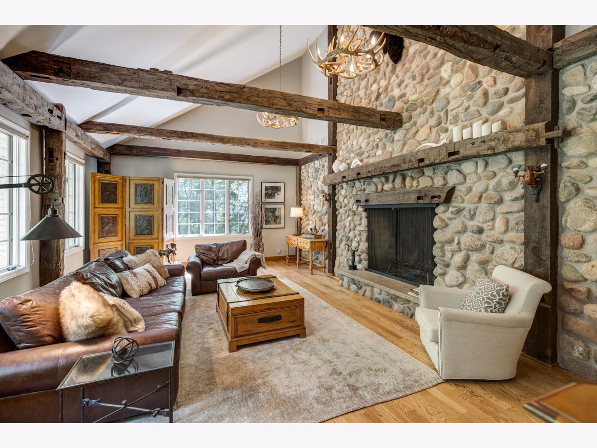 This home is an exciting blend of a private retreat nestled among the tall Oaks and todays urban sophistication. The 1.5 acre grounds are a true sanctuary and a nature lovers dream. The feel continues inside with century-old hand hewn timbers above the massive family room stone fireplace. Yet the state of the art chefs' kitchen, separate billiard room, and first floor library say it's smart and fun. Other features include the perfect home office or studio detached from the home, a 2 1/2 car heated garage, and a garden room with indoor spa. Less than five minutes to downtown St. Charles, Randall Road shopping. Low township property taxes and no HOA fees. Broker owned.