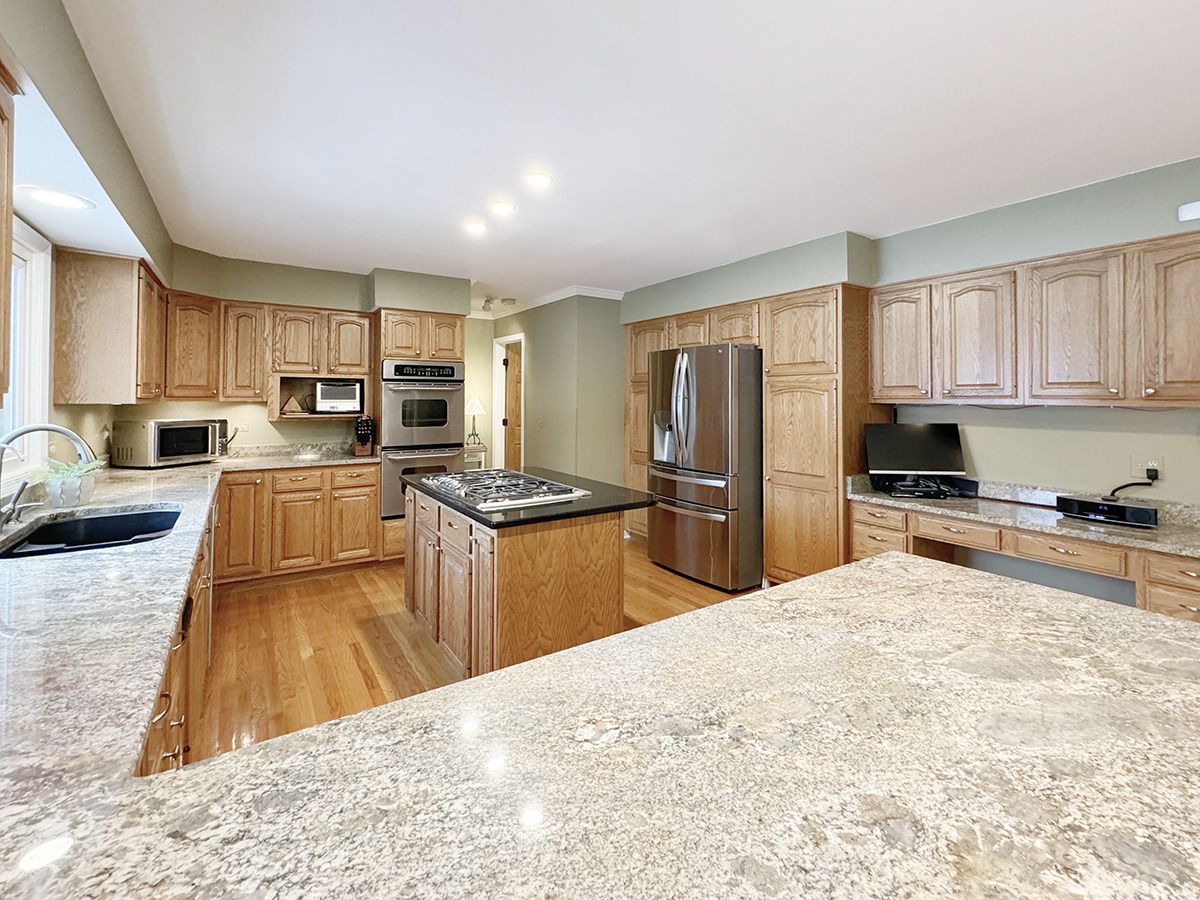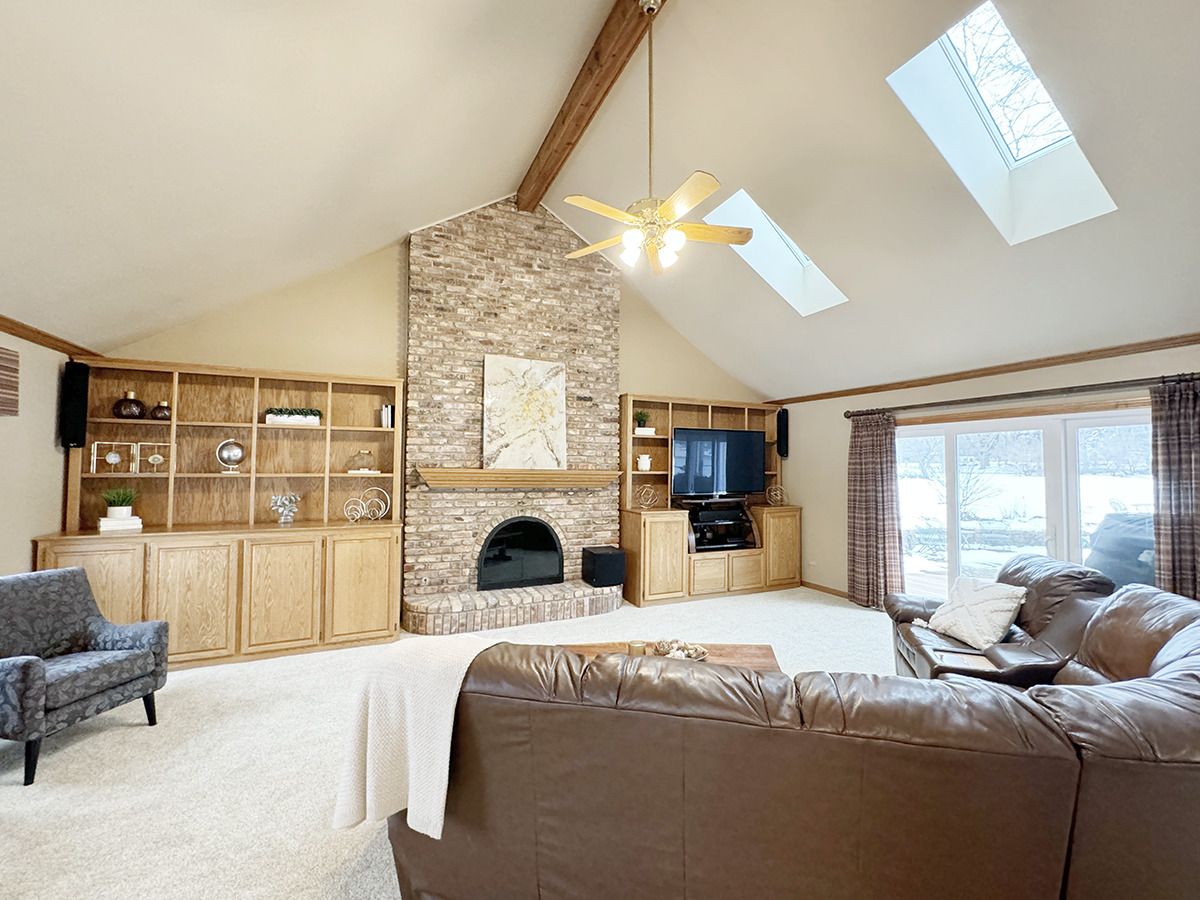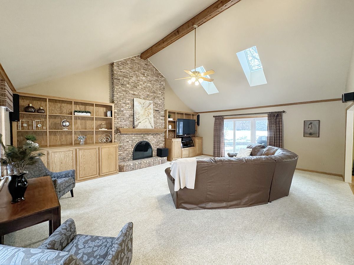 Located in St Charles sought-after Red Gate subdivision this home offers a stylish blend of space and convenience. Situated on a beautiful 1.4 acre lot with mature trees and landscaping this home will capture your heart! Main highlights include a spacious foyer, versatile office/living room with French doors, elegant dining room, HUGE family room with vaulted ceilings, skylights, fireplace and built ins and a gorgeous four-season vaulted sunroom with skylights and picturesque views of the terrace and park like yard. The kitchen is a chef's dream featuring double ovens, gas cooktop, granite counters and large casual dining area. A full bath and well designed laundry/mud room rounds out the main floor living space. Upstairs you will find four generously sized bedrooms including a primary suite with vaulted ceilings, sitting area, large walk in custom closet and a spa-like bathroom with skylight. The lower level is finished as well with a recreation room, flex room/exercise room, workshop, and great storage space. Additional features include a 3-car side load garage and relaxing koi pond. Numerous updates including Roof 2017, Sun Room Windows 2017, Furnace 2017, A/C 2014, Hot Water Heater 2019, New Primary Shower 2024, New Carpet 2024 and recently stained exterior. Home has a generator. Only minutes to Randall Rd Corridor shopping and restaurants, historic Downtown St. Charles, and only 40 minutes to O'Hare airport, located between I90 and I88 for easy access. 303 School district!