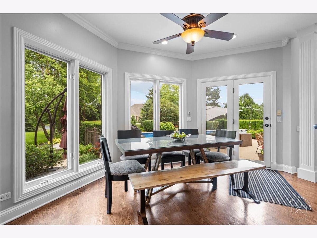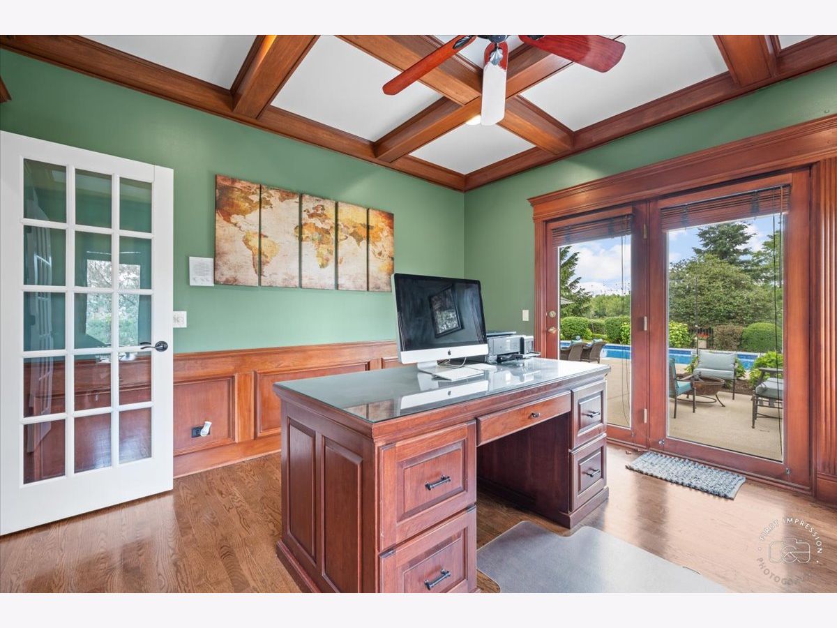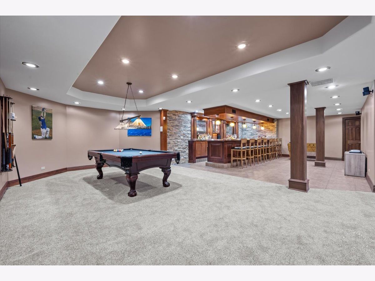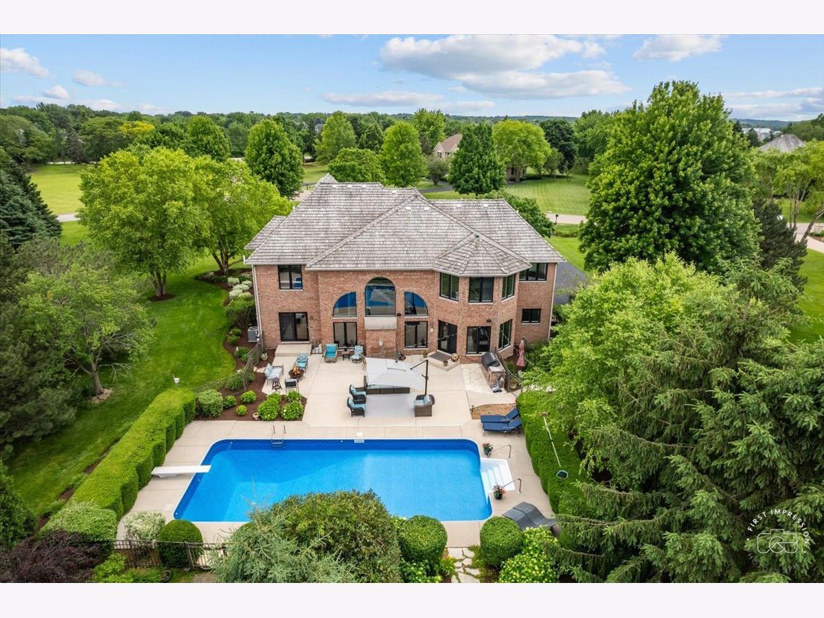 Exquisite Custom Home Perfect for Entertaining in Silver Glen Estates. This all-brick masterpiece, nestled on a corner lot, boasts over 5,500 sq. ft. of finished living space on over an acre of land, complete with a magnificent in-ground pool and expansive patio overlooking a serene community pond. Upon arrival, the amazing curb appeal sets the stage for what awaits within. Step into the grand foyer adorned with warm hardwood floors and a majestic open staircase, flanked by the formal living and dining rooms, creating a grand entrance. The heart of the home lies in the sun-drenched two-story family room with abundant windows framing views of the pool and a cozy fireplace, offering the perfect ambiance for gatherings. Adjacent, the gourmet kitchen awaits, featuring an expansive island, breakfast room, walk-in pantry and top-of-the-line Wolf range and double ovens, making it a haven for culinary enthusiasts. Work from home in style in the beautiful first-floor office, complete with wood coffered ceilings and trim work, and access to the patio, offering a serene workspace. Retreat upstairs to the primary suite, boasting volume ceilings, panoramic views, and a spa-like bath with skylight, double spray shower, and a large spa tub, ensuring relaxation and rejuvenation. In addition, three bedrooms, one with an ensuite bath, others sharing a Jack-n-Jill bath, and a spacious bonus room with skylights complete the second level. The bonus room could easily serve as a fifth bedroom. The lower level is an entertainer's paradise, featuring a custom wood bar with dual TVs, a recreation area, theater room, exercise room, and a full bath with a steam shower, ensuring endless entertainment options for family and friends. Outside, the private yard boasts a large in-ground pool, extensive patio, electrical setup for a hot tub, built-in grill, mature landscaping, and an irrigation system, creating a resort-like oasis in your backyard. This home is complemented by the convenience of a private utility for water/sewer, eliminating the need for individual well and septic maintenance. Situated in a private luxury neighborhood just minutes from Randall Rd, the Fox River, and downtown St. Charles, enjoy access to award-winning amenities and highly rated D303 schools. Don't miss the opportunity to make this stunning home your own, where every day feels like a vacation!