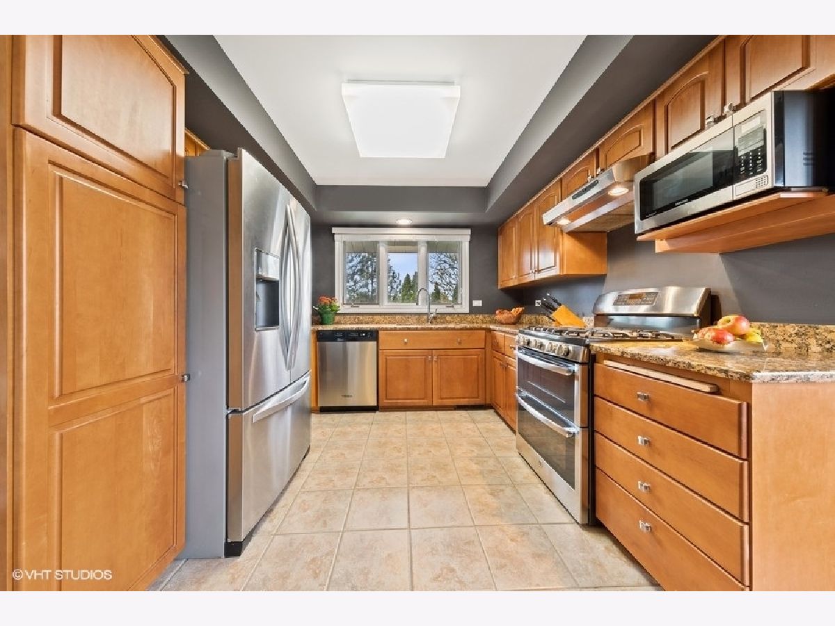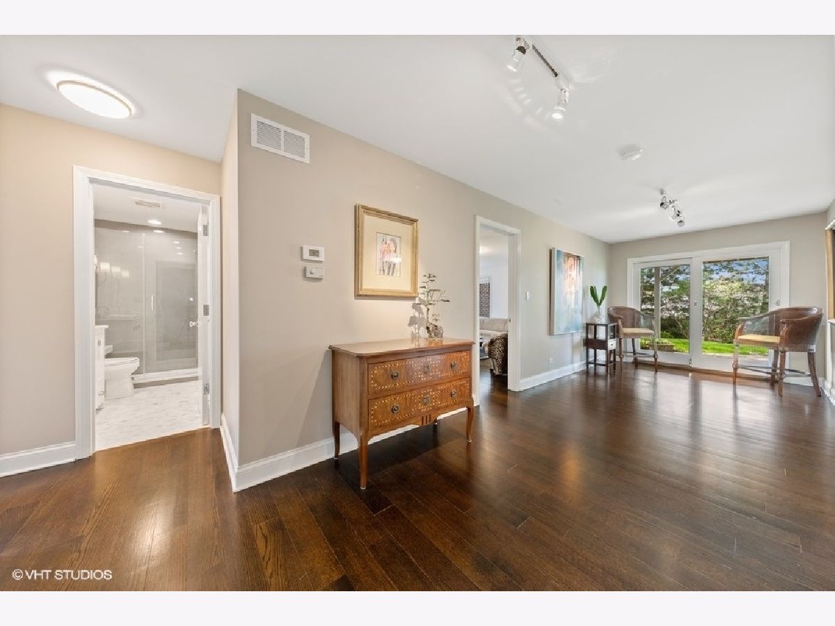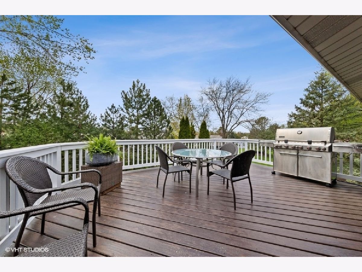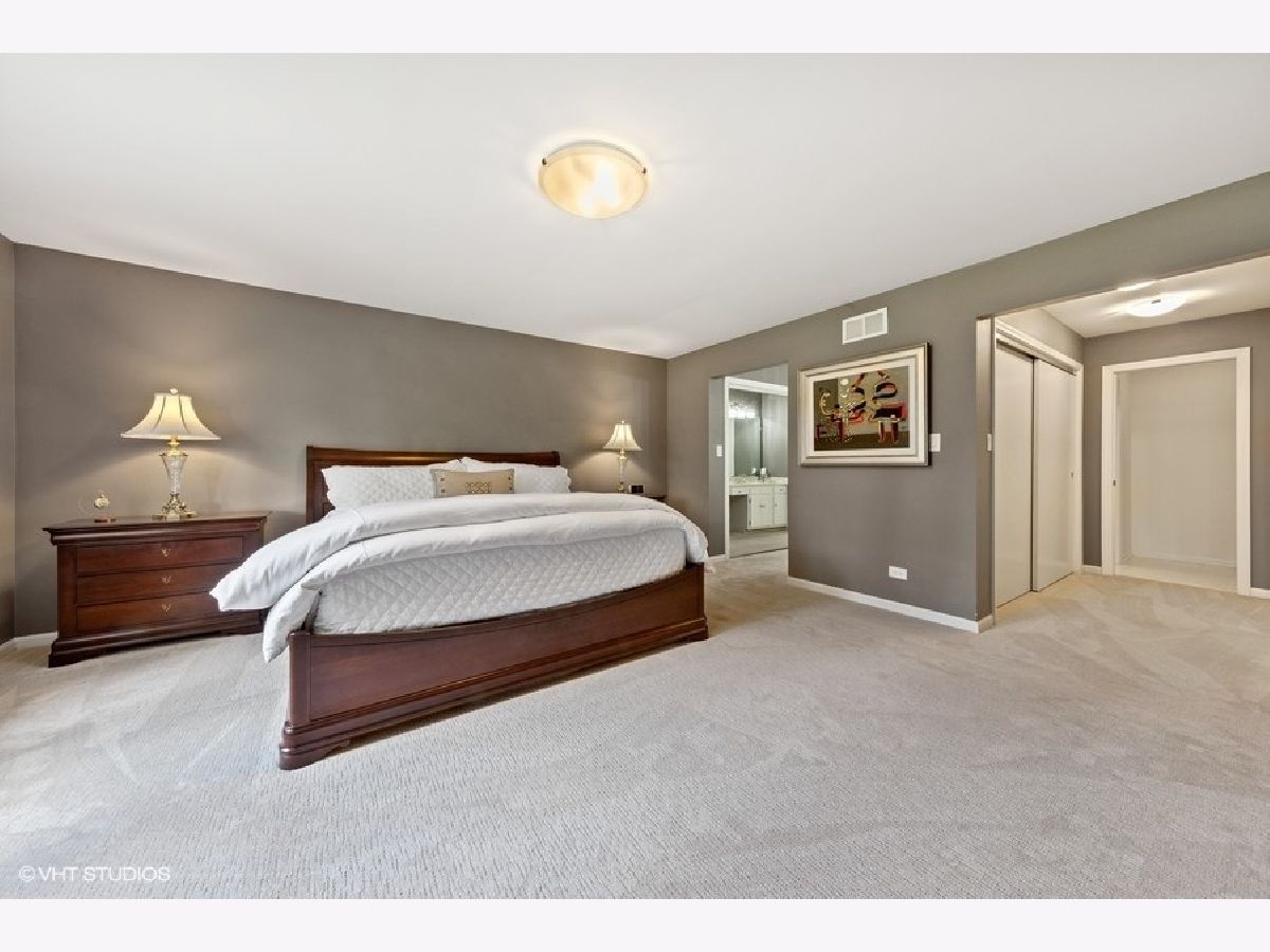 Enter this bright spacious Briarwood Lakes Villa by an exterior slate walk-way and onto beautiful wide plank oak flooring inside. The D-1 unit offers two floors of living space. Upper level has a L/R-D/R combo with cathedral ceiling and sliding glass doors leading out to a spacious deck, a separate large family room with a dry bar and an eat-in kitchen with stainless appliances. This level also has a nice size bedroom with access to a beautiful new bathroom. The lower level gallery is the nucleus to the master bedroom with en-suite bathroom, an additional bedroom with private access to a new bathroom and a newly remodeled laundry room. Enjoy the beautiful landscaped grounds through sliding glass doors on lower level too. All new lighting throughout the interior and the exterior. Attached garage has outlet for Tesla electric charging (wall connector not included). This quiet gated community is ideally located close to shopping, restaurants, walking paths and expressways. Fireplace "as-is" never used by Seller. Seller is IL Licensed Broker.
