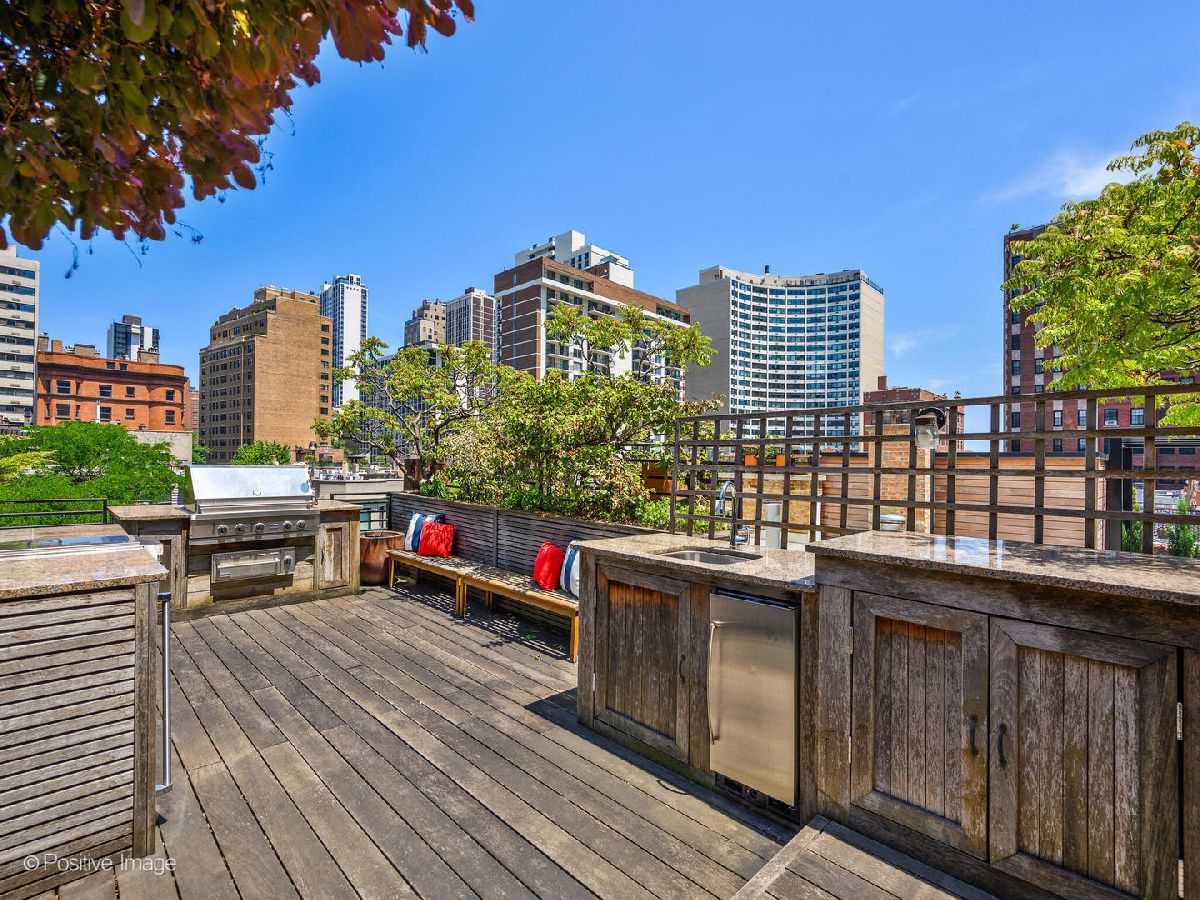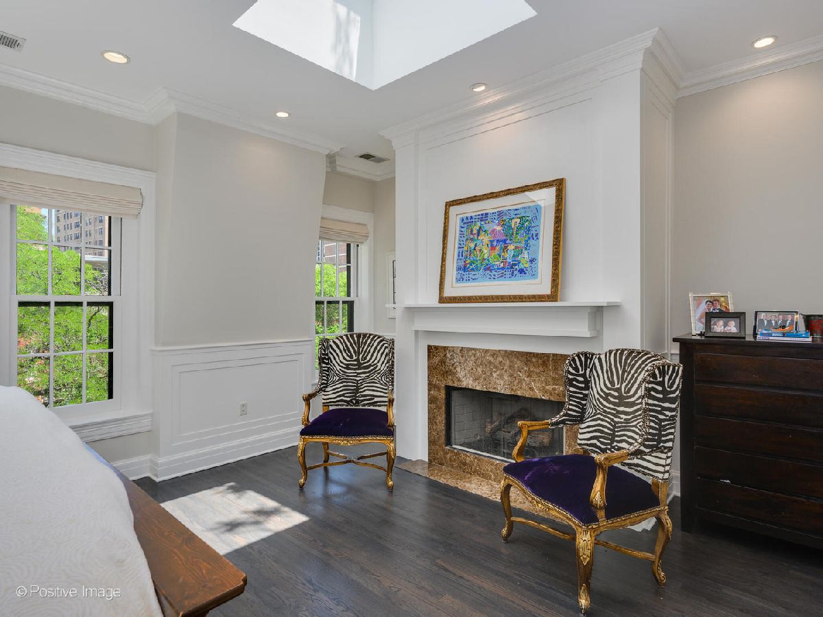 Absolutely stunning Gold Coast Residence! This historic Potter Palmer home on desirable Elm Street has been updated with exquisite finishes and is comprised of four bedrooms and four and a half baths. Main floor offers large living/ dining area, new kitchen featuring crisp white cabinetry, stainless appliances including Wolf oven, Sub Zero fridge and wine cooler. Built-in eating space and updated powder room complete this level. Accessible from main level is quaint slate patio. Second floor family room perfect for relaxing and great area for the kids to play with bountiful built-ins and natural light shining through. A spacious bedroom with wall of windows and updated en suite bath is also housed on 2nd level. Third floor comprised of additional spacious bedroom and grand redesigned primary suite offering stunning new bath with dual vanities, soaking tub, separate shower and walk in closet. Lower level recreation room with wet bar, fridge and another en-suite bedroom with exterior access. The dreamy, fully landscaped private roof top deck offers lovely views and full outdoor kitchen! Additional features of this home include gleaming hardwood floors, three fireplaces, beautiful moldings, wainscoting and skylights. Easy street parking and numerous garage parking options in area. Ideal location nestled on tree lined Elm Street just a block from Lake Michigan, Magnificent Mile, world famous shopping and restaurants! This home truly is a gem!