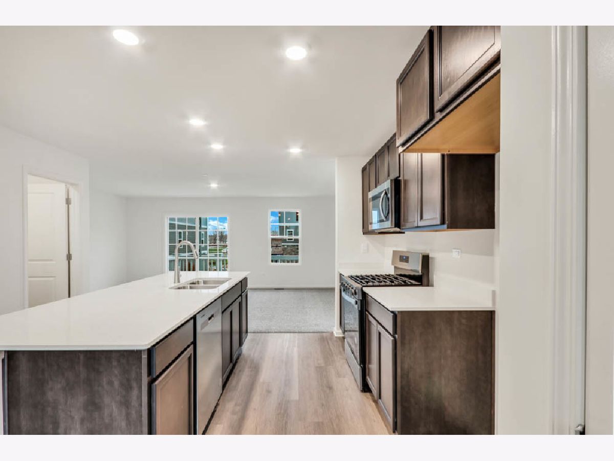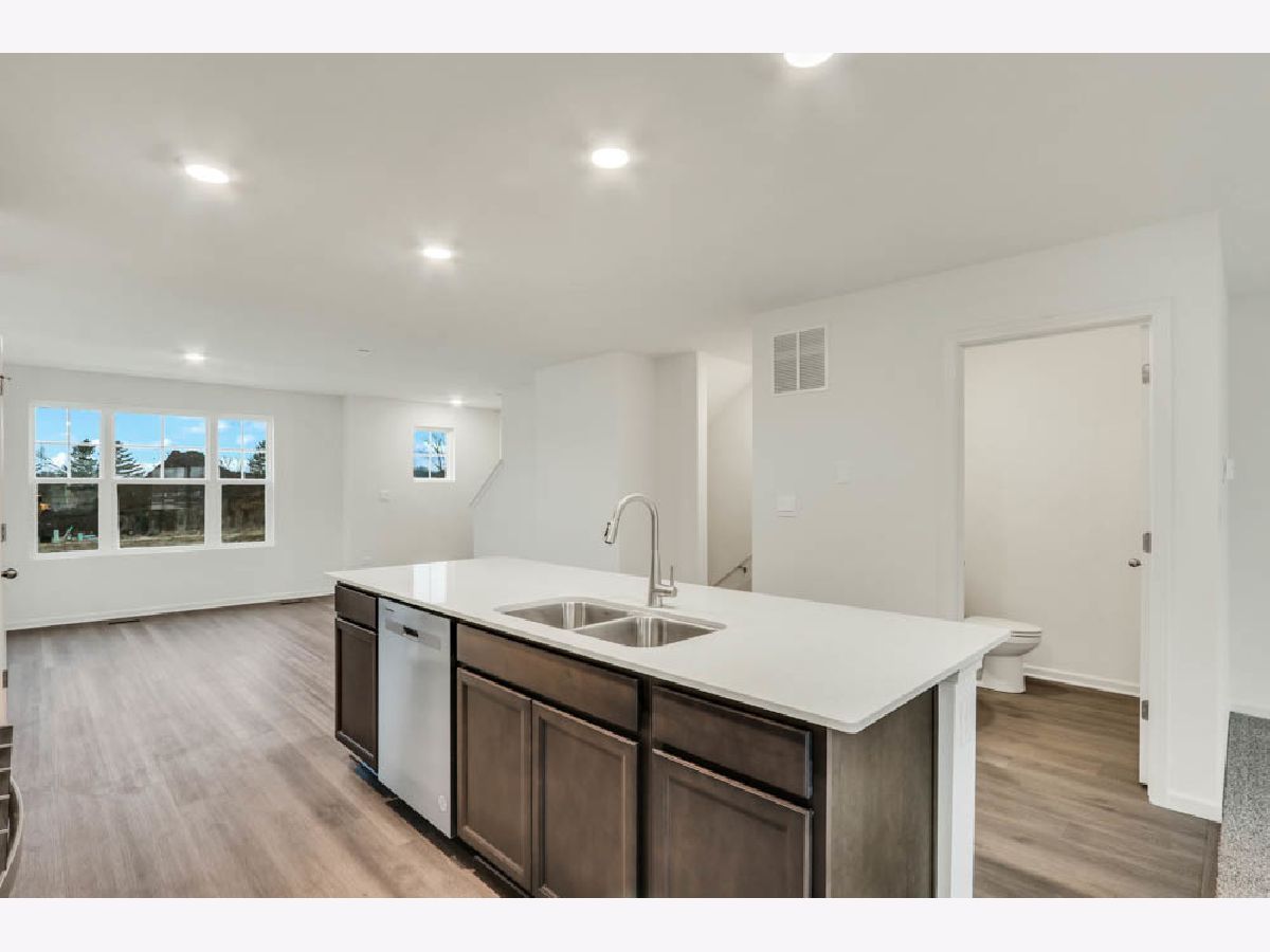 Discover yourself at 370 Bridgeview Ct., a beautiful new home in our Charlestowne Lakes community in St. Charles, Illinois. This townhome will be ready for a summer move-in! Homesite includes a fully sodded yard that is maintained throughout the year. This END UNIT Grant townhome plan offers over 1,800 square feet of living space with 3 bedrooms, 2.5 baths, and finished flex room. As soon as you step inside, you'll be greeted by the finished flex room, which is perfect as a den or playroom. Walking up the stairs, you will find this home's open concept living space. The expansive kitchen overlooks both the front dining and back great room areas, making it the ideal space to entertain. Additionally, your kitchen features designer cabinetry, a spacious island with quartz countertops, and pantry. Enjoy your large primary bedroom with a walk-in closet and connecting en suite bathroom. The rest of the upper level features a laundry room, secondary bedrooms with a full second bath, and linen closet. You'll find luxury vinyl plank flooring in the kitchen and dining areas on the main level living space, bathrooms, and laundry. Impressive innovative ERV furnace system and tankless water heater round out the amazing features this home has to offer! Charlestowne Lakes is an upscale townhome community, tucked off Rt. 64, in a highly desirable area, loaded with everyday conveniences, and just minutes from the flourishing downtown St. Charles. All Chicago homes include our America's Smart Home Technology, featuring a smart video doorbell, smart Honeywell thermostat, Amazon Echo Pop, smart door lock, Deako smart light switches and more. Photos are of similar home and model home. Actual home built may vary.