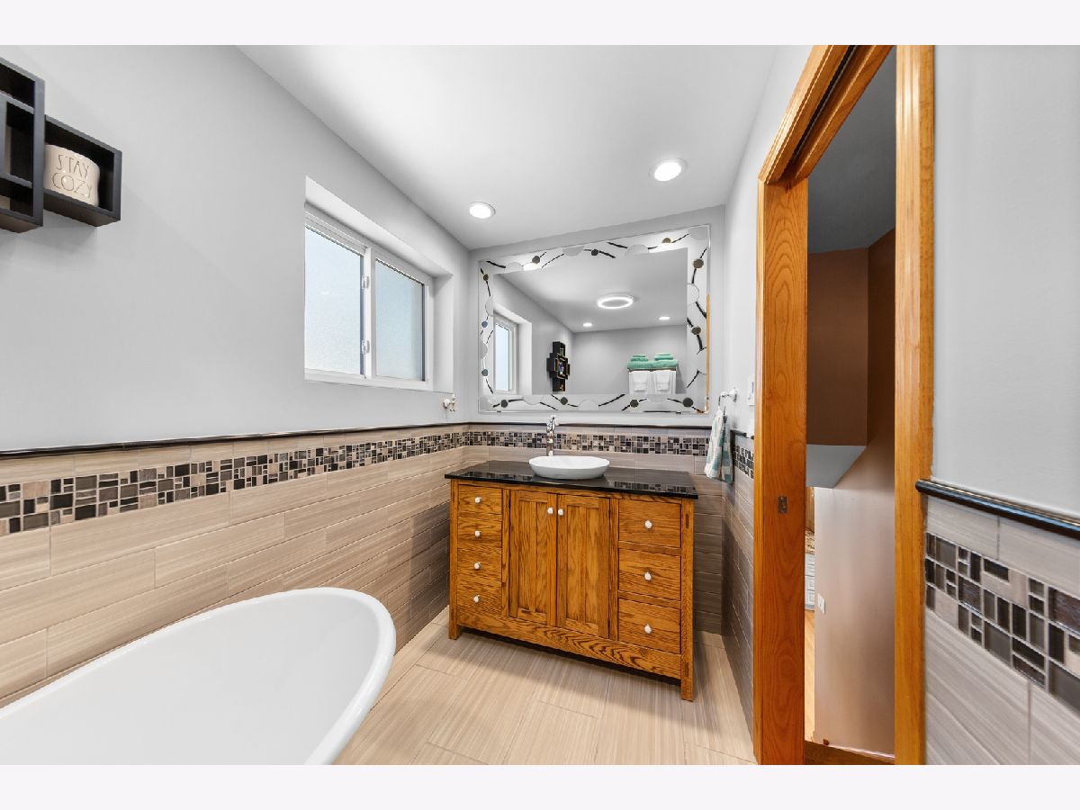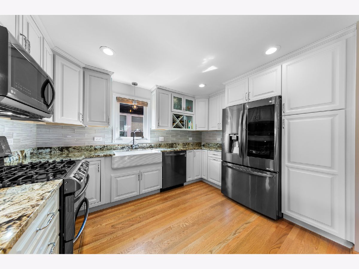 Beautiful Corner Lot | Solid Brick Tri-Level Home in Bridgeport -- 4 Beds | 2 Baths | 3 Finished Levels | Built 1972 -- Fall in love with this meticulously maintained, move-in ready brick tri-level located on a beautiful tree-lined street in the heart of Bridgeport! Nestled on a spacious corner lot, this home combines timeless charm with modern updates and thoughtful design throughout. Step inside to find a bright, open-concept main level with a side-entry layout that maximizes space and natural light. The sun-filled living room boasts a large bay window, gleaming hardwood floors, and recessed lighting, creating the perfect setting for relaxing or entertaining. The updated eat-in kitchen is a chef's dream, featuring extra-thick granite countertops, white cabinetry with roll-out drawers, a double sink, a warm designer backsplash, and stainless steel appliances. Don't forget there is a bedroom on the main floor as well. Just a few steps down, enjoy an additional living room with double oak patio doors leading to your private outdoor oasis - perfect for summer barbecues or quiet evenings under the stars. Downstairs, the fully finished basement offers endless possibilities with a bar (can remain or be removed), a large laundry area with extra refrigerator, utility sink, and workout space, and a lifetime waterproofing warranty from U.S. Waterproofing for total peace of mind (2024) and Aprilaire Humidifier (2024). Both bathrooms are beautifully updated and customized, featuring a luxurious garden tub and a separate walk-in shower. Upstairs, you'll find three spacious bedrooms with hardwood floors, tall ceilings, and generous closets - plenty of room for family, guests, or a home office. Additional Highlights: 2.1-car brick dormer garage with party door & extra storage, Roof (2020), Furnace & A/C (2022), All walls replaced & insulated, Newer windows with custom oak trim throughout, Simply Safe wireless security system included. This is more than just a house - it's a move-in ready home thoughtfully cared for inside and out. Don't miss your chance to own this Bridgeport gem! Walking distance to Sox Park.