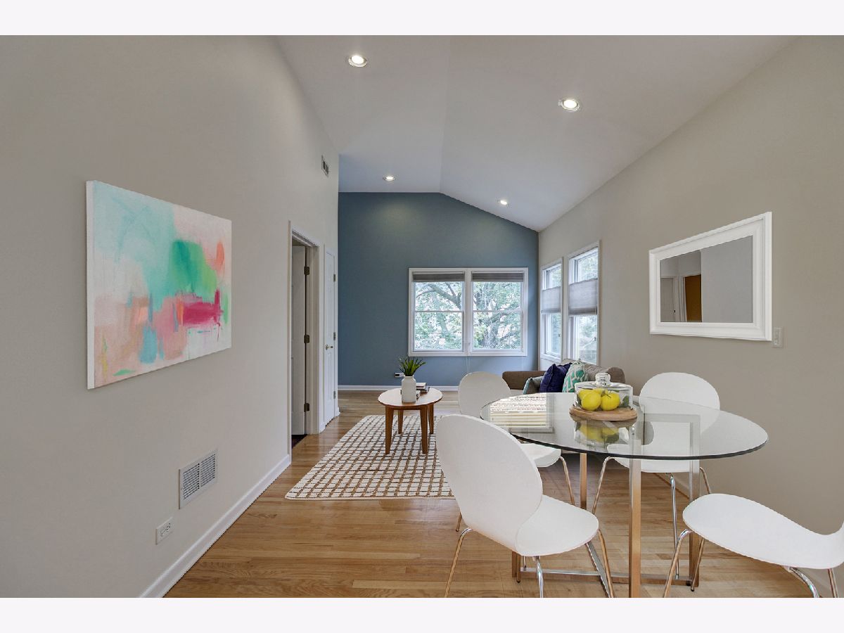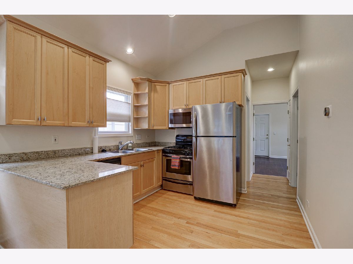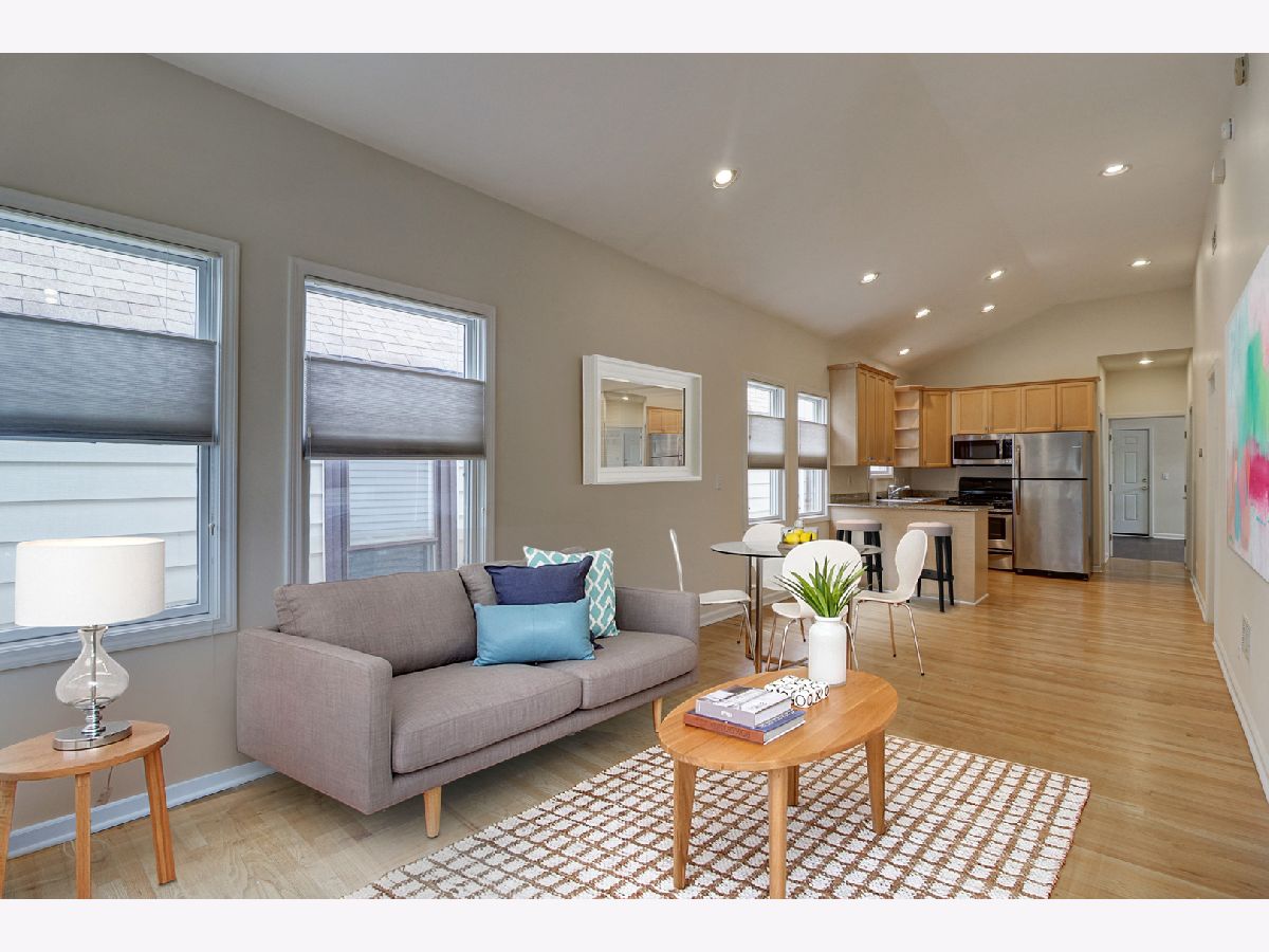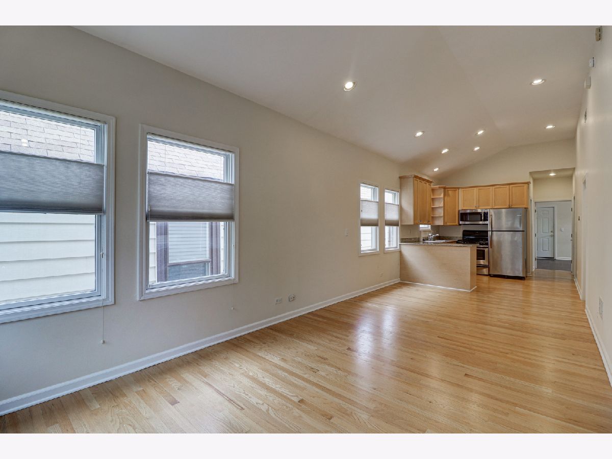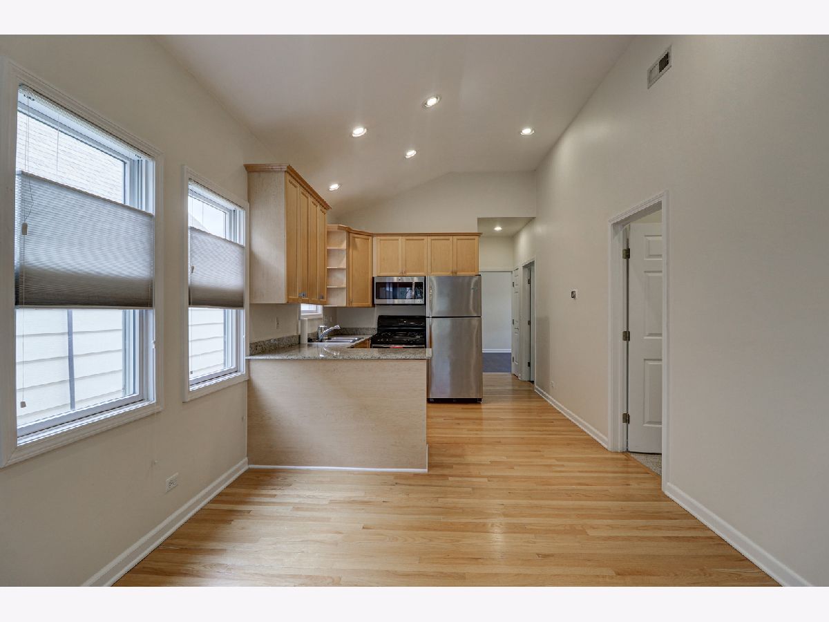 Lovely 3 bedroom, 2 bath Condo with many great features. Vaulted ceilings, hardwood floors, recessed lighting, stainless steel appliances, granite counter tops and 42" cabinets. Rooftop deck over 2 car garage for nice outdoor space. Unique unit in Logan Square. Nearby public transportation options include the California and Logan Square blue line stops, RTA and Metra. Conveniently situated to renowned Logan Square dining, spacious parks and Bloomingdale 606 trail. New roof in 2020, newer Fridge and Microwave. In-unit washer and dryer. There's a private entrance to the unit from the first floor that becomes a lovely picture gallery. The unit is freshly painted and ready for you to move right in. Don't miss this gem.