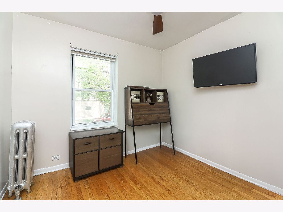 Charming and well-maintained 2-bedroom, 1-bath condo in the highly desirable Old Irving Park - West Walker neighborhood. This bright corner unit features hardwood floors, generously sized bedrooms with ample closet space, and an L-shaped eat-in kitchen equipped with brand-new stainless steel appliances. The recently remodeled bathroom adds a modern touch, while newly added light fixtures, and LED ceiling fans in every room enhance comfort and custom mood lighting. Bedrooms and living room equipped with new cordless blackout honeycomb blinds. New garbage disposal installed September 2024. Enjoy the convenience of in-unit laundry, a back porch, and a dedicated grilling area. Additional personal storage is available in both the unit and basement, along with bike storage. Pets, including dogs, are allowed with no current restrictions. Ample and safe street parking is available, and easy access to I-90/94 ensures a smooth commute to downtown or the western suburbs. Heat and water are included in the assessment. New roof replacement is scheduled for April 2025, special assessment to be paid by the seller. Healthy Reserves. Three Window air conditioning units come with units.