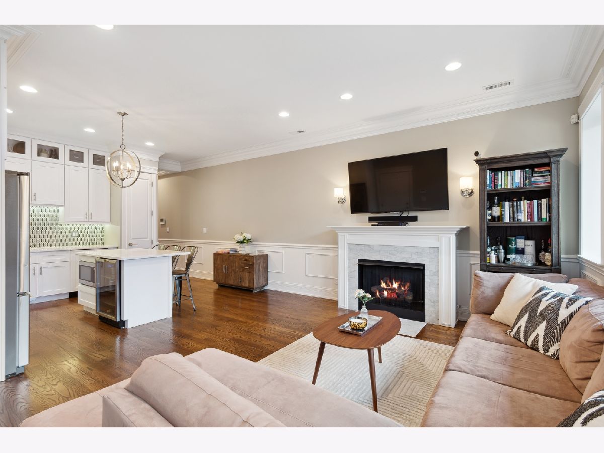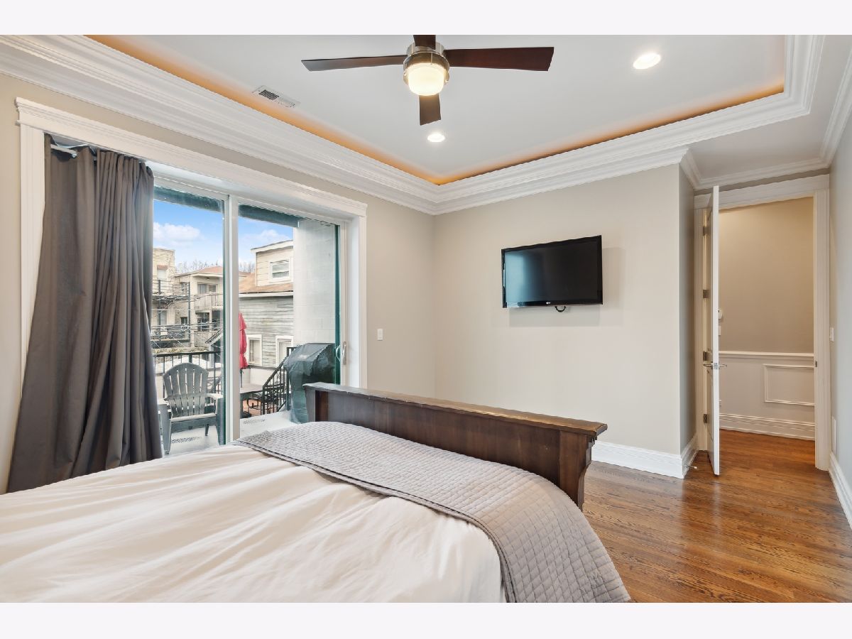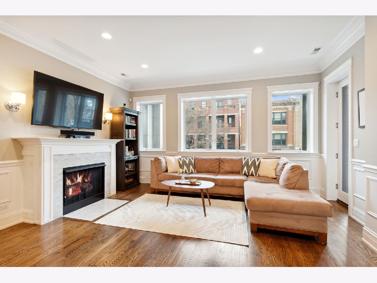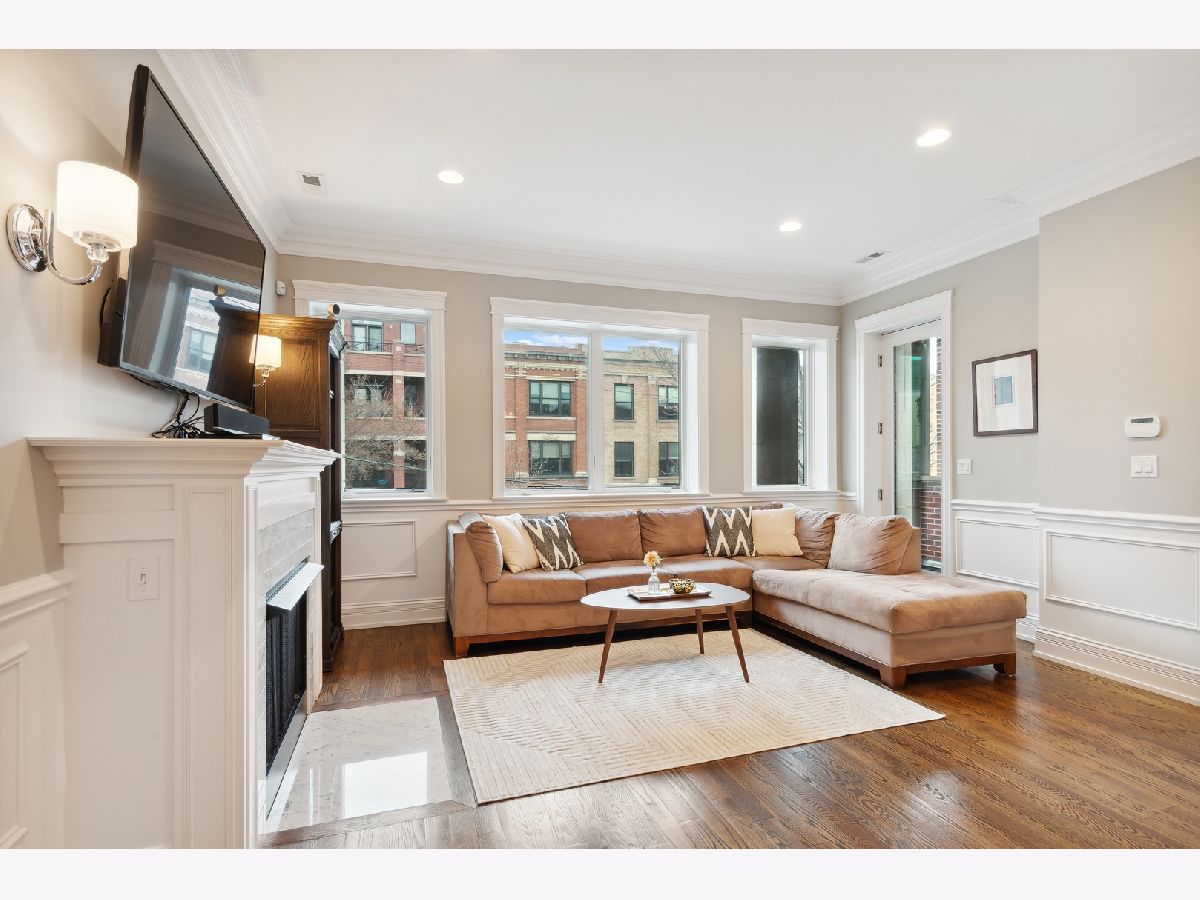 This stunning three bedroom two bathroom condo perfectly located on the trendy Southport Corridor strip is an outdoor lover's paradise with three sun drenched private spaces to go along with a flawlessly designed interior. Completed in 2015, the home was carefully finished with high-end finishes, oak hardwood floors throughout, full size stackable laundry closet and a detailed trim package featuring wainscotting and crown molding. The open concept main living and dining area has a great design centered around the low profile gas fireplace/TV setup which seamlessly blends into the all white gourmet kitchen with high-end appliances, quartz countertops, stone backsplash with vented hood, separate pantry closet and an oversized island with beverage fridge. Finishing off the light-filled living/dining space is direct access to the 1st private outdoor space overlooking Southport that is perfect for grilling, morning coffee, or al fresco dining. Both 2nd and 3rd bedrooms are neatly tucked away in the middle of the unit with great closet space and a well appointed 2nd full bathroom. The luxe primary bedroom has an elegant backlit tray ceiling, custom walk-in closet, flat-screen TV setup and a designer primary bathroom with double bowl vanity with quartz countertops and oversized walk-in steam shower finished in white marble subway tile. Completing this fantastic condo is a massive two-tiered outdoor space with a large covered balcony leading out to your private garage rooftop deck. One outdoor parking space conveniently accessed by an interior rear staircase is included in the sale. A truly one of a kind space on the most sought after street in all of Lakeview located in the Blaine School District steps to shopping, night-life, public transportation, great parks and a plethora of award winning restaurants.