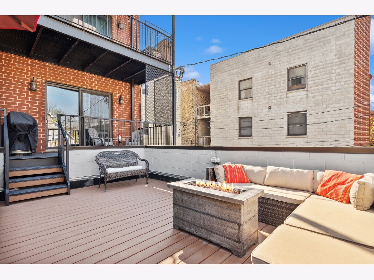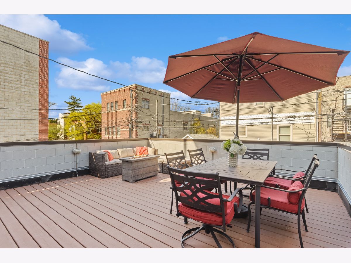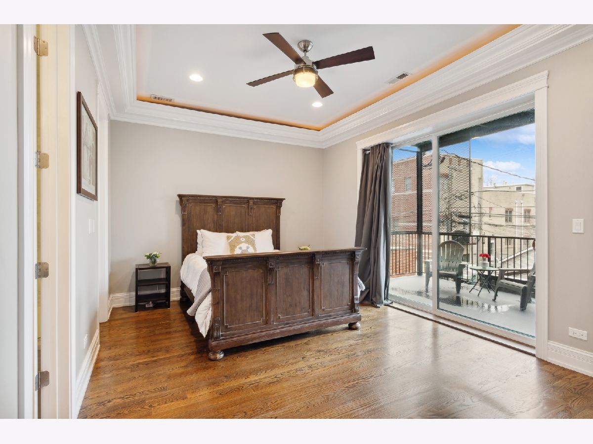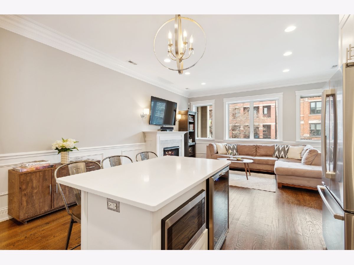 This stunning three bedroom two bathroom condo perfectly located on the trendy Southport Corridor strip is an outdoor lover's paradise with three sun drenched private spaces to go along with a flawlessly designed interior. Completed in 2015, the home was carefully finished with high-end finishes, oak hardwood floors throughout, full size stackable laundry closet and a detailed trim package featuring wainscotting and crown molding. The open concept main living and dining area has a great design centered around the low profile gas fireplace/TV setup which seamlessly blends into the all white gourmet kitchen with high-end appliances, quartz countertops, stone backsplash with vented hood, separate pantry closet and an oversized island with beverage fridge. Finishing off the light-filled living/dining space is direct access to the 1st private outdoor space overlooking Southport that is perfect for grilling, morning coffee, or al fresco dining. Both 2nd and 3rd bedrooms are neatly tucked away in the middle of the unit with great closet space and a well appointed 2nd full bathroom. The luxe primary bedroom has an elegant backlit tray ceiling, custom walk-in closet, flat-screen TV setup and a designer primary bathroom with double bowl vanity with quartz countertops and oversized walk-in steam shower finished in white marble subway tile. Completing this fantastic condo is a massive two-tiered outdoor space with a large covered balcony leading out to your private garage rooftop deck. One outdoor parking space conveniently accessed by an interior rear staircase is included in the sale. A truly one of a kind space on the most sought after street in all of Lakeview located in the Blaine School District steps to shopping, night-life, public transportation, great parks and a plethora of award winning restaurants.