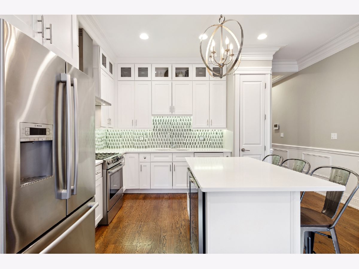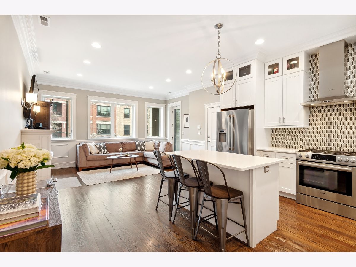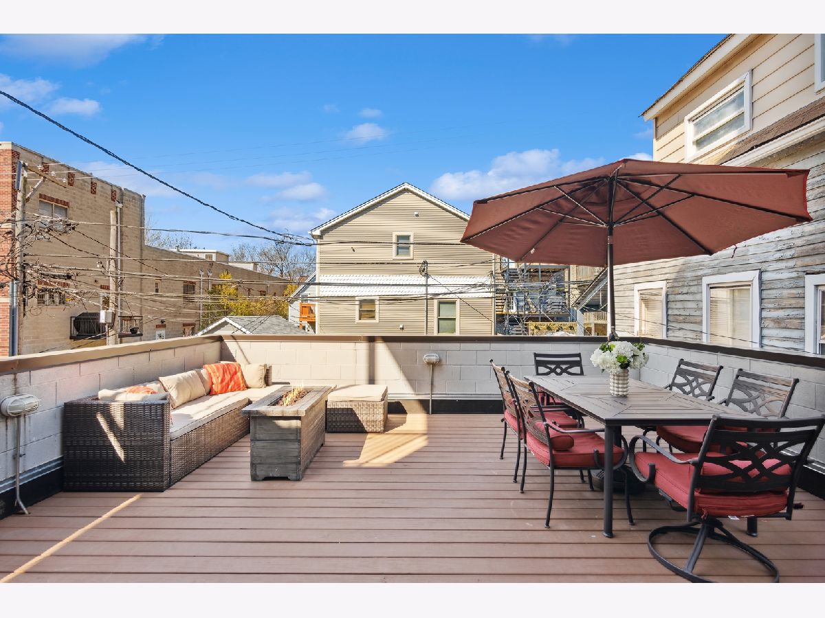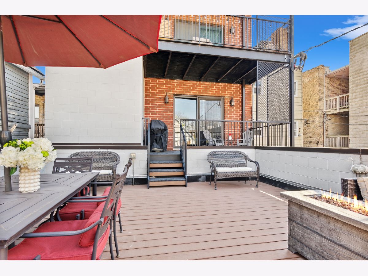 This stunning three bedroom two bathroom condo perfectly located on the trendy Southport Corridor strip is an outdoor lover's paradise with three sun drenched private spaces to go along with a flawlessly designed interior. Completed in 2015, the home was carefully finished with high-end finishes, oak hardwood floors throughout, full size stackable laundry closet and a detailed trim package featuring wainscotting and crown molding. The open concept main living and dining area has a great design centered around the low profile gas fireplace/TV setup which seamlessly blends into the all white gourmet kitchen with high-end appliances, quartz countertops, stone backsplash with vented hood, separate pantry closet and an oversized island with beverage fridge. Finishing off the light-filled living/dining space is direct access to the 1st private outdoor space overlooking Southport that is perfect for grilling, morning coffee, or al fresco dining. Both 2nd and 3rd bedrooms are neatly tucked away in the middle of the unit with great closet space and a well appointed 2nd full bathroom. The luxe primary bedroom has an elegant backlit tray ceiling, custom walk-in closet, flat-screen TV setup and a designer primary bathroom with double bowl vanity with quartz countertops and oversized walk-in steam shower finished in white marble subway tile. Completing this fantastic condo is a massive two-tiered outdoor space with a large covered balcony leading out to your private garage rooftop deck. One outdoor parking space conveniently accessed by an interior rear staircase is included in the sale. A truly one of a kind space on the most sought after street in all of Lakeview located in the Blaine School District steps to shopping, night-life, public transportation, great parks and a plethora of award winning restaurants.