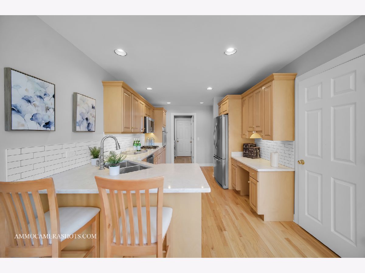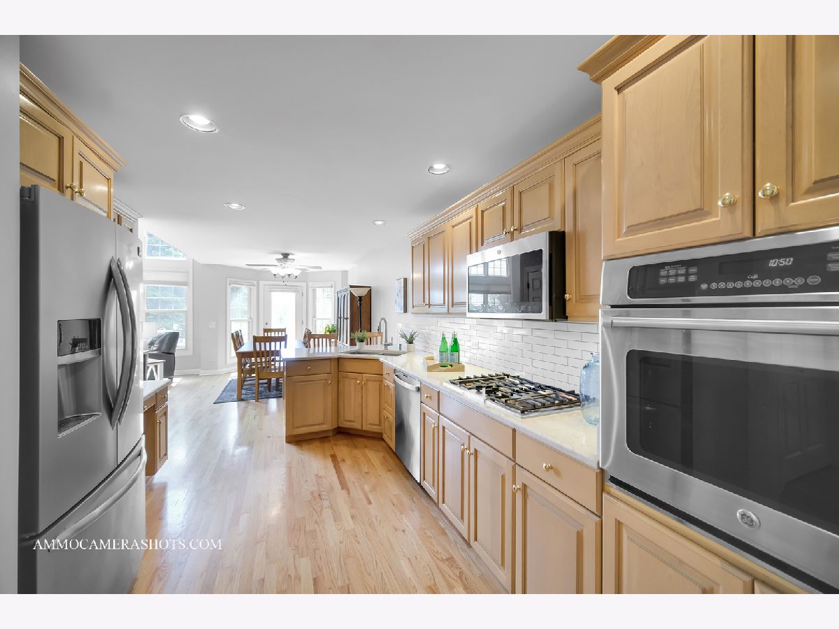 OFFERING THIS KINGSWOOD SUBDIVISION OF ST. CHARLES R. LAUTZ CONSTRUCTION 3 bedroom 2.1 bath end unit townhouse! Expect superior quality and craftsmanship, distinctive design, and thoughtful upgrades throughout including...wide crown molding, hardwood floors, 6 panel doors, volume ceilings, skylights, lush stair runner and carpeting on second floor, transomed Anderson windows, and custom blinds. Main floor living spaces flow effortlessly and include: a welcoming foyer entry; a powder room with pedestal sink; a formal dining room which can easily flex as a den or home office to suit your family's unique needs; an open concept kitchen with tall maple cabinetry, subway tile backsplash, quartz countertops, planning desk, stainless steel appliances including cooktop and built in oven with convection option; an adjoining casual eating area with French door to private oversized concrete patio surrounded by professional landscaping, and a convenient natural gas line making hosting summer barbecues a breeze; a two story family room with 2 skylights, and a gas fireplace perfect for gathering with popcorn and a movie on those cozy cool midwestern evenings; and a convenient mudroom/laundry room with utility sink. A grand open staircase leads to the second floor which is anchored by a spacious primary suite with volume ceiling featuring his and hers closets, a private bath with double vanity and walk-in shower; and 2 additional bedrooms and a full hall bath. A spacious unfinished basement awaits your design ideas....or as is, makes perfect storage space. 2 car attached garage. GREAT LOCATION close to shopping and fabulous dining, and all that St. Charles, Batavia, and Geneva have to offer....the scenic Fox River and vibrant historic downtowns! Updates Include: Interior painting 2020, skylights & roof 2022, carpeting 2019, HVAC 2013, sump pump 2017, water softener 2019, water heater 2015.