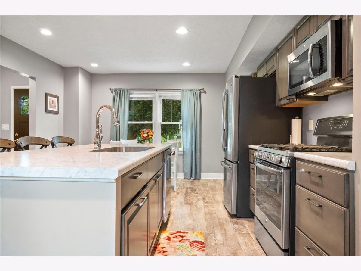 Adorable 3 Bedroom/1.5 Bath, Ranch Home on a Corner Lot! Spacious carpeted living room with woodburning fireplace. Beautiful modern kitchen with large Island, coffee bar, stainless steel appliances, dining area, recessed lighting, and wood laminate floors. Two bedrooms with original hardwood floors and great closet space. An additional 3rd carpeted bedroom, perfect for child's room or office space. Nicely, updated, full bath, with newer cabinet, sink, and tiled tub enclosure. A full-sized laundry room completes the main level. A full basement with Family Rm/fireplace area ready to finish, a newly wired workshop area (Another fireplace!), sink, and plenty of room for storage. Attached 2-car garage with 20x12 wood-floored attic above. Large back yard with apple and pear trees to enjoy! New railing ('21), Shed with wood floor and blocks underneath ('19), New exterior doors ('18), New Furnace, Central Air, Water Heater, and Windows ('17), and Roof ('07).