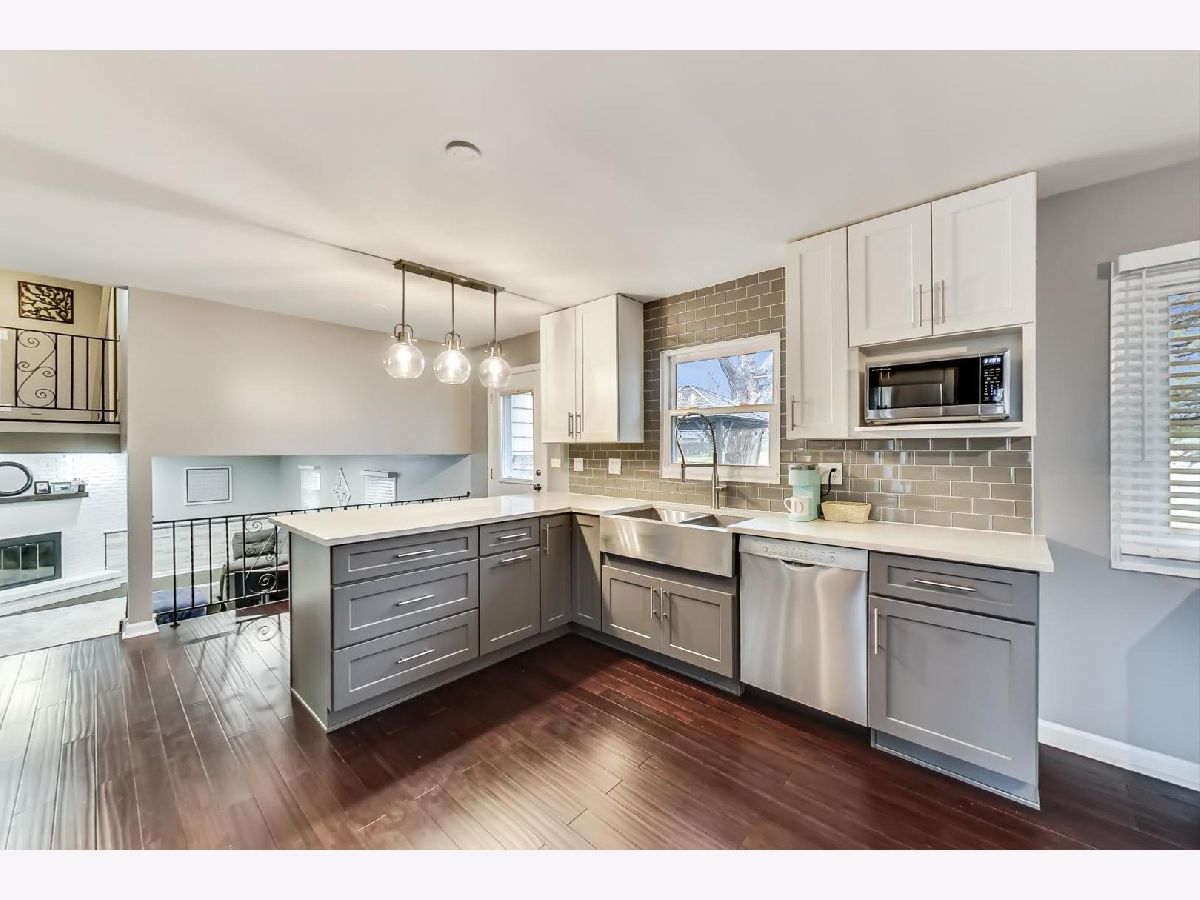 **HIGHEST AND BEST CALLED FOR BY SUNDAY AT 6PM** Beautiful move-in ready split level. Every room and ceiling are freshly painted. New blinds that stay. The kitchen has quartz countertops, new cabinets, all SS appliances and opens into the dining space that is perfect for entertaining. There is upgraded bamboo flooring throughout the first floor and wood look tile in the lower-level family room. Relax downstairs with the wood-burning fireplace. The large primary suite is grand enough for a king-size bed with a walk-in closet and vanity. The primary bathroom with an updated shower and fixtures. Brand new carpet in all 3 bedrooms (installed 2/18/2022.) The two other bedrooms share a second full bathroom with an updated shower and all new fixtures. The laundry room floor is brand new tile with new cabinets and backsplash. All new doors and closet doors throughout. New smoke/carbon monoxide detectors throughout. 2.5 car garage with plenty of storage. Backyard with deck and gazebo that opens up to school field and playground.