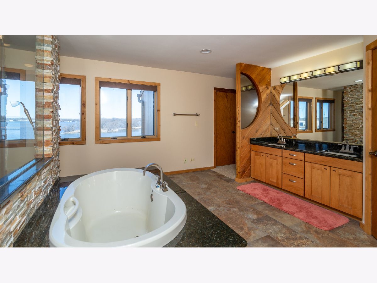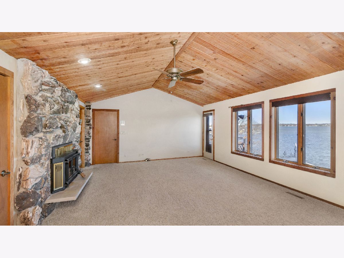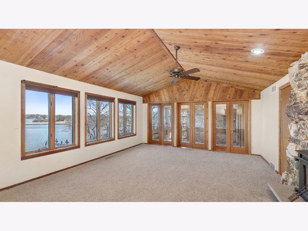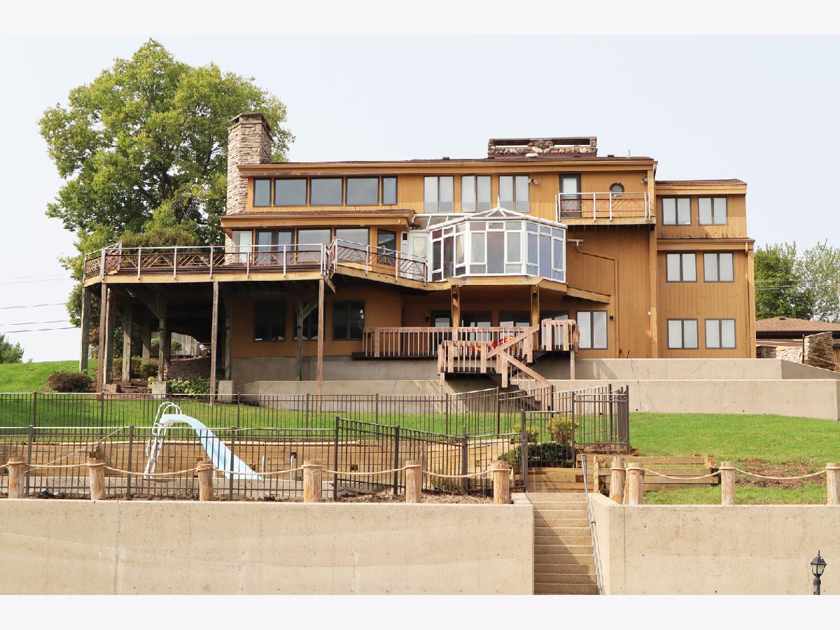 Enjoy spectacular views from a highly desired hilltop location overlooking Pistakee Lake in this custom built "Frank Lloyd Wright" inspired waterfront property! Includes brand new Shore Station pier with customizable layout, new electric boat lift with canopy, and two new jet ski lifts! The backyard features a private inground swimming pool with slide! Over 5,000 square feet in this amazing 3 level home. Vaulted ceilings, custom window trims, and a soaring brick fireplace await you in the living room. Witness breathtaking panoramic views of the lake from the spectacular walkout sunroom and walkout deck. Kitchen features granite countertops, indoor grill, and maple cabinetry. Main level features 2 bedrooms and a newly remodeled full bath with walk-in shower. A wet bar, huge recreation room, and walkout deck await you on the lower level, along with an additional bedroom, office space, storage room with lots of built-in shelving, and another newly remodeled full bath with walk-in shower. The upper level features a massive master bedroom suite with fireplace, huge walk-in closet, and luxury, resort-like bathroom with giant walk-in shower and jetted tub. Skylights located throughout the house bring in natural sunlight all day. Plenty of space for vehicles and toys with the attached heated 3-car garage, along with the detached heated 2-car garage, both with new epoxy flooring. Additional 2020 upgrades include 3 new furnaces and A/C units, new tankless water heater, new UV water disinfection system and softener, new motorized shades, and much, much more! Ask to see a full list of upgrades! This is certainly one of the most prized properties on the Chain O' Lakes! Act now so that you can be fishing or boating by Memorial Day!