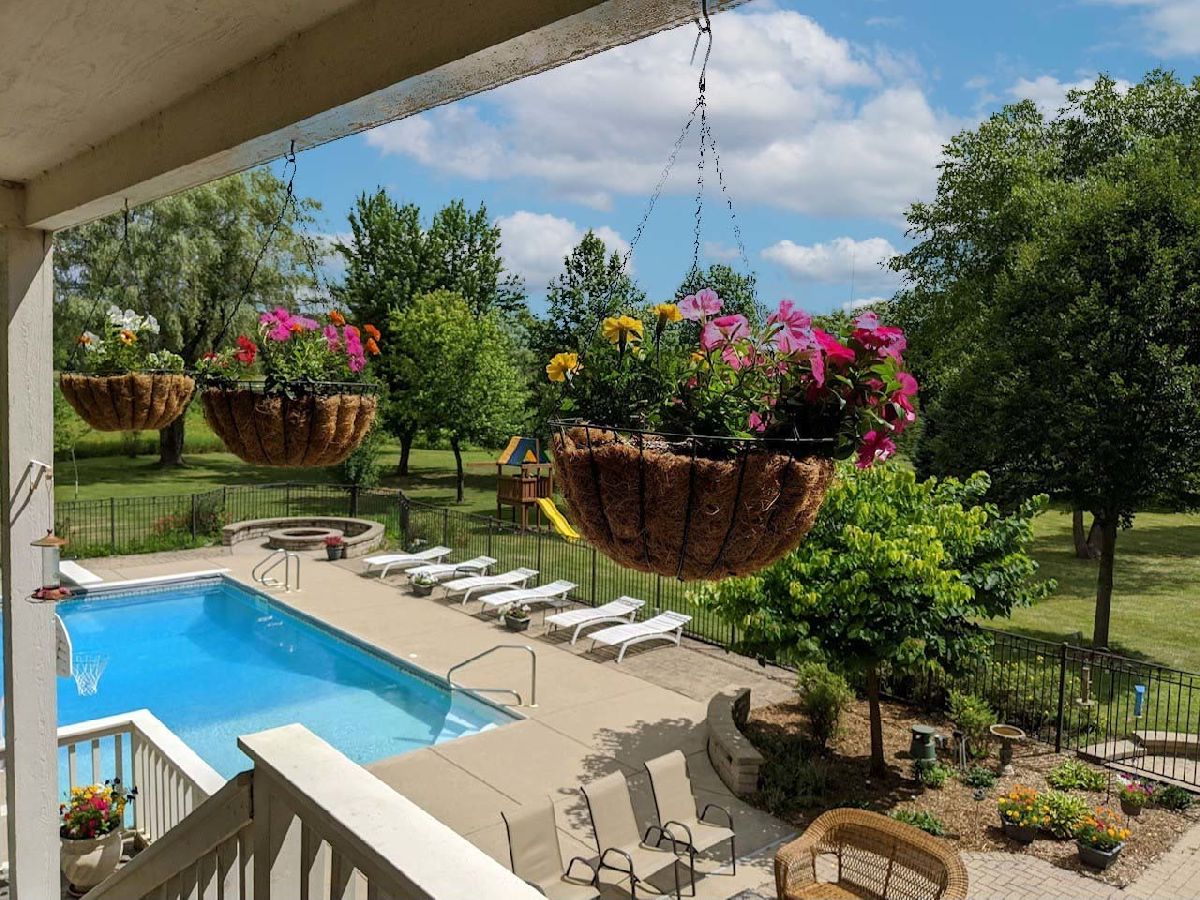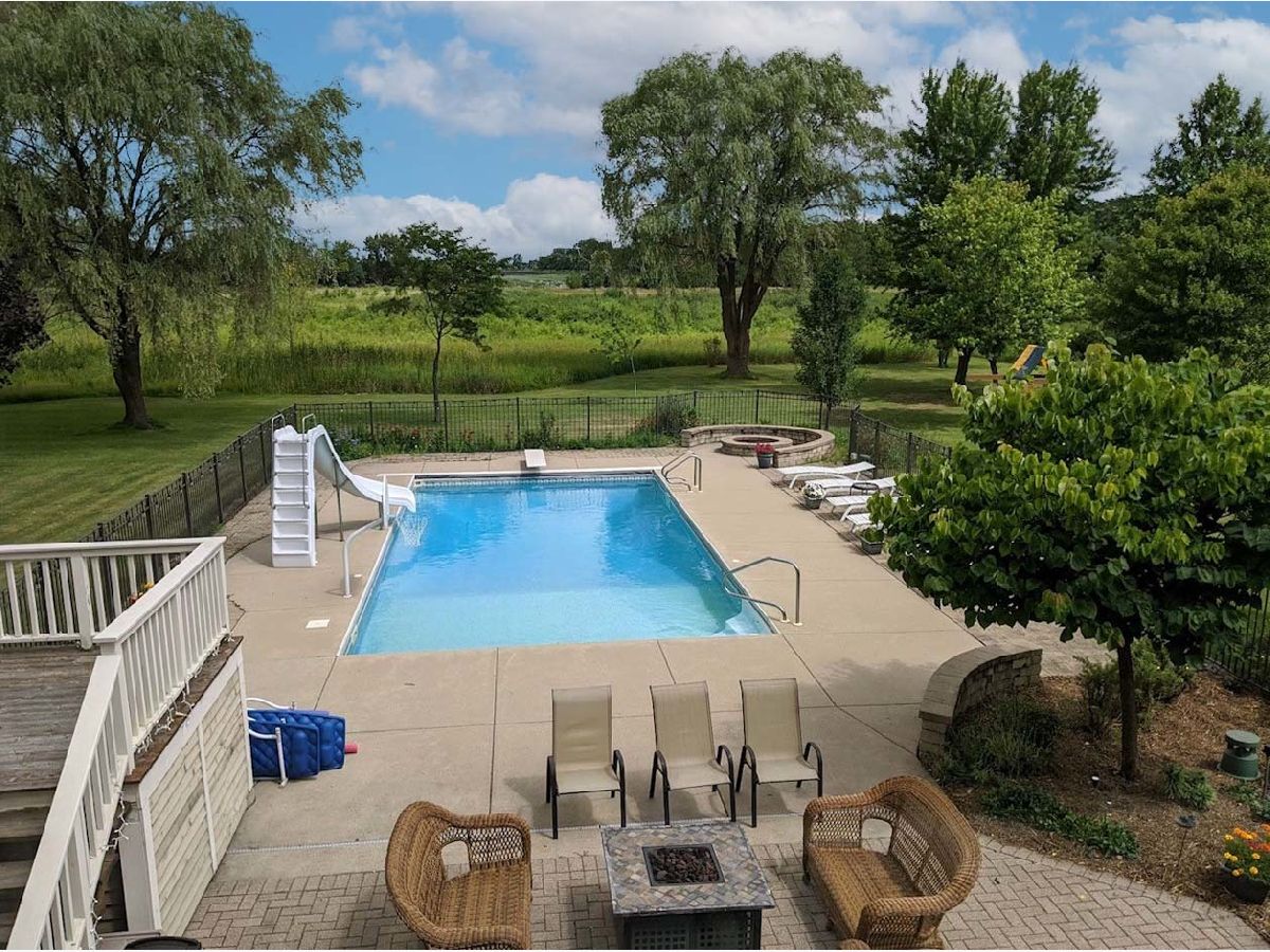 Vacation in your backyard in this beautiful 4 +1 bedroom, 3.5 baths home. Oversized in-ground pool with cover, slide and diving board, screened in 3-season room, paver patio, firepit, stunning views, mature trees. Nothing will ever be built behind the property. Private Cul-de-sac location. Beautiful foyer with open staircase, mud/laundry room, living, separate dining room, kitchen and family room with access to the 3-season room completes the main floor. Primary suite as well as 3 large bedrooms with lots of closet space upstairs. English basement with wet-bar, full bathroom and 5th bedroom/office. Quick close possible.