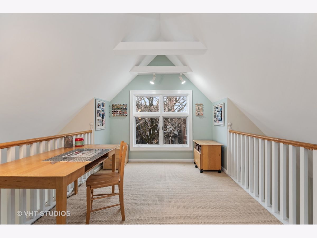 Meticulously updated home on charming tree-lined block in West Lakeview with 4 beds (all above grade), 2 full baths, and 1st floor powder room. Enter into a proper foyer with convenient closet space for Chicago's changing seasons. The front living room features a dramatic 3-story atrium of light, a beautiful fireplace, and an adjoining formal dining room. The bright rear living space consists of a large casual eating area with lighted dry bar and cozy built-in window seating. The high-end kitchen offers a built-in Sub-Zero fridge, Thermador Pro 6-burner gas cooktop, Bosch wall oven & dishwasher, solid wood white cabinets, and granite countertops. The 2nd floor features 3 beds, a recently upgraded full bath, and a spacious laundry room. The top floor consists of a private primary suite with a sitting room and lofted den/office. The Italian travertine primary bath has skylights, dual sinks, a jetted soaking tub, and a separate frameless glass shower. The lower-level basement includes a workshop and ample storage space. The private backyard features a brick patio for al fresco dining and a detached 2-car garage. Located within the Hamilton school district and just steps from Trader Joe's, the Brown Line, schools, and shopping/dining on Southport.