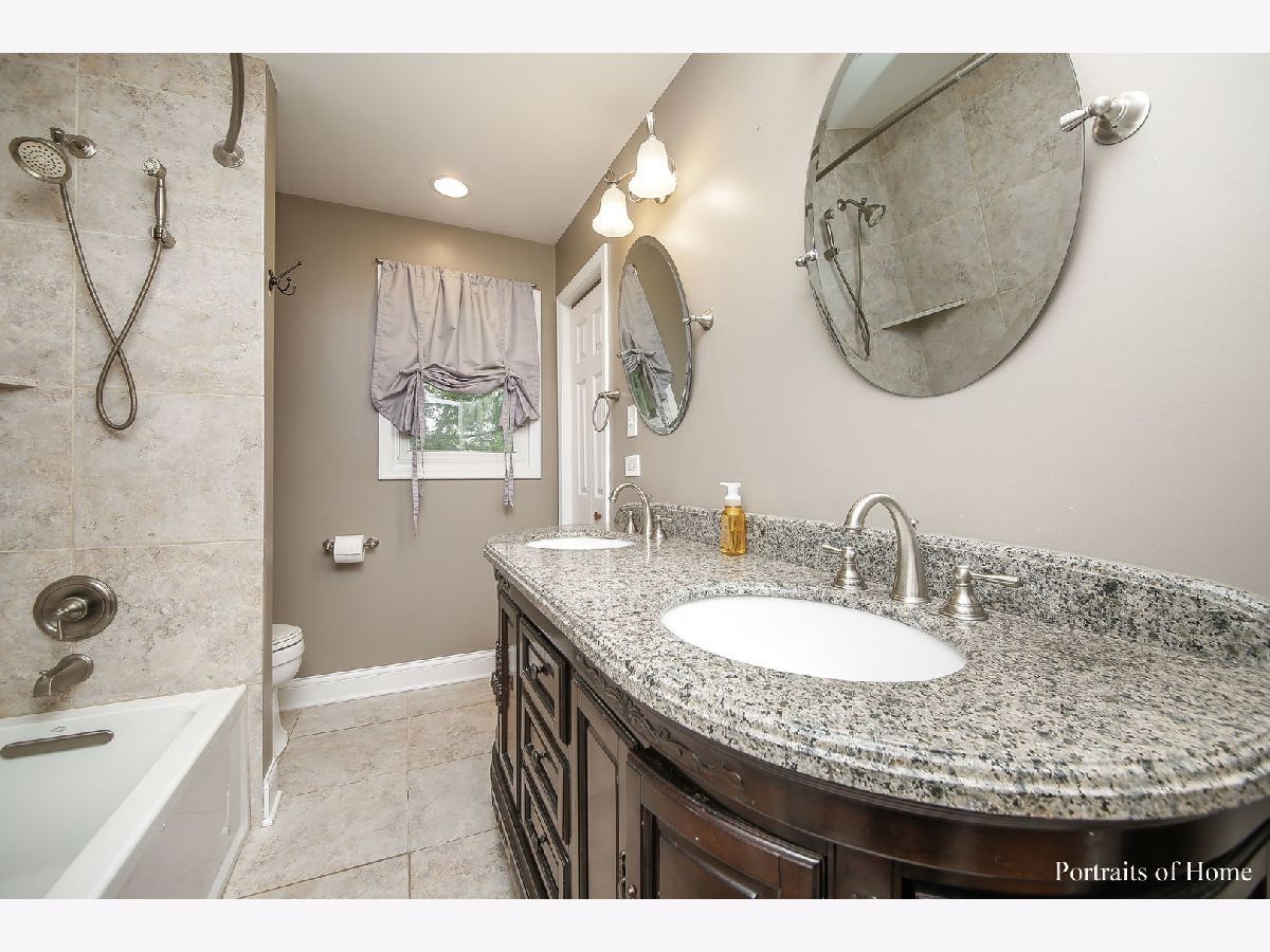 Spacious 4 bed, 2 bath T-raised ranch on a quiet no-outlet street. Large and inviting foyer w/lapboard wall and gorgeous slate floors has dual access to garage and patio. Main level offers hardwood floors in living and dining room. Kitchen is open to dining area and offers plenty of cabinet and storage space. 3 generous sized bedrooms share beautifully updated bath with double bowl sink and granite countertop. Lower level boasts additional living space featuring family room w/2nd fireplace and wet bar, full bath, 4th bedroom, and laundry room with exterior access. Large private and quiet lot boasts fenced yard and spacious concrete patio. Fantastic location in a great community close to shopping, schools, dining and expressways! Spacious 4 bed, 2 bath T-raised ranch on a quiet no-outlet street. Large and inviting foyer w/lapboard wall and gorgeous slate floors has dual access to garage and patio. Main level offers hardwood floors in living and dining room. Kitchen is open to dining area and offers plenty of cabinet and storage space. 3 generous sized bedrooms share beautifully updated bath with double bowl sink and granite counters. Lower level boasts additional living space featuring family room w/2nd fireplace and wet bar, full bath, 4th bedroom, and laundry room with exterior access. Large private and quiet lot boasts fenced yard and spacious concrete patio. Fantastic location in a great community close to shopping, schools, dining and expressways!