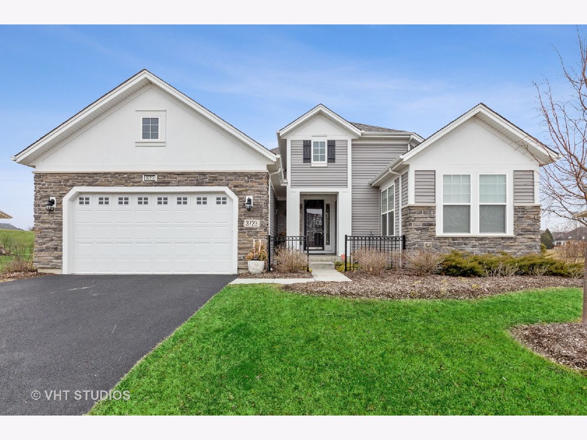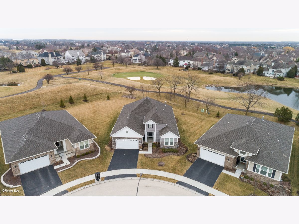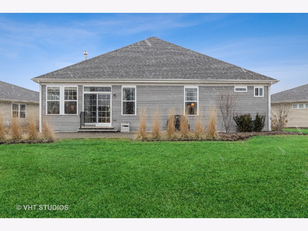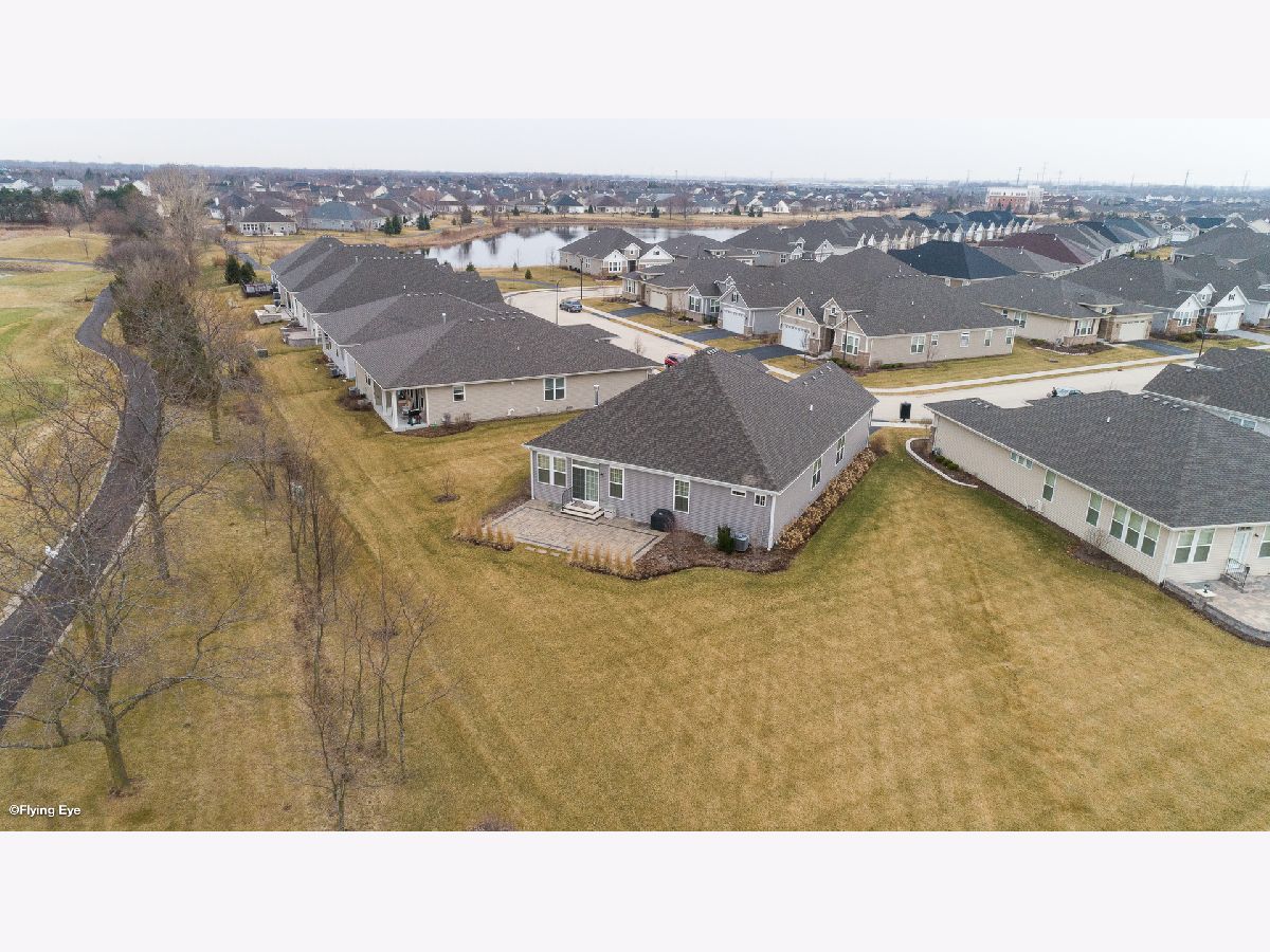 Gorgeous & Exquisite 3 yr. New home, on a phenomenal lot in the Carillon Club of Naperville, an active adult community. Attention to detail! The minute you drive up to this Metropolitan Ranch home you can see why this home is spectacular! The beautiful exterior of stone and vinyl siding is virtually maintenance free with entry door and stained glass sidelights with a welcoming covered porch to protect your guests from the weather. Upon entering the home you see the expansive living space, gleaming oak hardwood floors that are throughout the entire home, crown molding, 5" baseboards and loads of sunlight. This open floor plan is perfect for your everyday living and entertaining needs. The gourmet kitchen has an abundance of 42" Maple (bisque painted) cabinets with custom crown molding, pull out shelves, soft close drawers, a spacious walk-in pantry, granite counter tops, breakfast island, separate eating area AND premium Electrolux Stainless Steel appliances; double oven, microwave, 5 burner cook top and refrigerator along with a Bosch dishwasher. Your eyes will be drawn to professionally designed window treatments of valances, drapery, sheers and shades (every window in the home are fashionably appointed in the same manner.) The adjoining dinning room gives easy access to the host of the home for entertaining. The living room with a double-sided gas stone fireplace with French doors on both sides creates a double entry to the bright and spacious sunroom. Your master suite has his and her walk in closets, and a much desired linen closet. The master serenity shower with custom ceramic tile and glass enclosure is extra large. A comfort height vanity and make-up space along with an extra custom cabinet will provide all the bathroom storage you need. A 32" transom and larger operable window will provide sunlight and ventilation. The second bedroom on-suite with comfort height vanity, tub and custom ceramic tile is perfect for guests. An adjoining den can be used as a second living/family room, office space or playroom for the grandkids. Do you like the outdoors? Are you looking for a spacious professionally landscaped yard? This home has the largest lot in the Carillon and backs up to the White Eagle golf course (see Drone pictures.) Relax on your 490 square foot brick paver patio and enjoy the weather and golf course views. Be wowed with the expansive basement with additional storage space - plumbed-in & ready for your ideas. There are so many wonderful upgrades in this exquisite home - you have to see to believe! The Carillon Club is an over 55 active adult community and one owner must be 55 years old. The Carillon offers an indoor and outdoor pool, children's pool, tennis courts, exercise facility, activities, clubs and much, much more! Come live the life you have worked for!