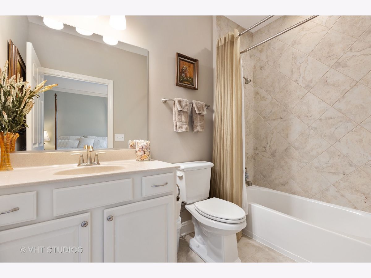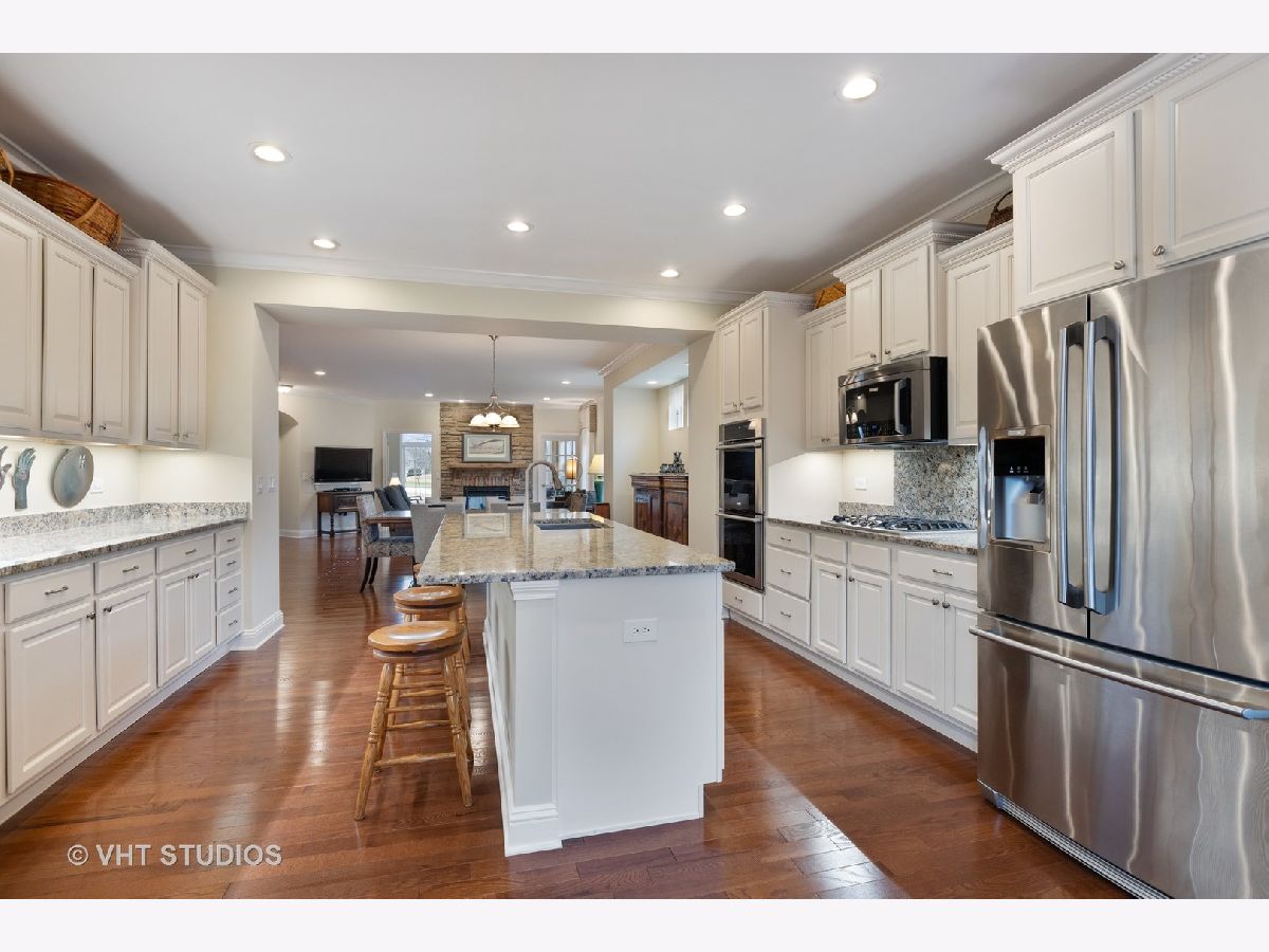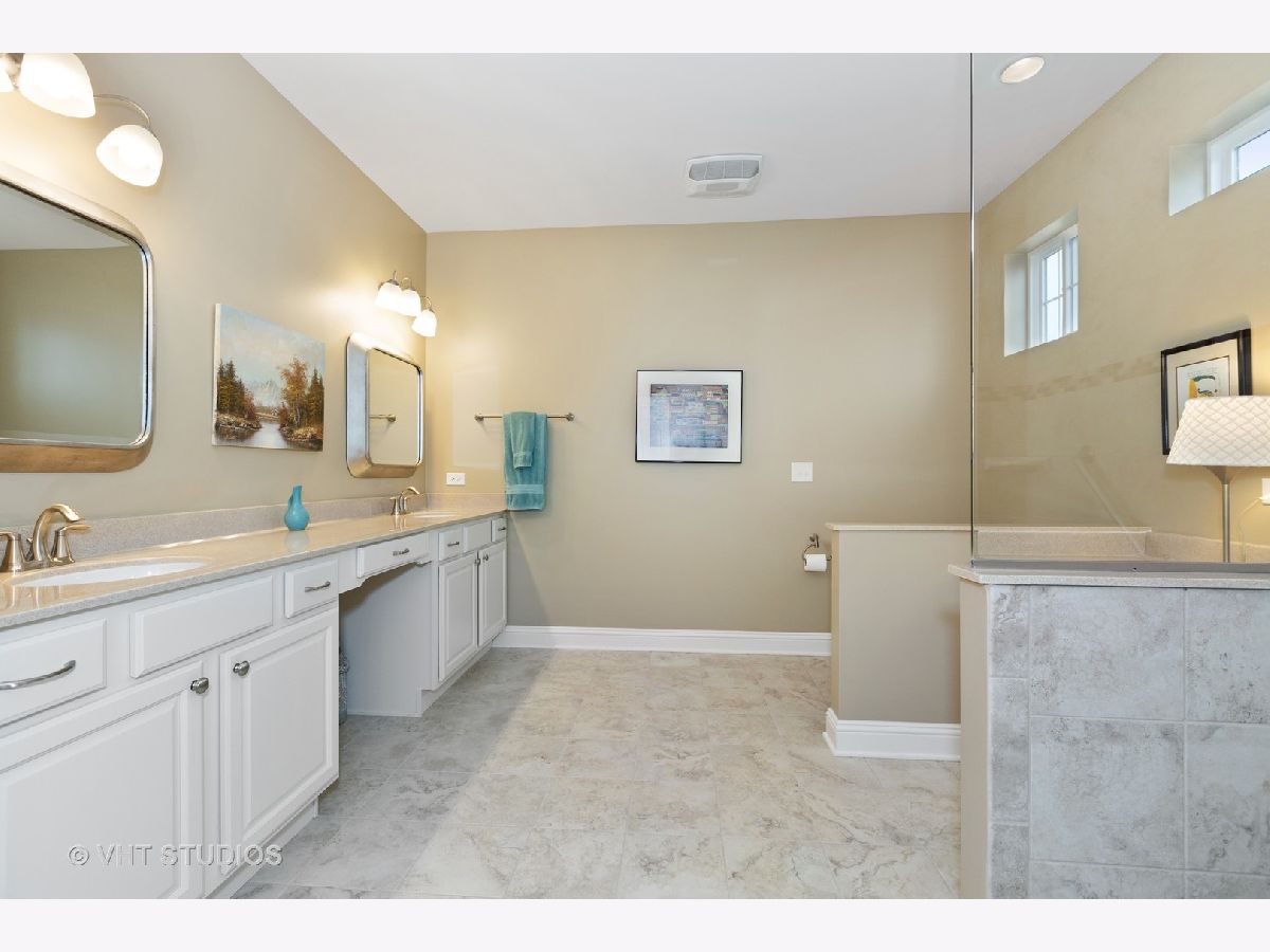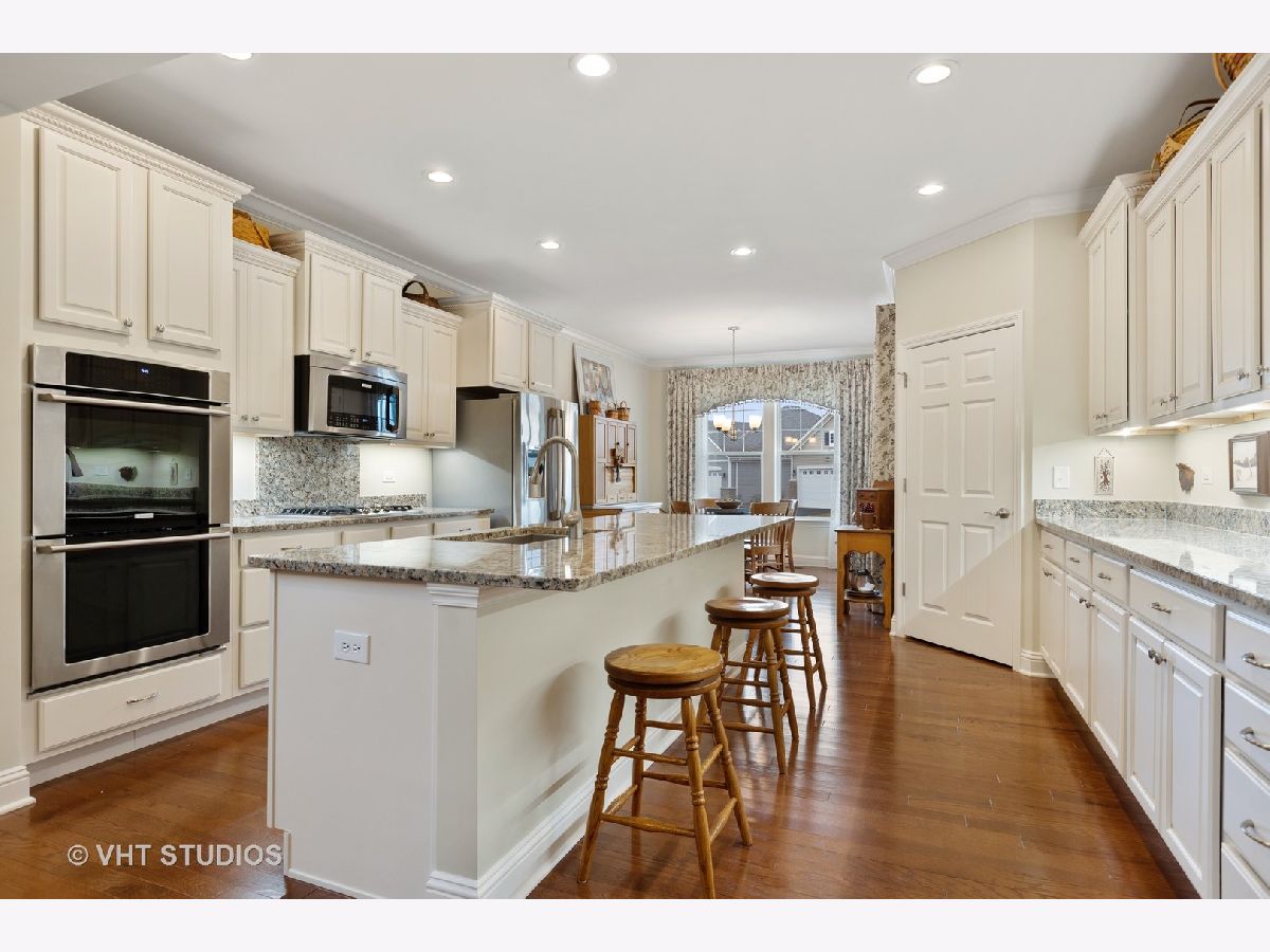 Gorgeous & Exquisite 3 yr. New home, on a phenomenal lot in the Carillon Club of Naperville, an active adult community. Attention to detail! The minute you drive up to this Metropolitan Ranch home you can see why this home is spectacular! The beautiful exterior of stone and vinyl siding is virtually maintenance free with entry door and stained glass sidelights with a welcoming covered porch to protect your guests from the weather. Upon entering the home you see the expansive living space, gleaming oak hardwood floors that are throughout the entire home, crown molding, 5" baseboards and loads of sunlight. This open floor plan is perfect for your everyday living and entertaining needs. The gourmet kitchen has an abundance of 42" Maple (bisque painted) cabinets with custom crown molding, pull out shelves, soft close drawers, a spacious walk-in pantry, granite counter tops, breakfast island, separate eating area AND premium Electrolux Stainless Steel appliances; double oven, microwave, 5 burner cook top and refrigerator along with a Bosch dishwasher. Your eyes will be drawn to professionally designed window treatments of valances, drapery, sheers and shades (every window in the home are fashionably appointed in the same manner.) The adjoining dinning room gives easy access to the host of the home for entertaining. The living room with a double-sided gas stone fireplace with French doors on both sides creates a double entry to the bright and spacious sunroom. Your master suite has his and her walk in closets, and a much desired linen closet. The master serenity shower with custom ceramic tile and glass enclosure is extra large. A comfort height vanity and make-up space along with an extra custom cabinet will provide all the bathroom storage you need. A 32" transom and larger operable window will provide sunlight and ventilation. The second bedroom on-suite with comfort height vanity, tub and custom ceramic tile is perfect for guests. An adjoining den can be used as a second living/family room, office space or playroom for the grandkids. Do you like the outdoors? Are you looking for a spacious professionally landscaped yard? This home has the largest lot in the Carillon and backs up to the White Eagle golf course (see Drone pictures.) Relax on your 490 square foot brick paver patio and enjoy the weather and golf course views. Be wowed with the expansive basement with additional storage space - plumbed-in & ready for your ideas. There are so many wonderful upgrades in this exquisite home - you have to see to believe! The Carillon Club is an over 55 active adult community and one owner must be 55 years old. The Carillon offers an indoor and outdoor pool, children's pool, tennis courts, exercise facility, activities, clubs and much, much more! Come live the life you have worked for!