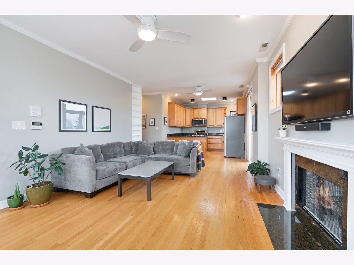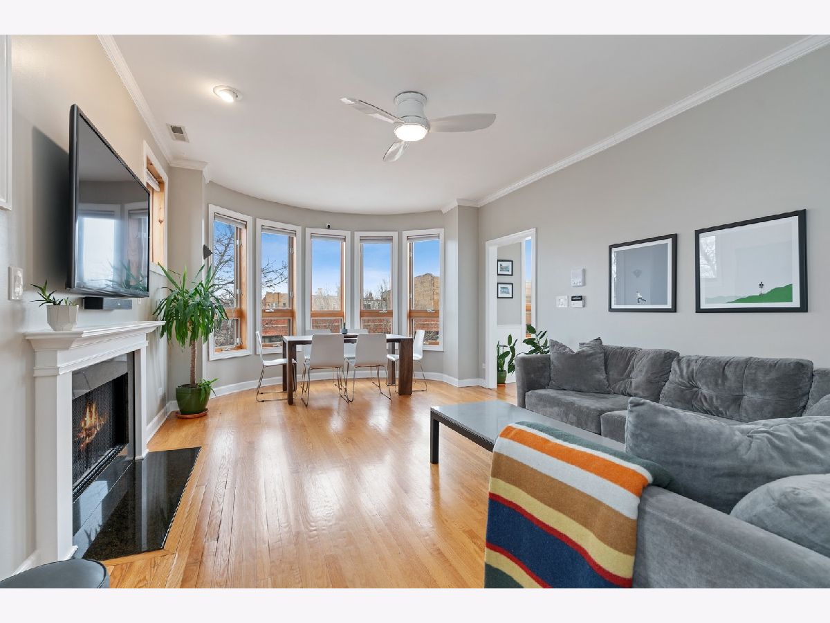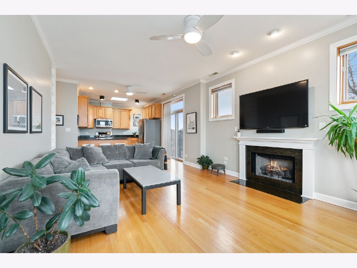 EXTRA LARGE & INVITING TOP FLOOR 2 BED/2 BATH IN POPULAR LOGAN SQUARE NEIGHBORHOOD! DISTINCTIVE FRONT BAY WINDOWS & SKYLIGHTS PROVIDE AN ABUNDANCE OF NATURAL LIGHT. WELL MAINTAINED CONDO W/MANY RECENT UPGRADES THROUGHOUT INCLUDING CROWN MOLDING, WAINSCOTING, BUILT-IN BOOKSHELVES, CEILING FANS/LIGHT FIXTURES, CUSTOM ELFA CLOSET ORGANIZERS & RE-BUILT FIREPLACE/MANTEL. ALL NEW LG STAINLESS KITCHEN APPLIANCES & LG FULL-SIZE WASHER/DRYER (2015 & 2016) AND NEW HVAC (2018). OAK HARDWOOD FLOORING ADDED TO BOTH BEDROOMS, SECOND BEDROOM W/MURPHY BED, PRIMARY BATH FULLY RENOVATED, PLUS NEW VANITY IN SECOND BATH. DELUXE, PRIVATE OUTDOOR DECK W/TREE-TOP VIEWS & MAINTENANCE FREE TREX DECKING (2017). SURROUNDED BY LOGAN SQUARE'S POPULAR DINING, NIGHT LIFE & EASY ACCESS TO PUBLIC TRANSPORTATION, GROCERY, PARKS, SUMMER FARMER'S MARKET & MORE! PET FRIENDLY BUILDING & ONE EXTERIOR PARKING SPACE INCLUDED IN PRICE.