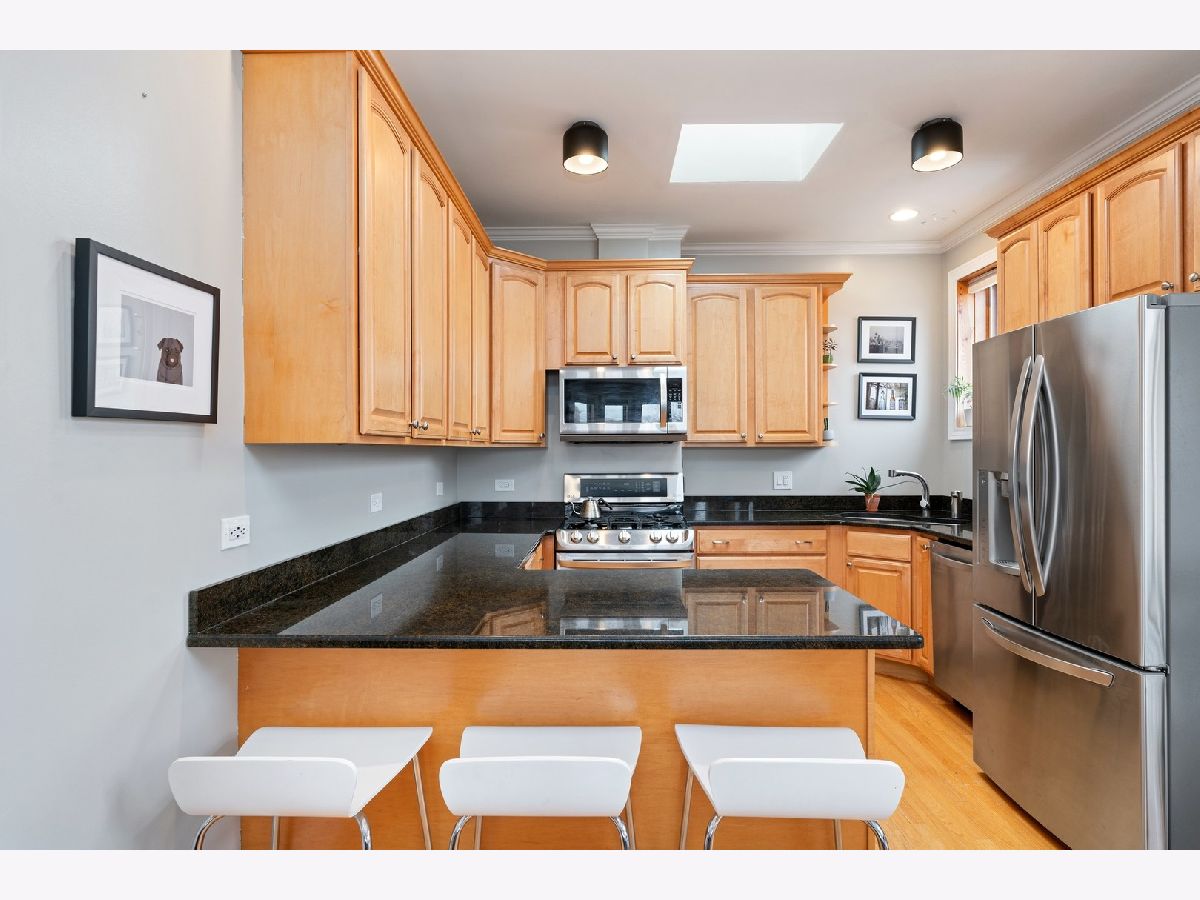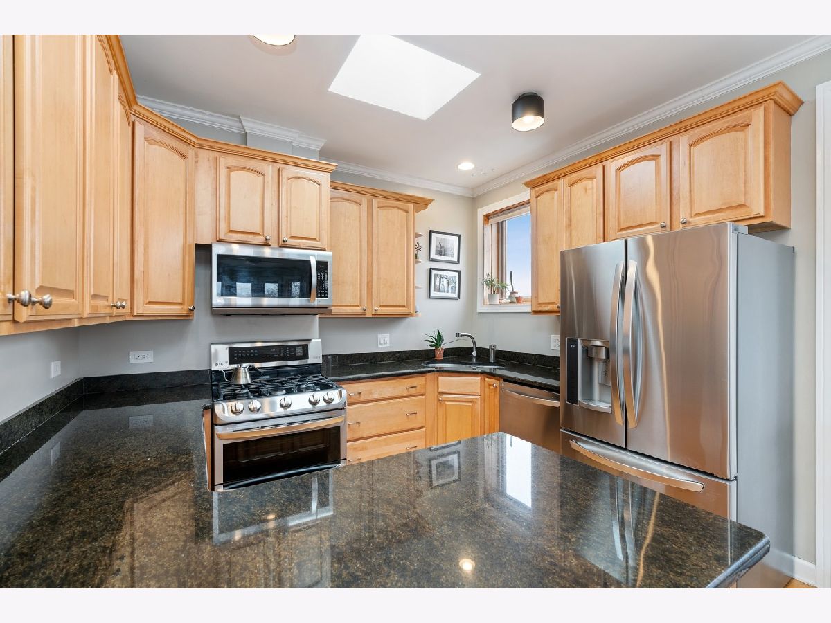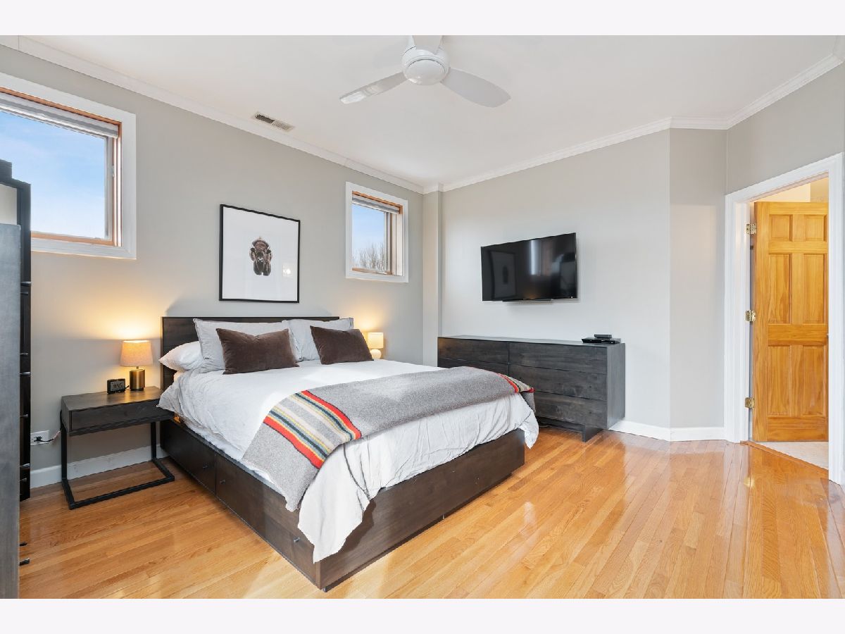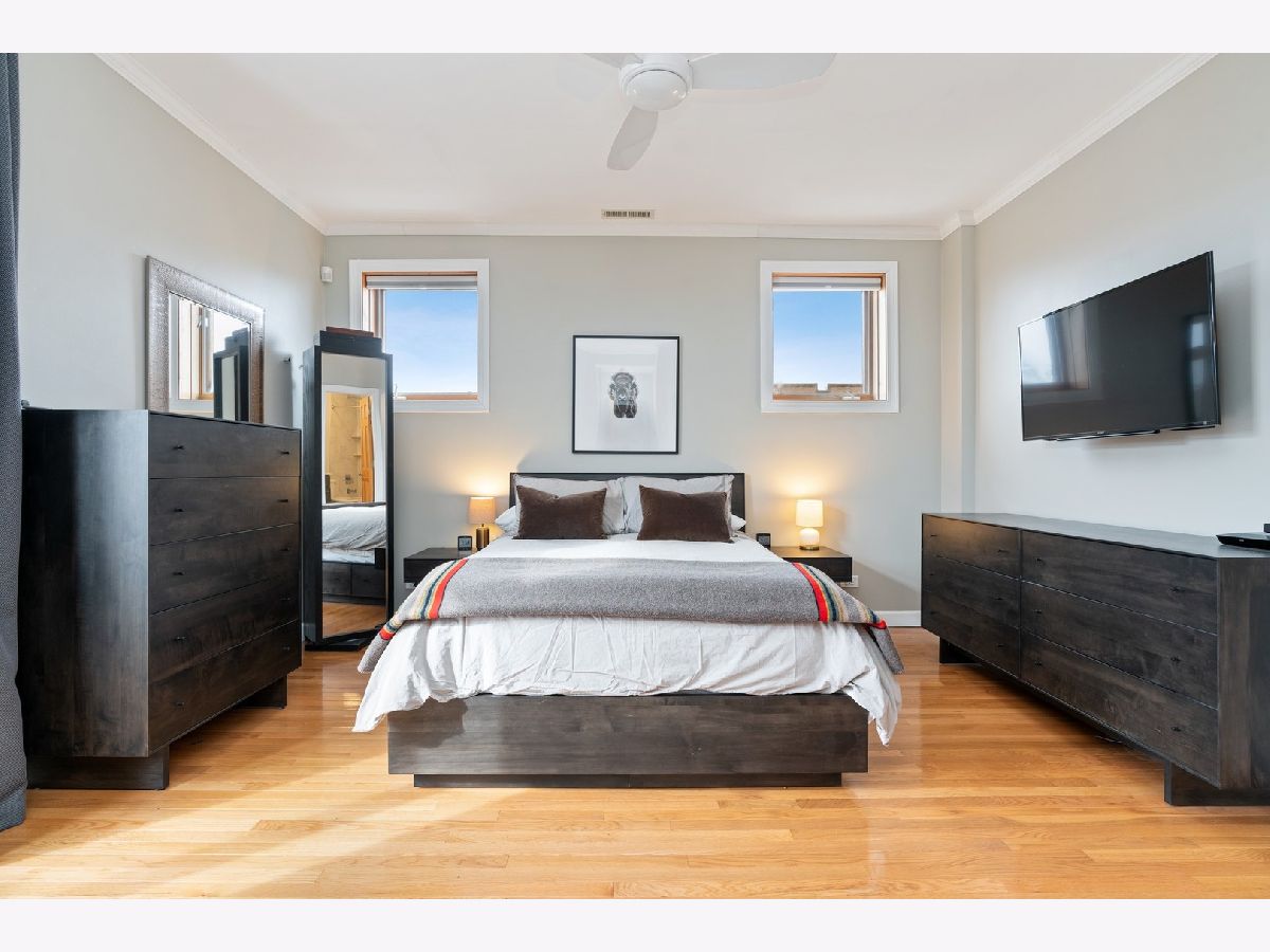 EXTRA LARGE & INVITING TOP FLOOR 2 BED/2 BATH IN POPULAR LOGAN SQUARE NEIGHBORHOOD! DISTINCTIVE FRONT BAY WINDOWS & SKYLIGHTS PROVIDE AN ABUNDANCE OF NATURAL LIGHT. WELL MAINTAINED CONDO W/MANY RECENT UPGRADES THROUGHOUT INCLUDING CROWN MOLDING, WAINSCOTING, BUILT-IN BOOKSHELVES, CEILING FANS/LIGHT FIXTURES, CUSTOM ELFA CLOSET ORGANIZERS & RE-BUILT FIREPLACE/MANTEL. ALL NEW LG STAINLESS KITCHEN APPLIANCES & LG FULL-SIZE WASHER/DRYER (2015 & 2016) AND NEW HVAC (2018). OAK HARDWOOD FLOORING ADDED TO BOTH BEDROOMS, SECOND BEDROOM W/MURPHY BED, PRIMARY BATH FULLY RENOVATED, PLUS NEW VANITY IN SECOND BATH. DELUXE, PRIVATE OUTDOOR DECK W/TREE-TOP VIEWS & MAINTENANCE FREE TREX DECKING (2017). SURROUNDED BY LOGAN SQUARE'S POPULAR DINING, NIGHT LIFE & EASY ACCESS TO PUBLIC TRANSPORTATION, GROCERY, PARKS, SUMMER FARMER'S MARKET & MORE! PET FRIENDLY BUILDING & ONE EXTERIOR PARKING SPACE INCLUDED IN PRICE.