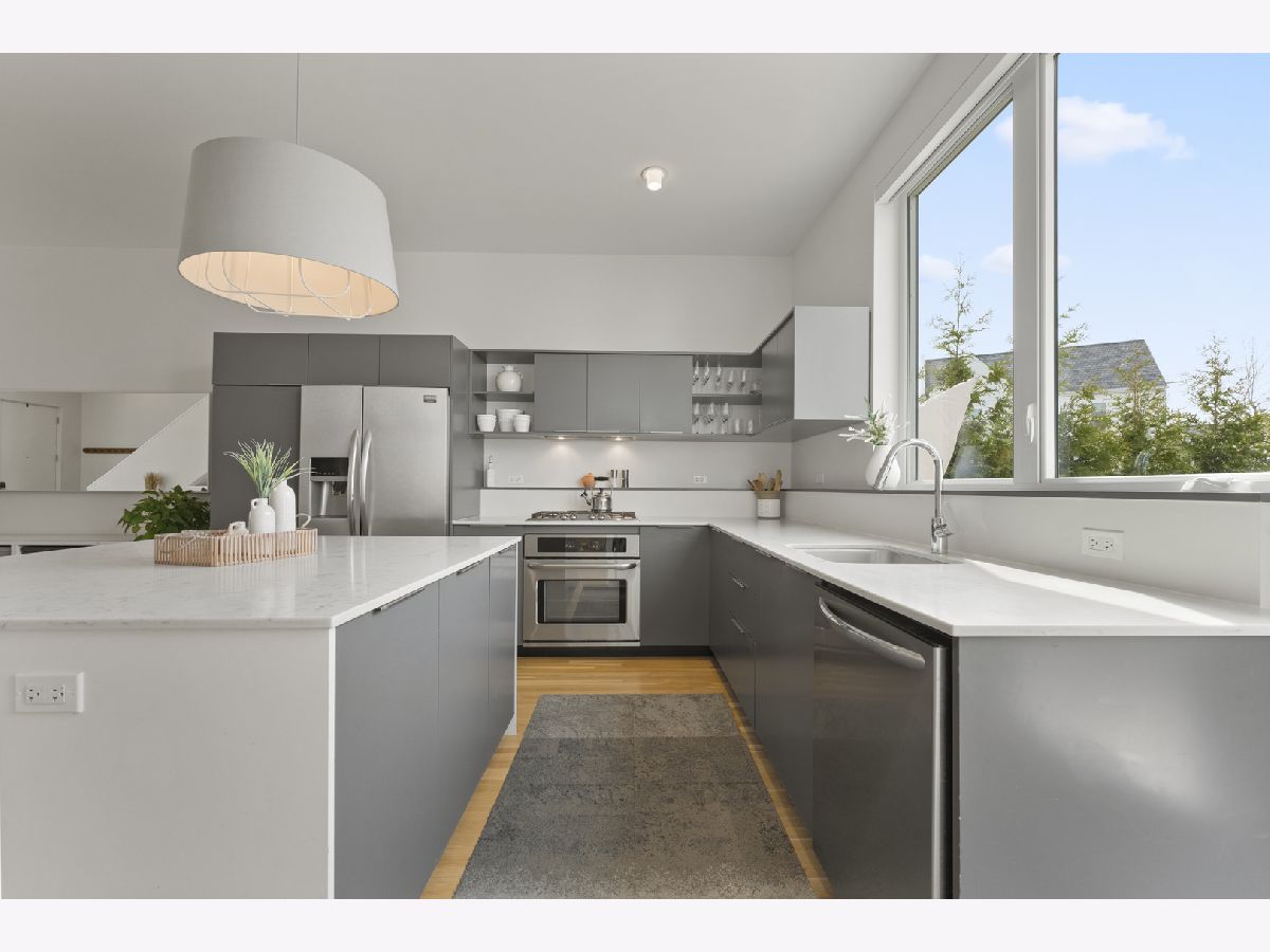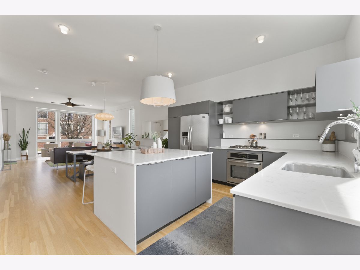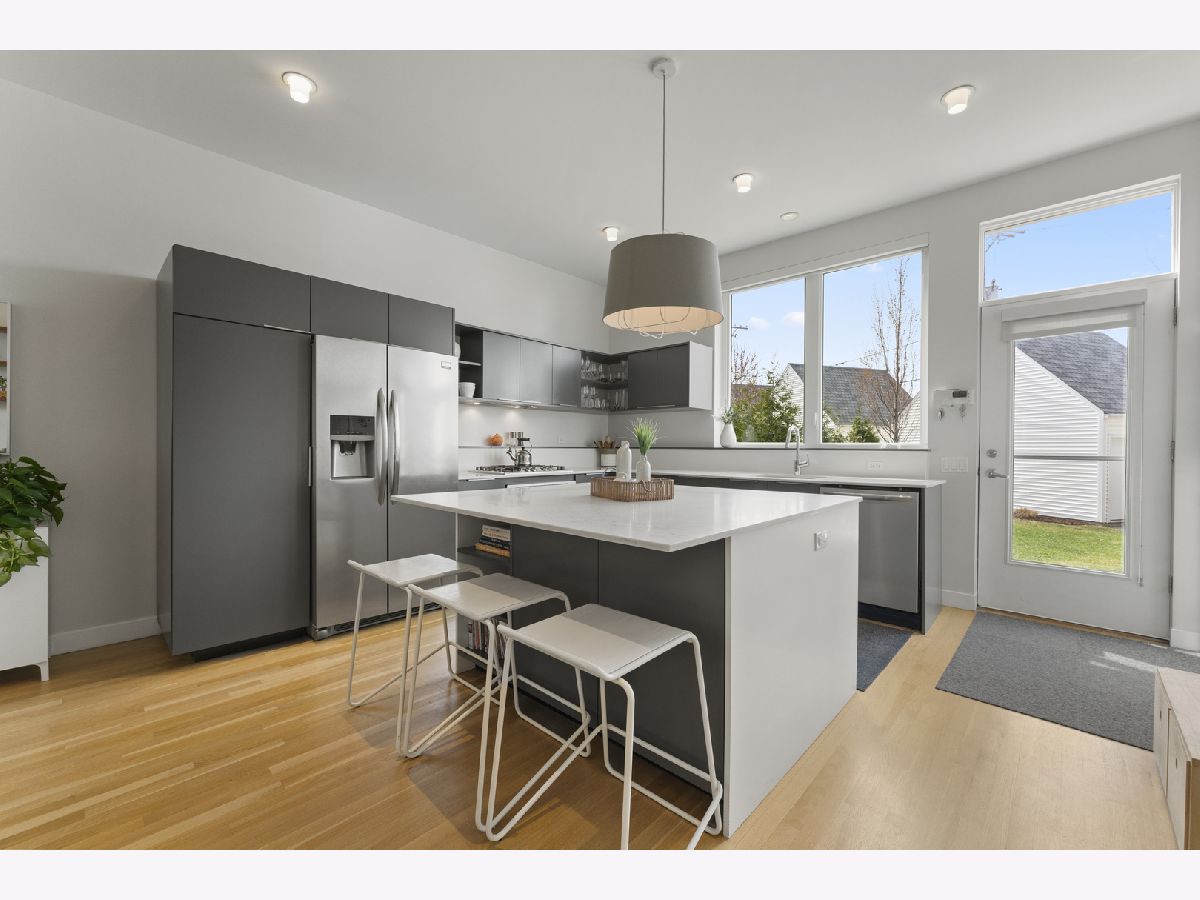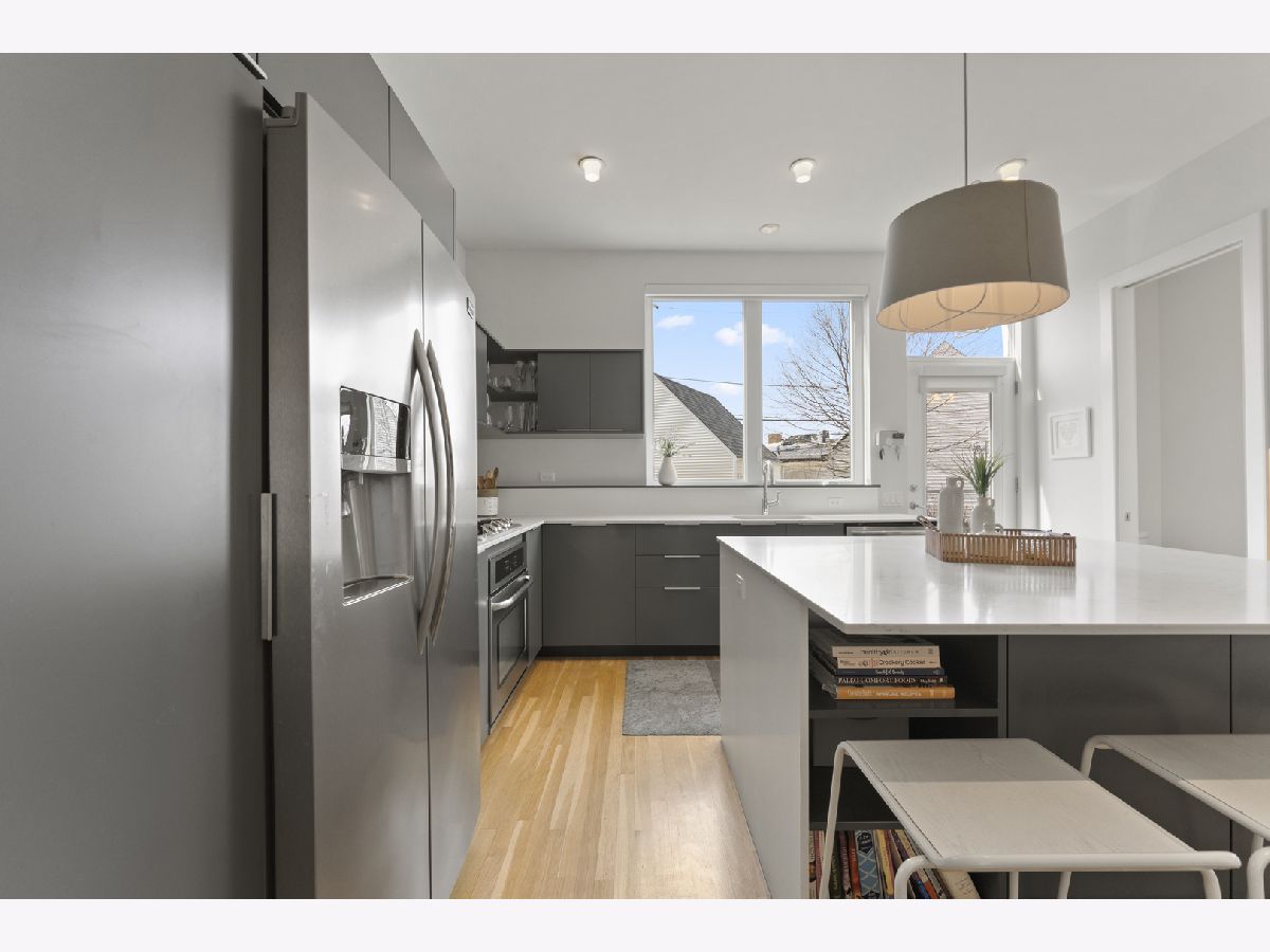 Sophisticated Modern Living in Award-Winning Basecamp Old Irving Park! This stunning contemporary home offers the largest floor plan in the acclaimed Basecamp of Old Irving Park community. Designed for seamless indoor-outdoor living, it features an expansive rear yard and a spacious two-car garage with lofted storage. Step inside to an open, light-filled layout, where soaring 10-foot ceilings, expansive windows, and rich hardwood floors create a bright and inviting ambiance. The main level is designed for both entertaining and everyday living, featuring a custom-built bar, a stylish powder room, and a chef's kitchen. The kitchen boasts custom-designed cabinetry, premium Frigidaire stainless steel appliances, a separate cooktop and oven, an integrated dishwasher, a large island with ample storage, custom pull-out drawers, and lovely open shelving. Upstairs, the second floor is a sanctuary of comfort, offering vaulted ceilings with skylights, three spacious bedrooms, and warm hardwood flooring. The primary suite is a tranquil retreat with eastern exposure for beautiful morning light, a walk-in closet, and a spa-inspired ensuite bath with an oversized glass-enclosed shower. Two additional bedrooms, a full hall bath, and a convenient laundry area complete the level. The finished lower level provides exceptional versatility, featuring a large recreation room, two additional bedrooms, a full bath, and generous storage space. Crafted by the renowned Ranquist Development team and designed by Pappageorge Haymes Architects, this home is a testament to quality and modern elegance. Outdoor living is equally impressive, with a huge fully fenced rear yard, a charming front porch, and access to a private community park. Nestled in **Old Irving Park-one of Chicago's best-kept secrets** This exceptional home offers a rare blend of modern design, thoughtful craftsmanship, and a vibrant neighborhood atmosphere. It's close to the Kennedy, a 2min walk to Metra Grayland stop (you're at Union Station in 16 minutes),and .8mi to CTA Blue line at Irving, a private kids playground in the development and a quick jaunt to popular Kilbourn Park. Just north - 6 Corners is exploding with development, many new retailers, shopping and developments are currently underway. Just south - all of Logan Square and Avondale is moving this way. Don't miss this incredible opportunity!