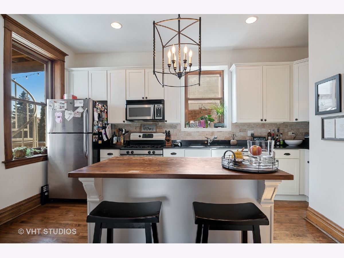AVAILABLE TO SHOW! Classic Chicago Greystone comes to life with this stunning top-floor home on coveted Magnolia Avenue. The next owner will enjoy TWO private decks, including a beautiful rooftop which offers sweeping city skyline and Wrigley Field views. Inside, vintage charm blends seamlessly with modern updates throughout this rare Southport Corridor condo. A gorgeous foyer entrance welcomes you home to gleaming hardwood floors, 10' ceilings & original crown molding, chair rail, and built-ins throughout. A spacious formal dining room and adjacent, extra-wide living room provide excellent space for entertaining coupled with incredible natural light from the top floor of your tree-lined street. Recently updated kitchen offers fresh white cabinets, under-mount sink, granite countertops, stone backsplash, stainless steel appliances and a large island with beautiful butcher block top. In-unit laundry and central heating and air. New fridge, dryer and AC unit all in the last three years. On any given day, choose between your covered balcony, perfect for morning coffee or afternoon naps, or head upstairs to your private rooftop deck complete with pergola & sweeping views of the skyline and Wrigley field. Southport Corridor/Clark Street is just steps away where you will find countless local dining, shopping, and entertainment options. Minutes from the Addison CTA Stop. Top rated school district. TWO PARKING SPACES INCLUDED. LOW ASSESSMENTS. A DO NOT MISS!