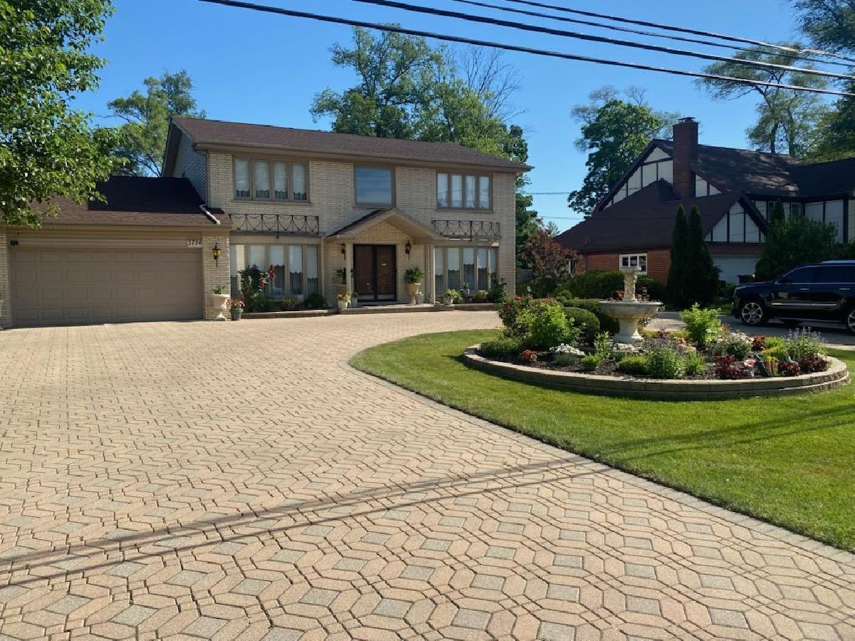 Welcome to 3736! 4,500 sq.ft. of living space including finished basement on nearly a half-acre lot. Wraparound brick paver driveway with central home entry. Brick planters, bay windows, and central fountain complete the experience. The backyard features a small waterfall flowing into a pond with seating area. Large oversized brick paver patio with lit piers. Two rooms of the home walk out onto the patio via sliding glass doorways. Bonus side patio for additional entertaining. Inside, you will discover a fully finished basement with a second full kitchen, full bathroom, and tile flooring throughout. The main level boasts a foyer with grand staircase, formal living and dining rooms as well as kitchen with eat-in table space. Large family room with fireplace and sliding doors to the outside. Main level laundry, attached garage, and office or 5th bedroom. The upper level includes four bedrooms and two full bathrooms. Hardwood flooring throughout living room, upper hall, and two bedrooms.