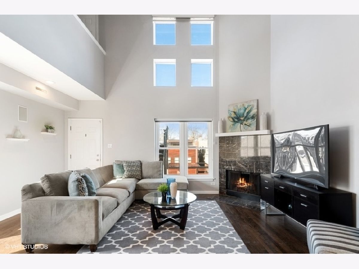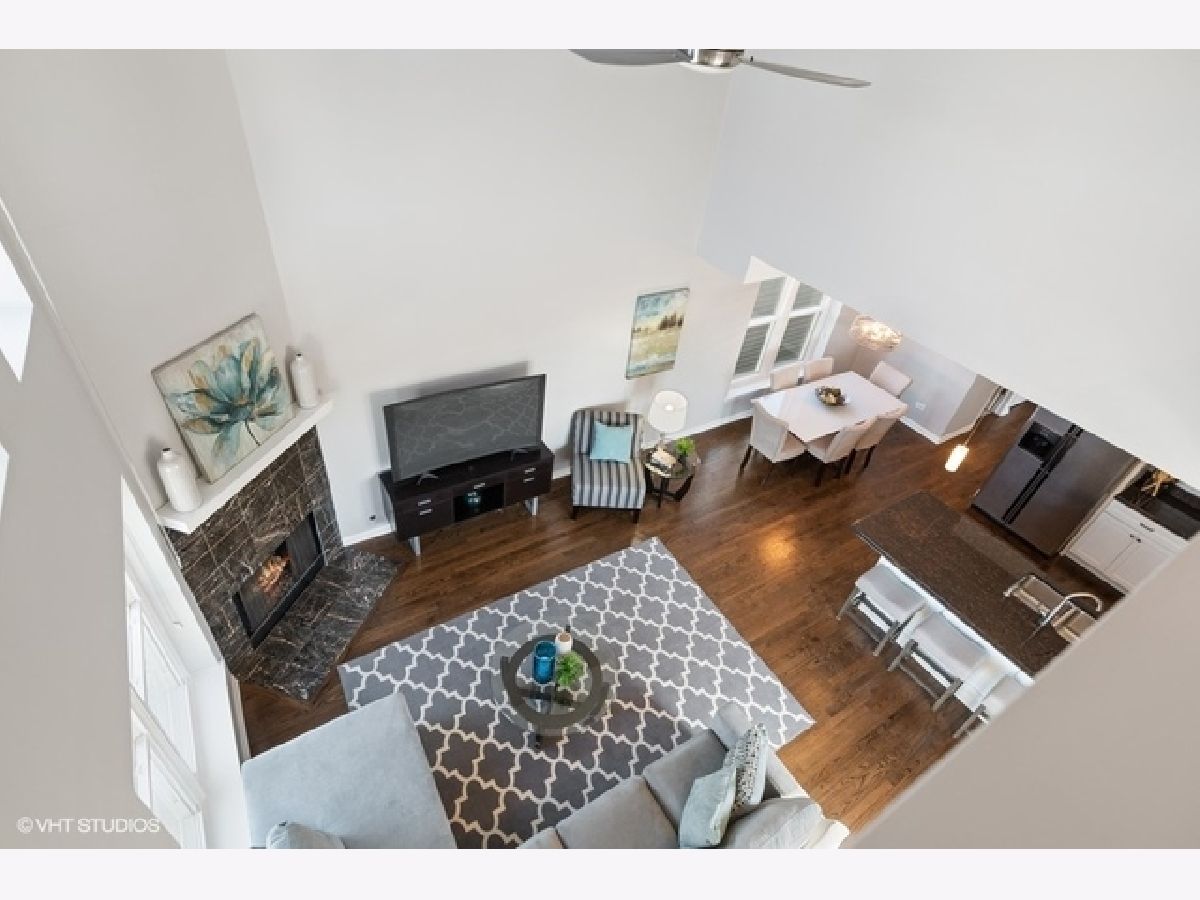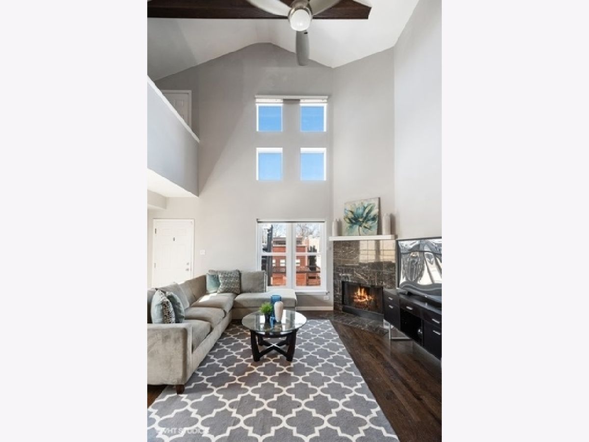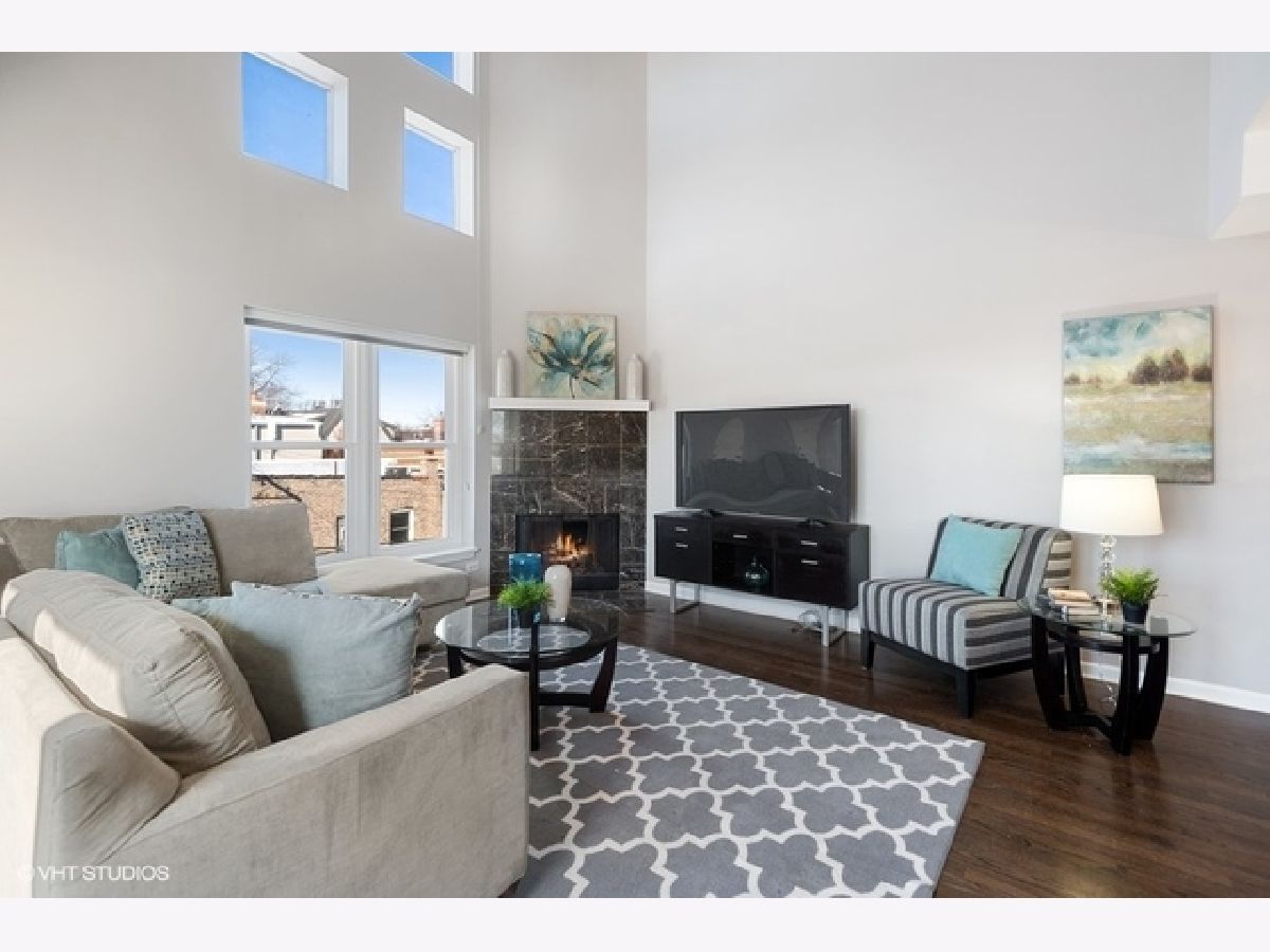 One of a kind, extra wide, unique, large, duplex-up penthouse unit in the heart of Southport Corridor is only steps away from Blaine Elementary. Consisting of the entire top 2 floors of the building This architecturally dramatic home with soaring 20 ft. vaulted ceilings, custom windows and 4 sunny exposures lives like a single family home. This home, with its own private entrance, offers large gracious rooms, incredible sunlight, tons of storage and a huge private terrace. Gorgeous kitchen features granite counters, white 42" cabinets, and stainless appliances. Huge Primary bedroom features extra large walk-in closet and an enormous attached bath with whirlpool tub, separate shower, large marble vanity with double bowl sinks and a separate water closet. Home also boast newly rehabbed 2nd bath and powder room, refinished hardwood floors, new custom lighting, gas vent less fireplace, tons of closets and huge additional storage. Each bedroom is large enough to accommodate a king size bed or as a multipurpose room with guest bed and office. The large 18x14 ft private terrace is directly access from the living space and has a phenomenal view of downtown. Just 1 block from Southport on a quiet 1 way tree lined street and an easy walk to the El Stop this property is beautifully situated for all your needs. Taxes do not reflect homeowner's exemption