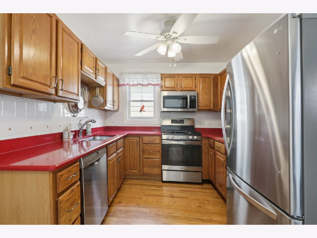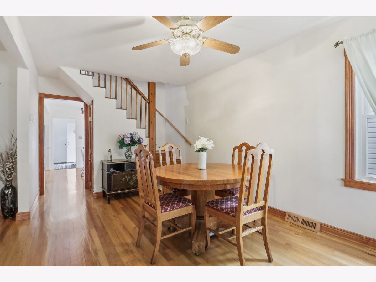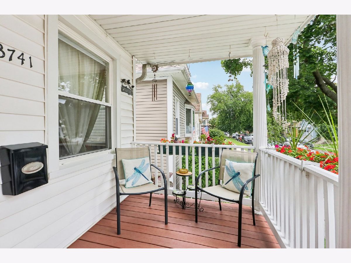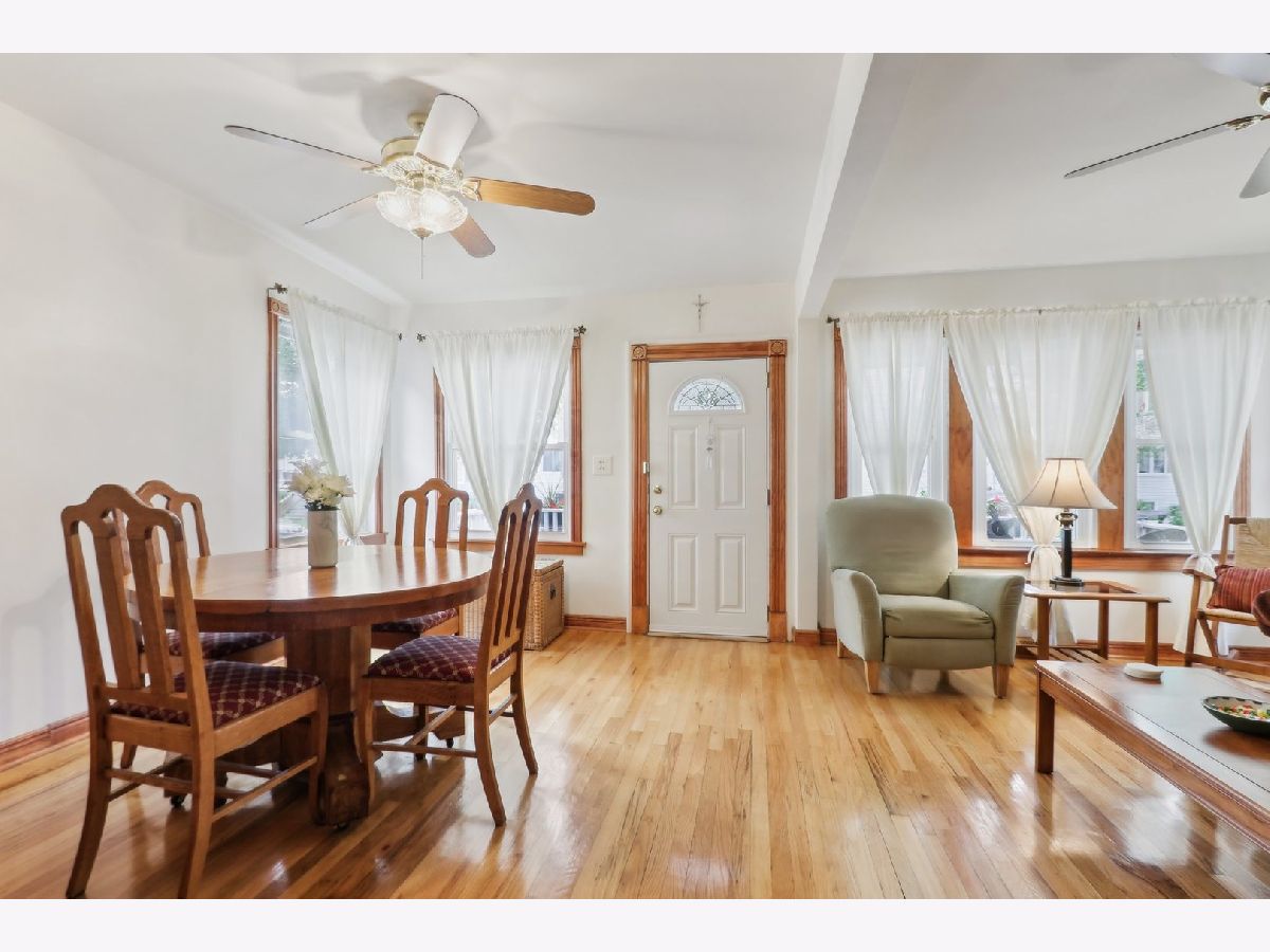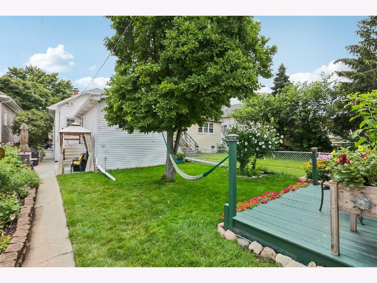 Meticulously maintained and cared-for home featuring a beautiful front porch, lovely garden, and a large main-level primary bedroom and bathroom. As you approach the home, you will be greeted by a spacious front porch with composite flooring (2022) that's easy to maintain. Stepping inside, you'll find a bright, open floor plan where the living and dining rooms are combined. The kitchen includes a breakfast area and quality stainless steel appliances: a GE Profile stove (2023), a microwave (2021), a Bosch dishwasher (2021), and an LG fridge with a bottom freezer (2023). The kitchen is outfitted with oak cabinets and a low-maintenance Caesarstone countertop. The spacious bathroom was completely gutted and remodeled in 2009. Towards the back, there is a very large primary bedroom with a vaulted ceiling, wood floors, and a serene view of the backyard. Heading up to the second level, you'll find two additional bedrooms. The partially finished basement offers a recreation/flex room, a washer (2009) and dryer (2022), space for a workshop, and a crawlspace perfect for storage. Numerous improvements have been made, including a furnace and AC (2019), a leaf filter for the gutters (2019), a kitchen expansion, a primary bedroom addition, and a garage-all completed in the early 90s. Additionally, the home features a single-layer roof (2010) and a water heater (2017). The home sits on an oversized lot with beautifully landscaped side and backyards. A large mature Magnolia tree provides ample shade, perfect for relaxing in a hammock or entertaining guests. The area includes side planter beds ideal for herbs and flowering plants. The location is convenient to transportation, shopping at Harlem Irving Plaza, dining, Shabbona Park, Hiawatha Park, and recreation, and near Denver Elementary. Taft High School opened the Freshman Academy campus at 4071 N. Oak Park Ave. in 2019. The new campus expanded Taft's attendance zone, including this home's boundary. This is a wonderful opportunity for those seeking a comfortable home in the desirable neighborhood. The seller prefers post-closing possession until October 15 2024. As is sale.