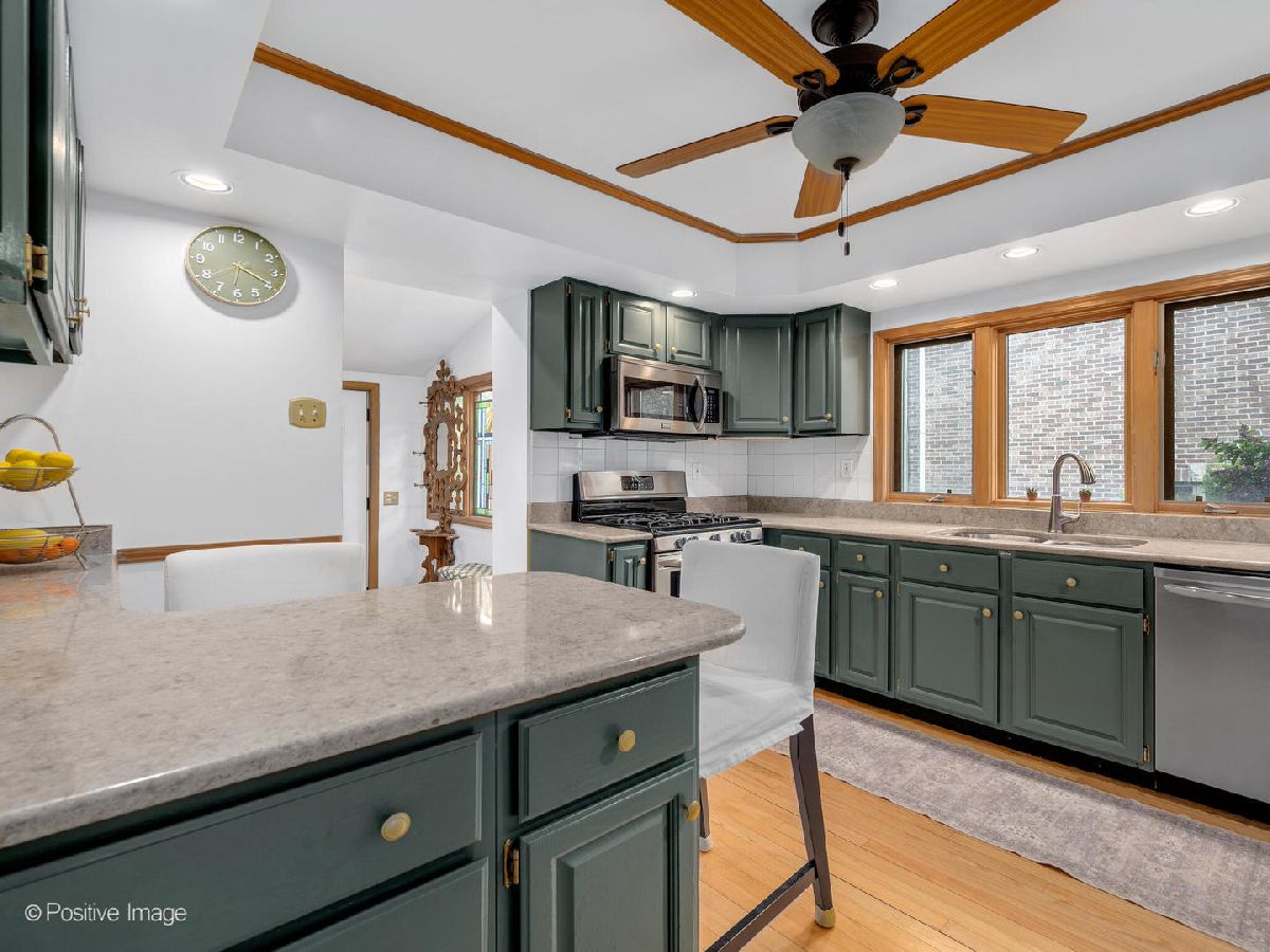 Classic Charm Meets Modern Comfort in Sought-After South Elmhurst. Welcome to this beautifully maintained 4-bedroom, 2.5-bath Chicago brick bungalow nestled in the heart of South Elmhurst. Rich in character, this home showcases timeless details like original hardwood floors, stained glass windows, stunning millwork, and vintage doors with period hardware. The sun-filled living room greets you with elegant built-ins and a decorative fireplace, while the generously sized dining room is ideal for hosting gatherings. The updated kitchen blends charm and function with newly painted cabinetry, sleek quartz countertops, and stainless steel appliances. Just off the kitchen, a smartly designed mudroom includes a pantry and oversized closet fitted with a custom Elfa system, offering practical everyday storage. The main level features two well-appointed bedrooms-one with a rare walk-in closet and organizing system-as well as an updated full bath and linen closet with a convenient laundry chute. Upstairs, you'll find two versatile rooms and a renovated half bath, perfect for use as a primary suite, guest bedrooms, or home offices. The full basement expands your living space dramatically. It includes a second full bath, a large laundry room, and a prep kitchen complete with sink, fridge, and freezer-making it ideal for in-law accommodations or extended entertaining. The spacious rec room is ready for fun, featuring a built-in bar area with working kegerators. Ample storage is thoughtfully tucked away out of sight. Step outside to a generously sized cedar deck with metal balusters and a locking gate-perfect for summer relaxation. The oversized 2.5-car garage includes a walk-up loft space with great potential for a studio, office, or workout area. An extra parking spot next to the garage adds to the convenience (can be rented out to high school drivers for passive income!). Located within walking distance to the Prairie Path, Elmhurst Crossing, Spring Road restaurants and shops, and top-rated York and Lincoln schools, this one-of-a-kind home offers a perfect blend of vintage character and modern updates. Don't miss your chance to own a piece of South Elmhurst charm!