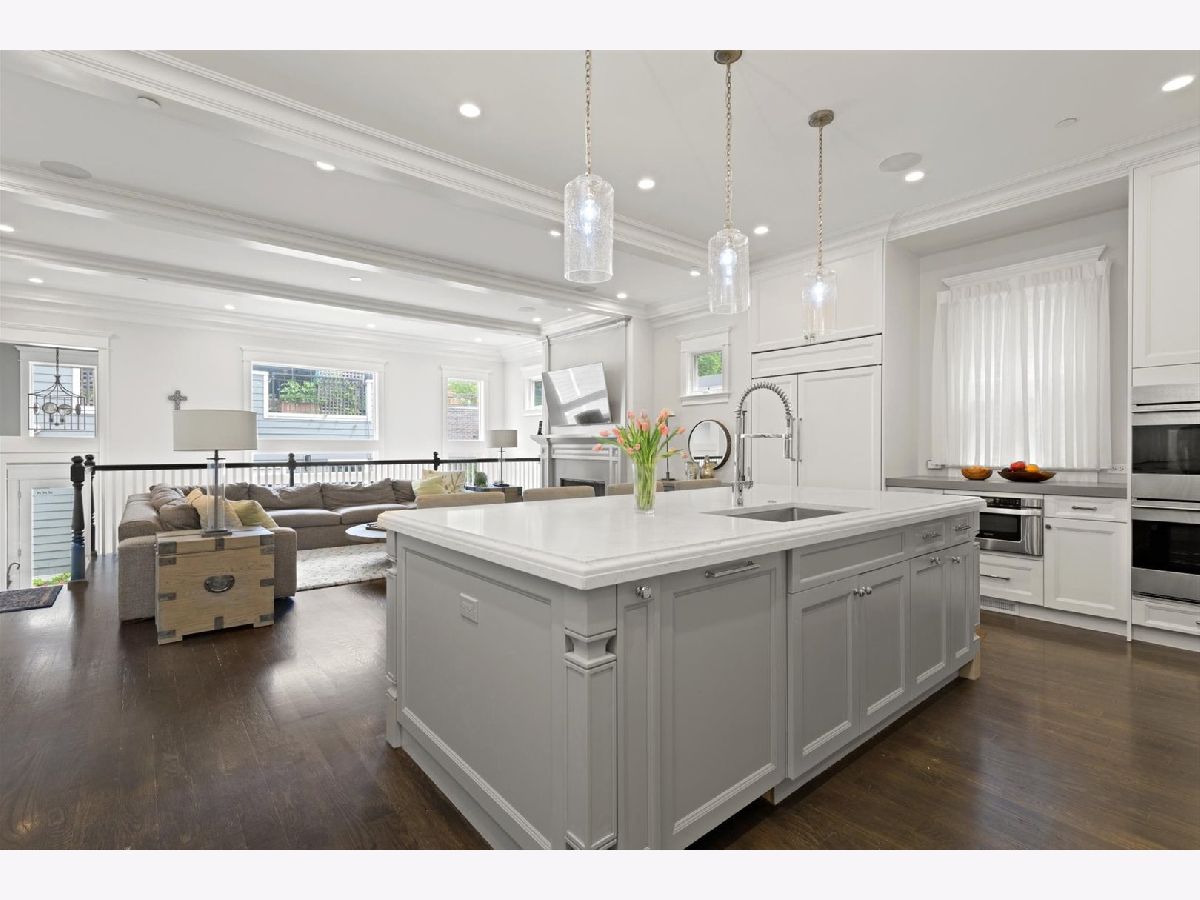 Newly Built Extra Wide Home on a 30 ft lot, built by UNA Design & Build, steps from Bell School, parks, boutique restaurants, shops, public transportation and much more! Featuring 6 Bedrooms, w/ 5 full baths and 2 powder rooms. Architecturally designed timeless finishes with many custom features makes this home unique & better than new construction. A wide open floor plan with tons of sunlight, Hardie exterior with stone facade detailing & front steps with radiant heat and custom trim and millwork installed by Chicago's premiere carpenters. Designer style kitchen with full overlay custom cabinets, large center island, Sub Zero & Wolf appliances and an extra spacious pantry. Includes an intuitive floor plan that allows for functional and natural flow to lower level which is radiant heated , featuring an open and large family room w/ wet bar & 2 additional rooms, including a second master bedroom with 1.5 baths, and potential workout room/office along with spacious bedrooms that overlook Bell Ave. Top floor has 4 ensuite bedrooms, including a Master Suite with spa-like shower,2 vanities, and steam shower , all baths have heated floors. Outside backyard offers stone pavers and garage rooftop deck w/outdoor dry bar and covered veranda. Will sell fast!