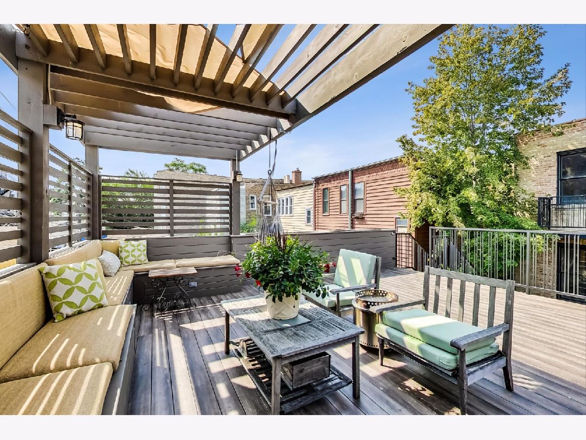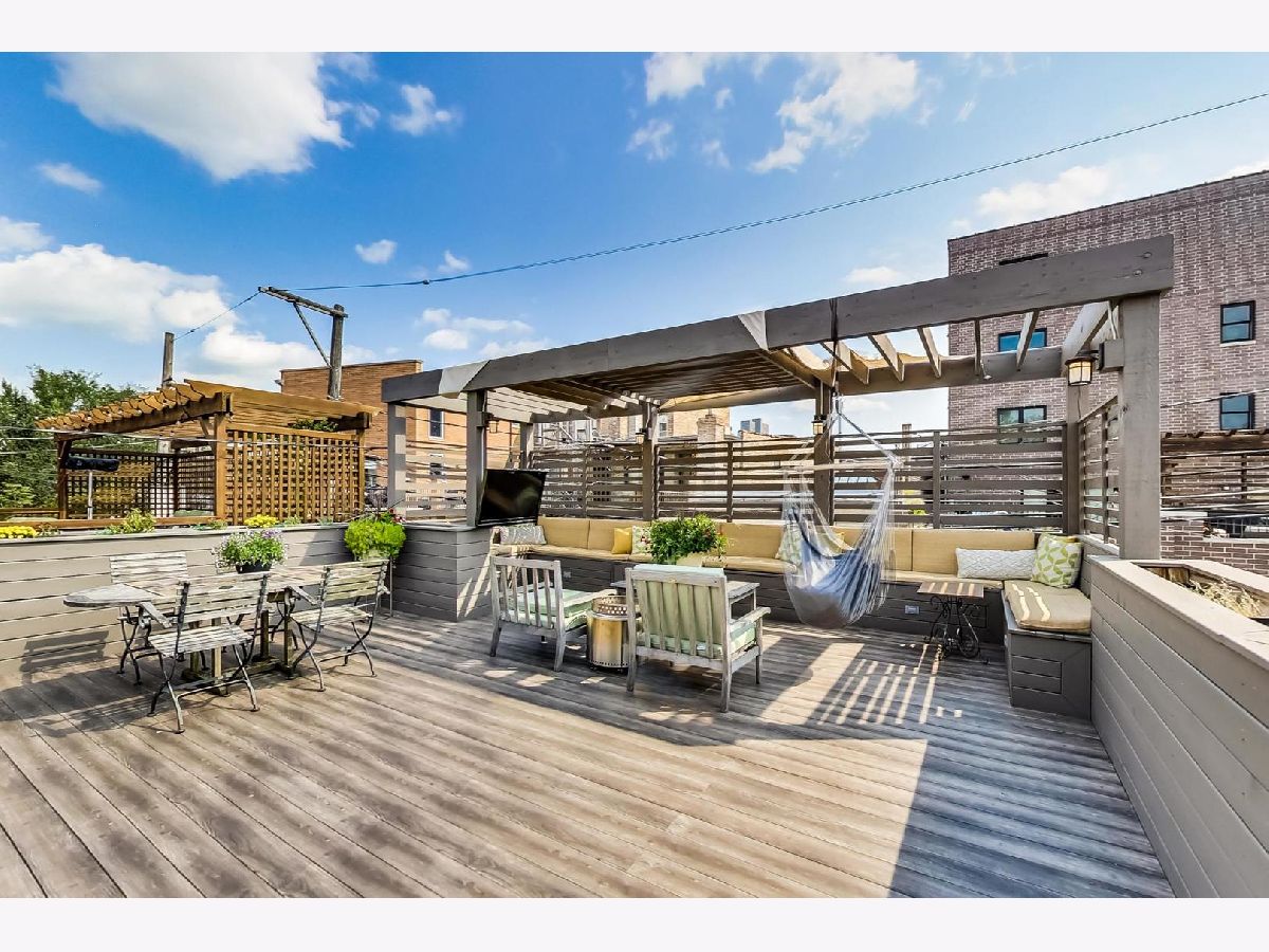 PRIME LAKEVIEW HOME located in Blaine Elementary. 2021 updates include BRAND NEW tear-off roof, NEW HVAC & NEW tankless hot water heater for lower level radiant heating. Beautiful Greystone with 4-bedrooms, 3.5 baths with 2 car garage on one of the most charming blocks in Lakeview/Southport Corridor. Living room features gas fireplace and open concept dining, with seating for 10. Large eat-in chef's kitchen (updated 2020) w/ white cabinets, classic white tile backsplash, high end appliances (Thermador, Miele, GE Monogram), built in desk/homework station, and coffee bar/cocktail bar. Plenty of room for a breakfast area or additional seating. Private gated front yard and fenced in backyard directly off the kitchen, as well as access to the giant rooftop deck (rebuilt 2019), wired for sound, TV, and electric. Back yard is pavers with a garden wall - w/ watering system. First level and primary bedroom suite are wired for sound. Upstairs features extra-large primary bedroom with walk-in closet, sitting area and en-suite bathroom with soaker tub, steam shower, and new (2020) balcony. Two more large bedrooms with tons of closet space and full bathroom, as well as a large laundry room complete the upper level. Lower-level features radiant heat flooring, a large bedroom, office/workout room, a full bath, and a giant family room, perfect for entertaining. Home is zoned for another level up (potential for a full floor primary suite) Close to CTA, restaurants, entertainment, shopping, Lake Michigan, Wrigley, and more.
