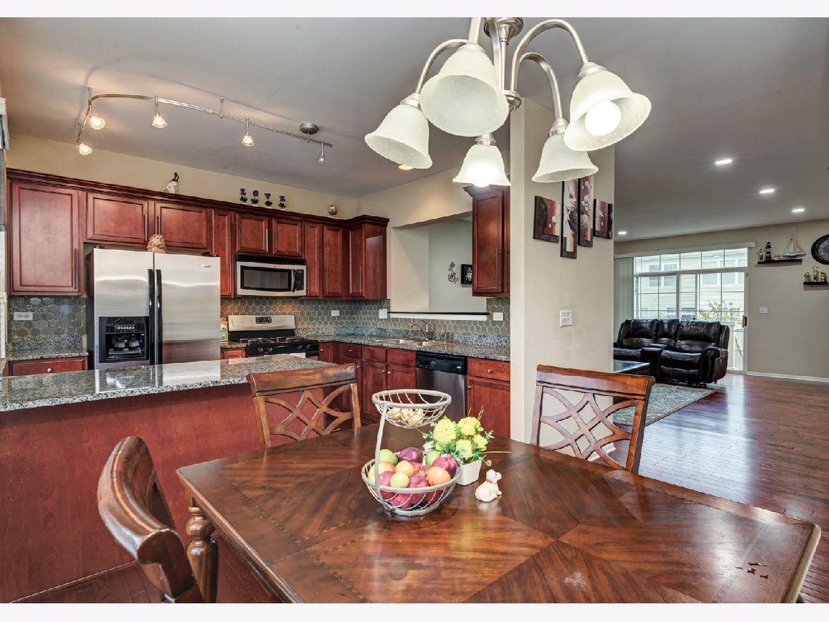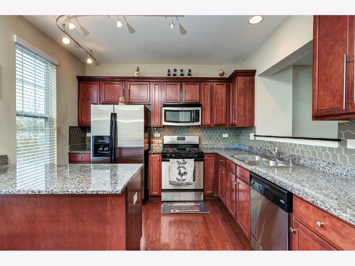 Look no further! Well maintained, North facing, town home with 2 bedrooms and a large loft that can be converted into 3rd bedroom with many upgrades in highly desired Yorkshire Square subdivision. Fully upgraded kitchen with granite top, 42 inches cherry cabinets, good size pantry and stainless steel appliances with eat-in kitchen. Hardwood floor throughout main level. Open main floor plan with plenty of natural light in family room is perfect for entertaining and adjacent sliding glass door that leads to the deck to sit and relax. Private deck w/stairs to back yard / common area w/mature trees. Second floor offers spacious master suite with private master bath that has dual vanities, w/vaulted ceilings and walk-in closet. Large loft is perfect for home office. Mud/laundry room w/garage access. The oversized 2 car garage offers plenty of storage area. Great location with easy access to shopping, dining, entertainment, highways and Metra station. 2018 water heater, 2020 - garbage disposal, and stove/oven replaced. District 204 schools!