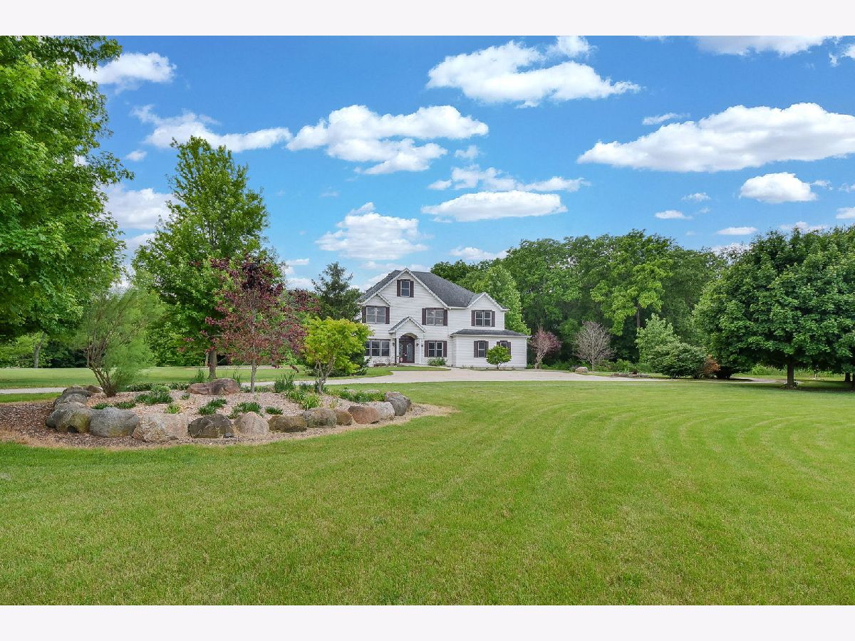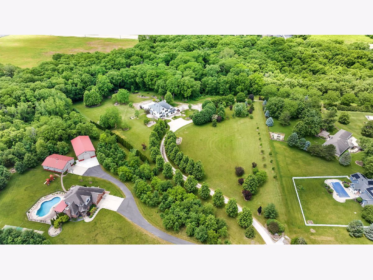 Looking for a quiet, peaceful refuge to call home? Here it is! A tree-lined winding driveway leads to this beautiful Custom Built 2-story house, nestled on a cul-de-sac. The many windows usher in plenty of natural light & pretty views. Open floor plan creates opportunities for larger gatherings. Walk in to a welcoming foyer with stained glass door panels. Main floor boasts both a living room & office (flex rooms) which can be used for what best suits your needs. Recently painted large dining room provides another place to gather. Kitchen features SS appliances, walk in pantry, plenty of cabinetry & counter space. Sliding glass doors lead to patio, perfect for enjoying meals & views. Oversized family room has fireplace, ceiling fan and extra large windows. Hardwoods throughout main level. Full bath along with a walk in storage closet complete the first floor. Take the extra wide staircase up to the 2nd floor reveals extra wide hallways, newer luxury carpeting & padding, luxury vinyl Duramax flooring. Primary en suite showcases an extra large bedroom with newer carpet, ceiling fan & custom Hunter Douglas room darkening window treatments. Relax in the gorgeous, recently remodeled bathroom with skylight, new cabinetry & dual sinks, Quartz counters, new toilet, flooring, & a whirlpool tub/shower with stylish tile & glass surround. Large walk-in closet perfect for your wardrobe. Also on the 2nd floor, there are 5 generous sized bedrooms, with one having a full bath & another fully plumbed to add another. Convenient laundry room with sink & newer washer and dryer make laundry easy! Additional storage room for all the extras. Discover the full size, very spacious walk-up attic with multiple skylights & newer attic fan. Great for storage or convert to a gaming room, art studio. So much potential awaits there along with the unfinished full walk out basement. High ceilings and plenty of light. Features another beautifully finished bath. Two attached garages offer plenty of room for vehicles with a 3 car side loading garage & an additional 6 car garage, providing space for ATV's, boats, etc... The professionally landscaped 6+acres of loveliness, the property showcases a small creek, various garden beds & a plethora of gorgeous trees, including several fruit trees. Brick paver patio & fire pit are situated near the sweat lodge, or better known as an outdoor sauna! So unique! Newer dishwasher & Hunter Douglas custom window treatments. Dual zoned w/separate systems. Short drive to Illinois River, Goose Lake Prairie State Natural Area & downtown. Truly a hidden gem!