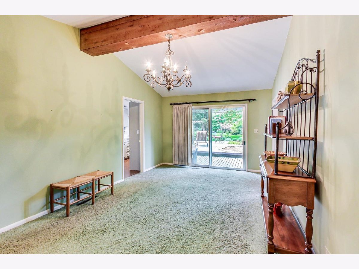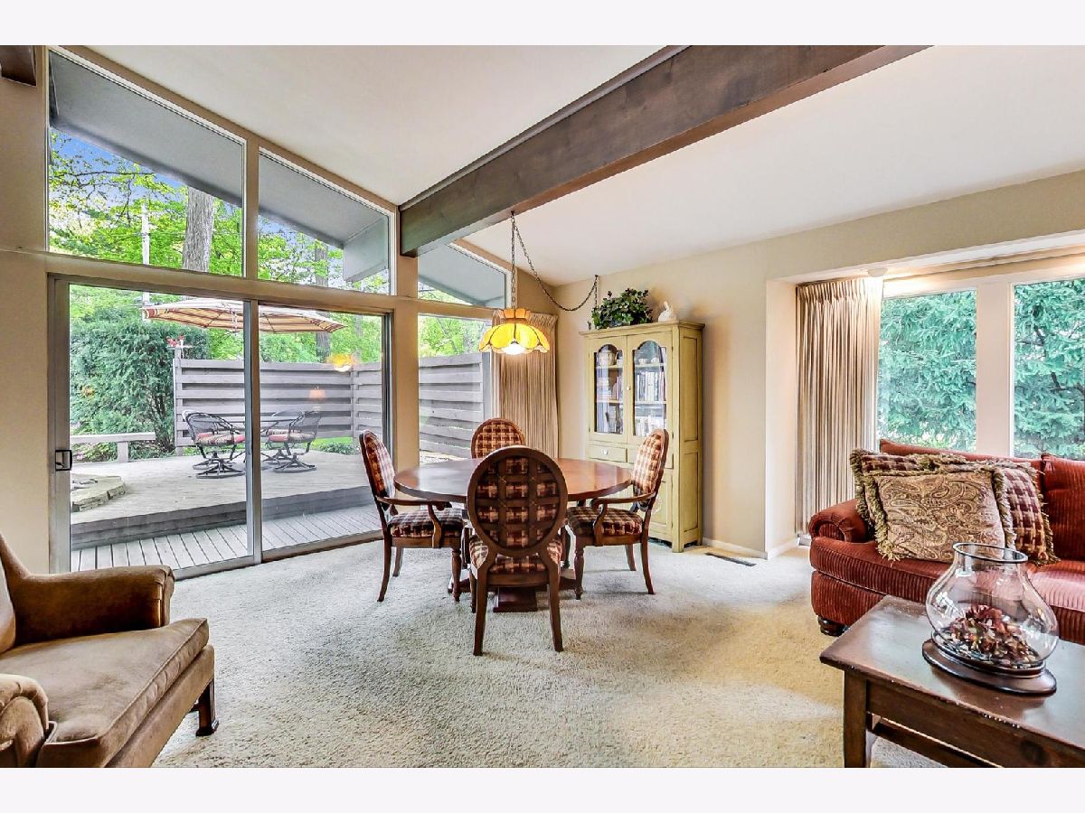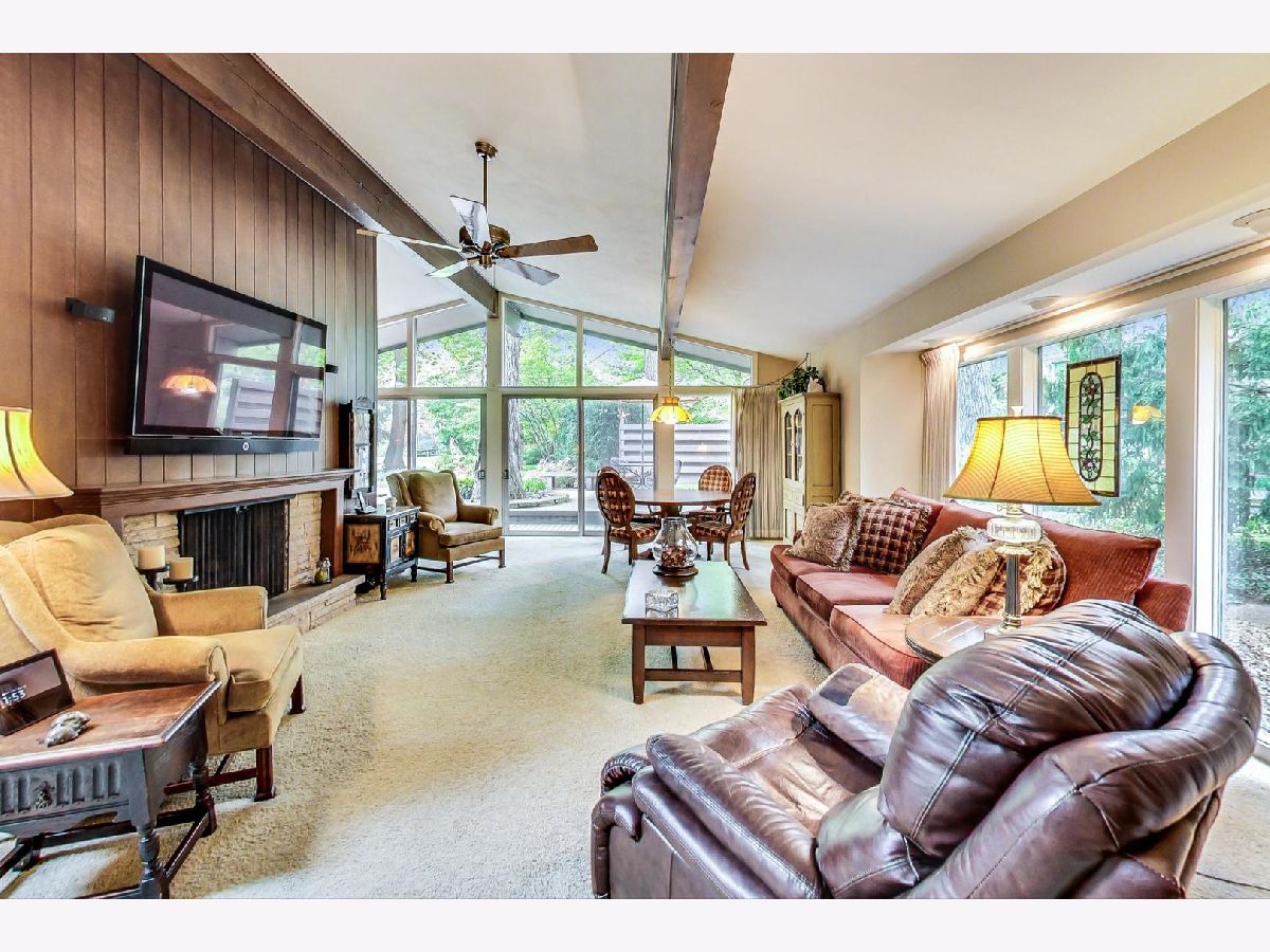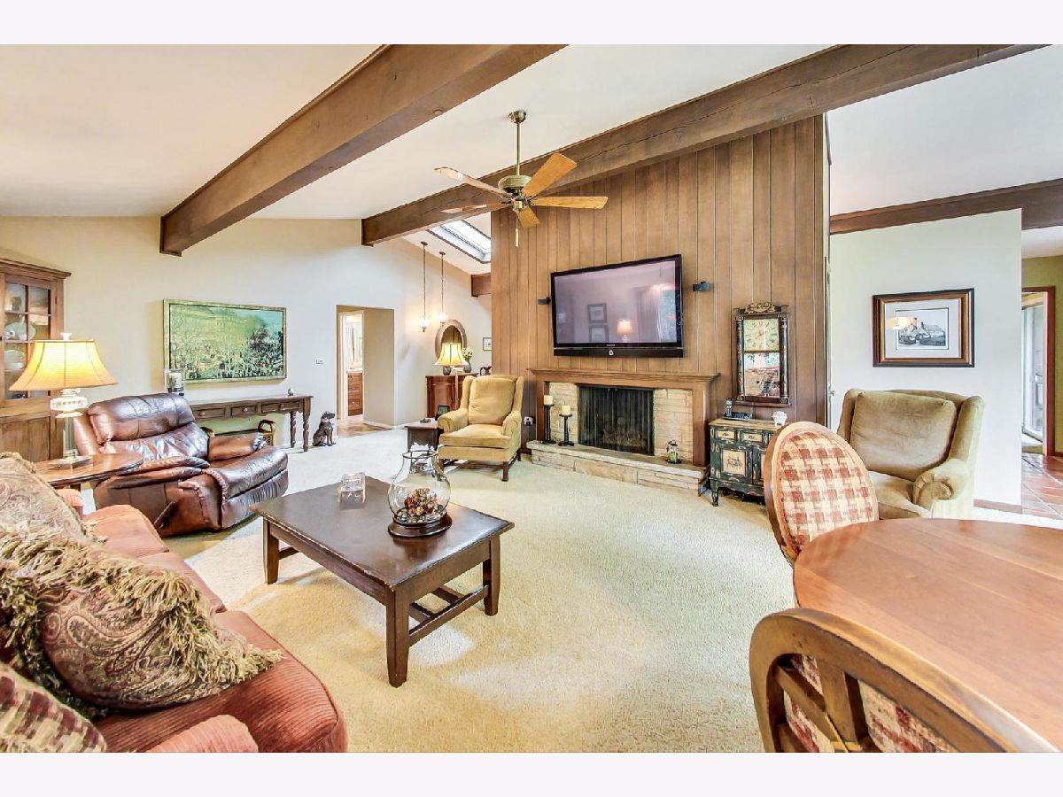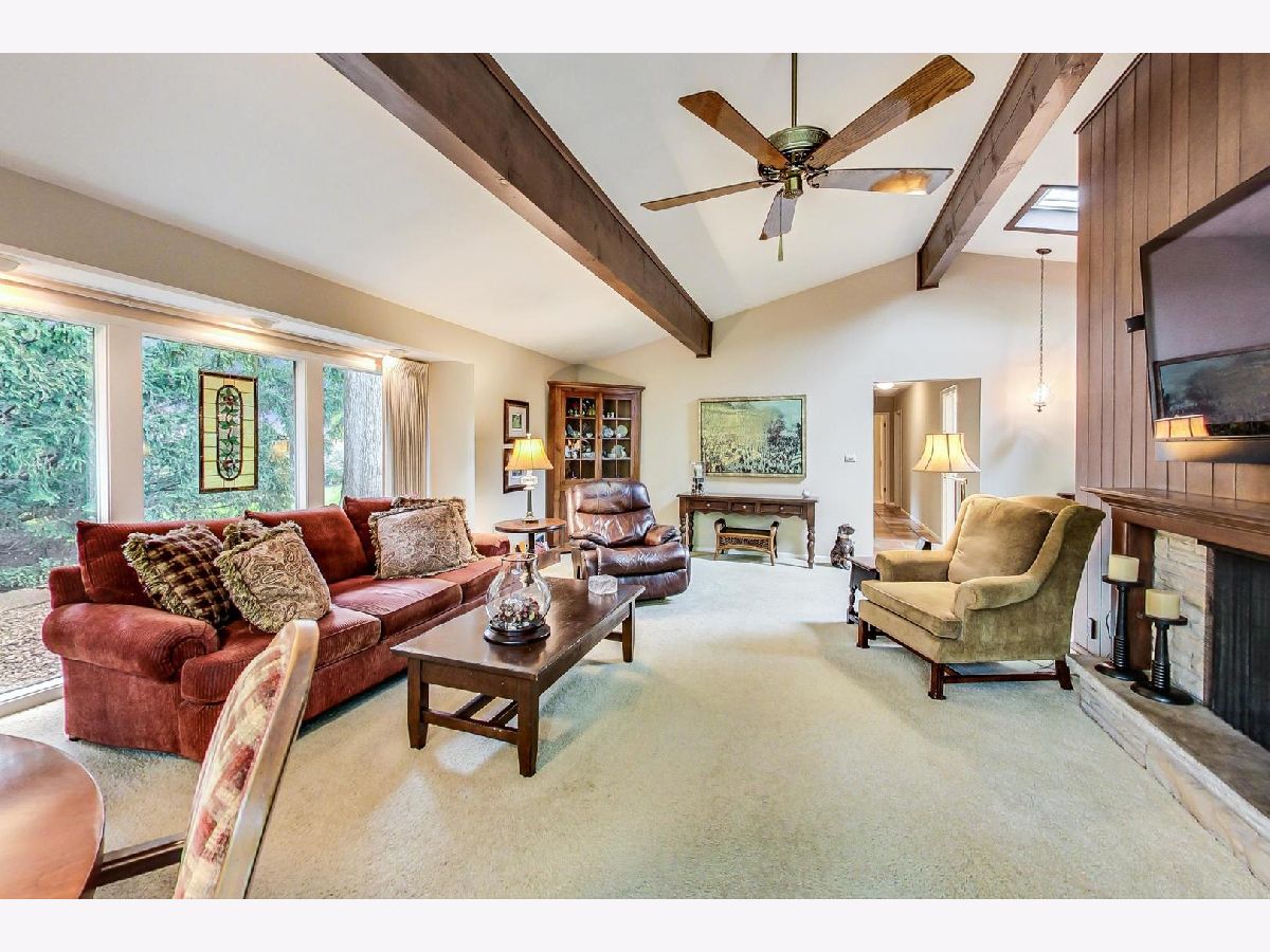 Stroll down Cumberland Drive and stop to admire the curb appeal at #38. Enter this warm and well-maintained 4 bed/2.5 bath Ranch retreat-like home. Its spacious foyer, terra cotta tile, volume ceilings, expansive windows, sliders and skylights that allow an abundance of natural light will win you over. Nestled on .61 acre of sprawling greenery and majestic trees you will feel captivated by the serene setting. The gracious sized family room, with its vaulted ceilings, wood beams, cozy fireplace, wall of windows & multiple sliding doors invite western exposure and open to the expansive deck, leading to your own private oasis, providing a comfortable and relaxed atmosphere for entertaining guests or simply unwinding after a long day. The Kitchen with vaulted ceilings, custom cabinets, stone counters & a double oven also enjoys natural light and opens to a separate Dining room. Off the Dining room find: a fabulous wow, oversized Pantry room (Costco closet) w/built-ins, cubbies & a freezer. Lastly the Laundry & half Bath that lead to the attached 2.5 Car garage. The 4 Bedrooms & 2 Baths are on the eastern side of the home. The Primary suite includes a walk-in closet, updated Bath w/a shower. 3 additional Bedrooms and updated 2nd Bath w/nicely tiled tub/shower. This Blue-chip area is steps to Spring Lake park, Des Plaines river walking trail, dining, shops, the tollway & Award-winning Stevenson school district. Come with your decorating ideas and make it your own! First showings Thursday 5-18 from 11 am-3 pm. Brings your clients!