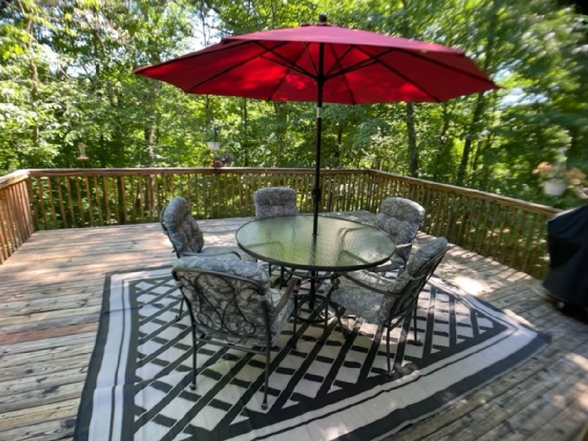 WOW! This home is utter perfection. No detail was overlooked. Huge sun drenched living room features a heat-a-lator fireplace for those cool nights at home. The modern kitchen has a breakfast bar and ample table space. Bedrooms on both levels with the main suite upstairs. Walk onto the 20x18 back deck and marvel at the beauty of the woods. Keep an eye out for deer, turkeys and hummingbirds as all are abundant here. The deep walkout basement has many windows for natural light so it's easily finished off into additional bedrooms and living space, with sliding door to the yard. All appliances are included and sellers will consider a turn key sale (furnishings). Two lots here and no immediate neighbors = serene privacy. Come enjoy Lake Thunderbird's boating, fishing, tubing, swimming pool and beach. Once here you will not want to leave. This will not last long.