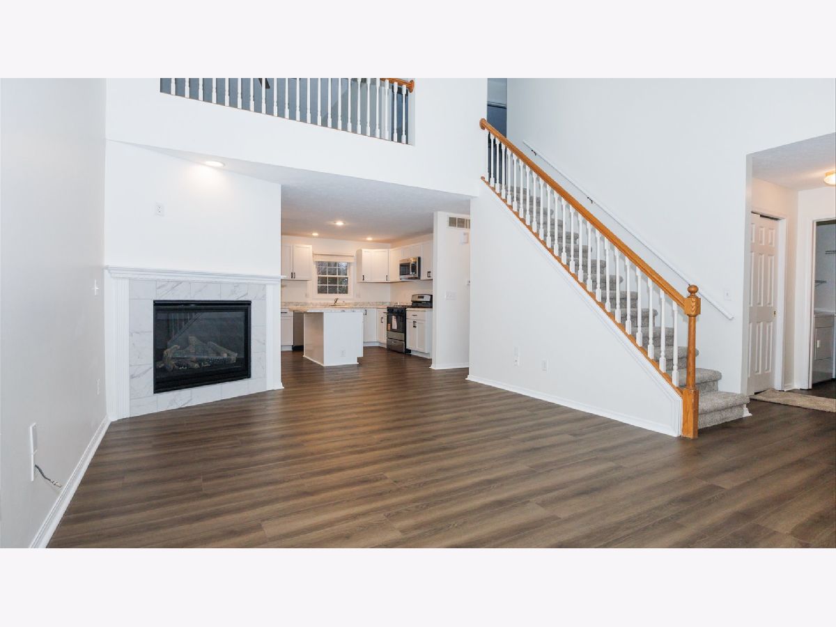 Beautifully fully renovated 2-bedroom, 2-bath home in Bloomington! Step inside to discover a bright and open layout featuring vaulted ceilings in the family room. Brand-new luxury vinyl flooring flows seamlessly throughout the home, offering both style and durability. The inviting family room centers around a cozy gas fireplace - perfect for relaxing evenings at home. The eat-in kitchen is thoughtfully designed with an island for extra prep space, casual dining, and entertaining. Convenience meets comfort with a main-floor primary bedroom and a full bathroom on the first level. Upstairs, you'll find the second full bathroom and a versatile loft that overlooks the family room - ideal for a home office, reading nook, or additional lounge space. The finished basement expands your living options with additional gathering space, complete with a built-in wet bar - perfect for hosting friends and family. A dedicated storage area keeps everything organized and tucked away. Step outside onto the deck, where you can enjoy your morning coffee or unwind with dinner in the evening breeze. A 2-car attached garage adds everyday convenience and extra storage. This completely updated home offers modern updates, functional living space, and inviting charm - ready for you to move in and enjoy!
