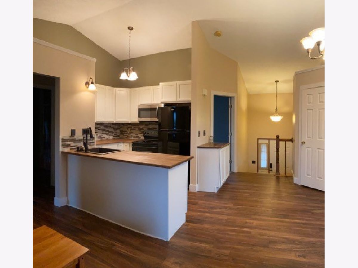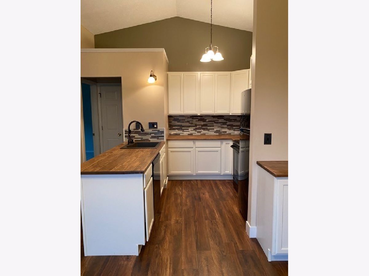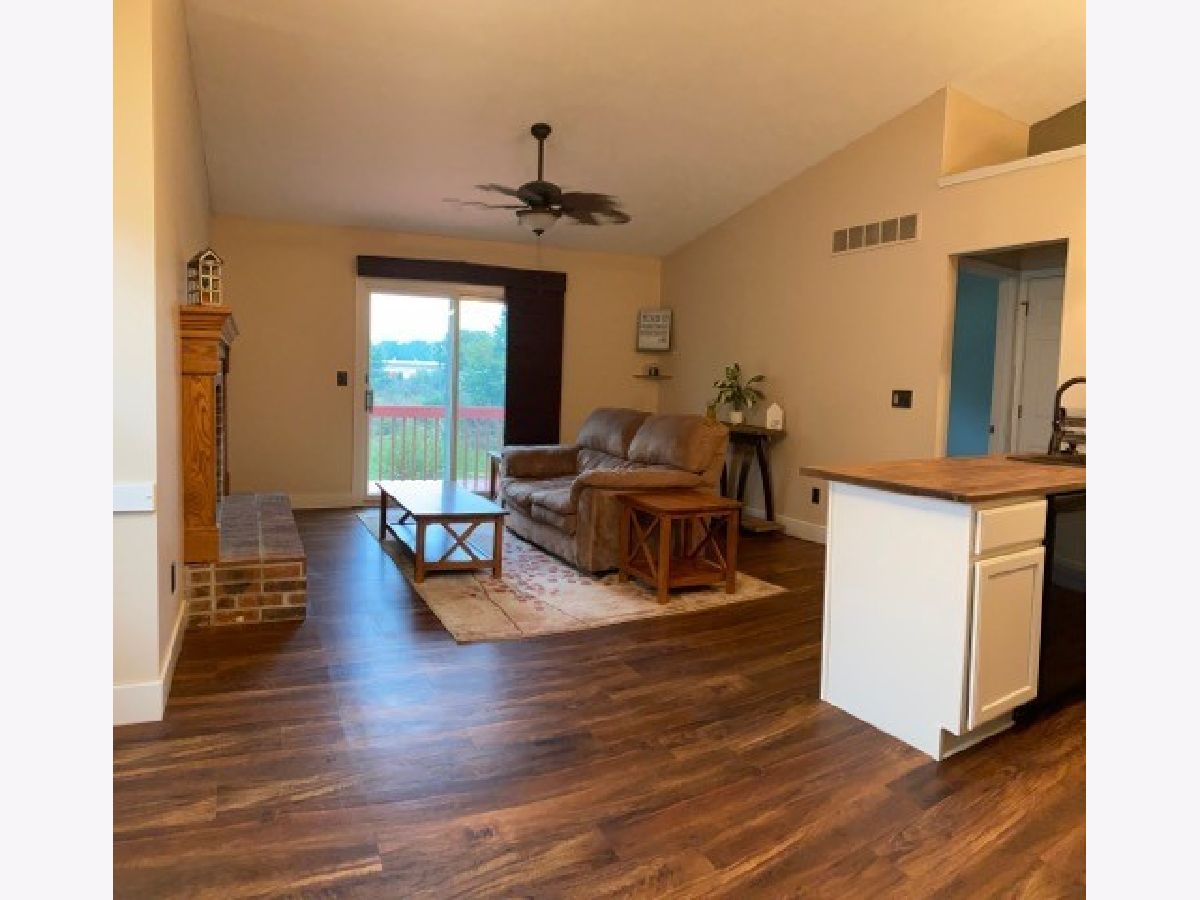 Just WOW! Completely remodeled Kitchen with gorgeous butcher block counter tops, glass tile back splash and SS appliances. All new LVP flooring throughout open kitchen and living room. New carpet and freshly painted porch, deck and new windows for maintenance free living for many years to come. Top this beauty off with an open back yard space for the nature and privacy lover a cozy wood burning fireplace when our Midwest temps drop, and we have a WINNER!