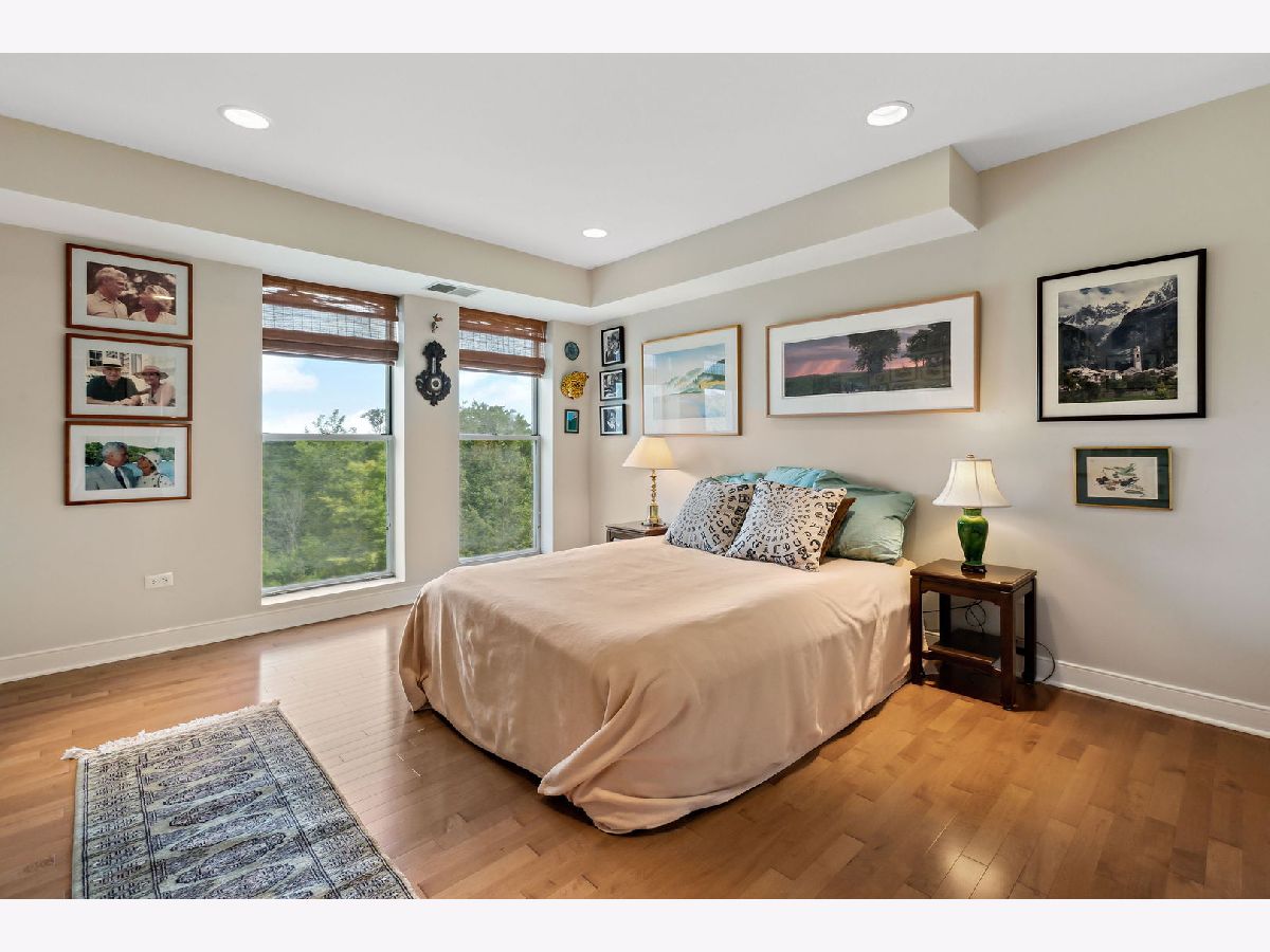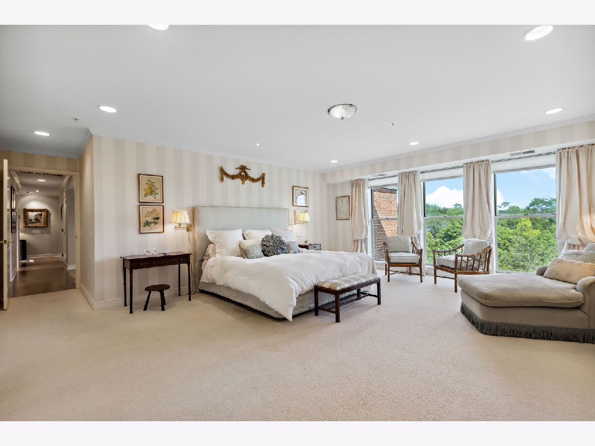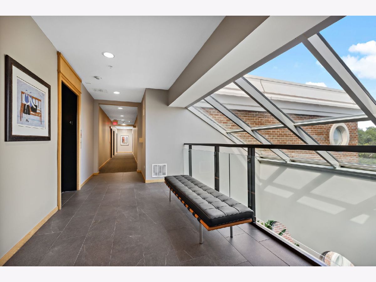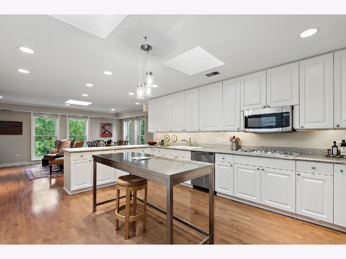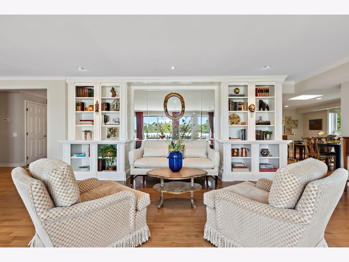 Rarely available, this top floor sophisticated penthouse has the most incomparable space and functional floor plan offering the best of living in desirable Hedge Row. One of the largest and gracious units in the building, this elegant 3 bedroom, 2 1/2 bath corner end unit overlooks the tree-tops creating a calm serene space, coupled with custom design features through-out composes harmonious and refined living. The wide foyer is welcoming and opens into the expansive living room and dining room encircled by greenery at every window brings the outdoors in. Combined with a warm fireplace, beautiful hardwood floors, extensive wood details, built-ins, beveled wall mirrors and a wall of windows overlooking the significant balcony - this home is so appealing and perfect for entertaining! The huge chef's kitchen features new stainless steel appliances, double oven, Fisher Paykel double DishDrawer, Sub-Zero Fridge, generous counter space and cabinets and large central eating area - great for an island or small table. Adjoining the kitchen is a comfortable family room - enjoy relaxing and cooking with this open living concept. The substantial primary bedroom has both a walk-in closet, additional large closet, linen closet and beautiful marble bath offering a double vanity, Kohler hardware, separate shower and jacuzzi tub. There are 2 additional bedrooms, several windows in each room and one with another walk-in closet. Also included is a laundry room with side-by-side washer/dryer and sink, large powder room for guests and 2 additional large hall closets for storage. This well-designed home flows from one room to the other with hardwood floors throughout and filled with light from 6 different sky-lights. Plus, there is an extra private storage room just off the 2 car garage spots - storage galore! Don't miss this tasteful home in a stellar locale near the library, in the heart of Winnetka, close to restaurants, shopping, train, beach and parks!
