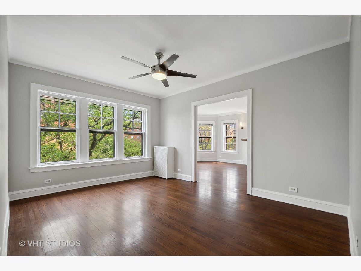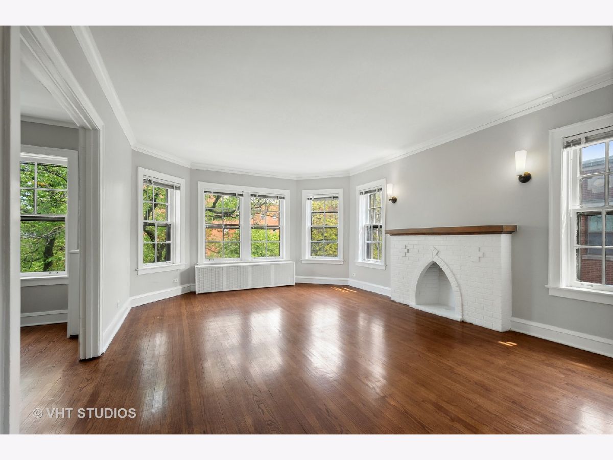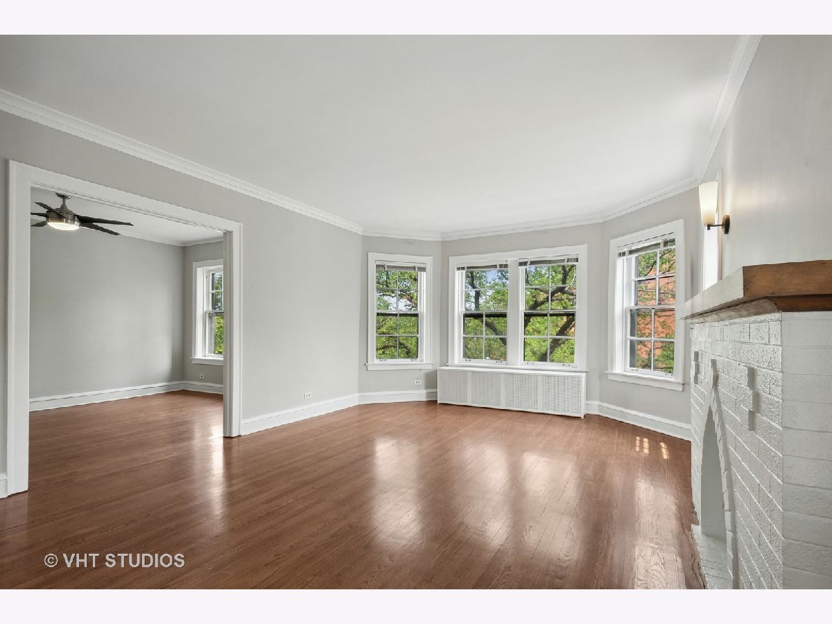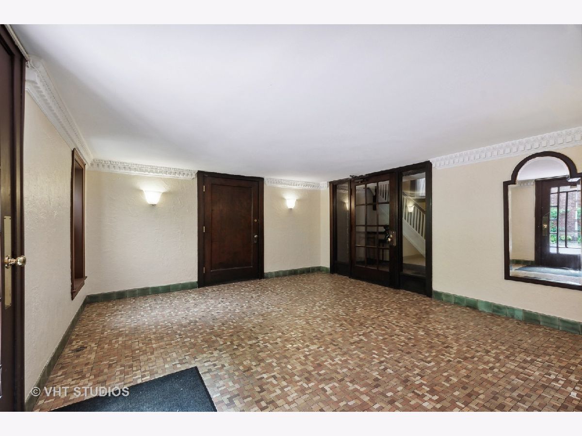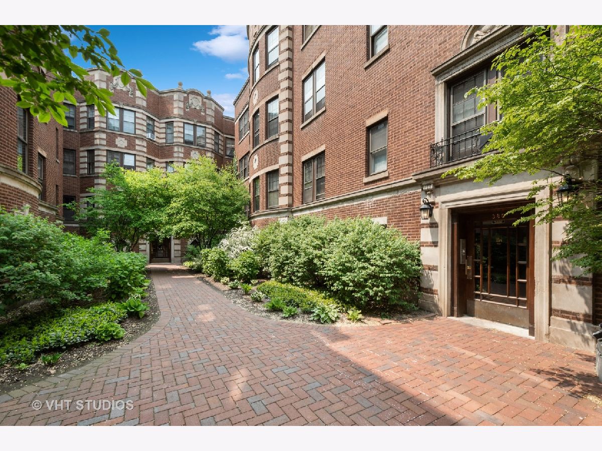 Vintage beauty in Evanston's historic Saint Francis Courts. First impressions matter, and this building does not disappoint as you enter through gorgeous landscaped courtyard surrounded by the brick exterior with beautiful stone detail. Generous, welcoming foyer leads into East facing living room flooded with light, featuring a decorative fireplace. White kitchen with stainless steel appliances is right across the way from the separate formal dining room for relaxed mealtime and entertaining. Split floor plan offers 3 generously sized bedrooms and two full baths. Crown molding and hardwood floors throughout. Lovely communal brick patio on ground level for grilling and gathering. Extra storage space and rechargeable card laundry easily accessed at the base of the rear stairwell. Healthy reserves and well maintained building. 75 Max weight for dogs, 2 cats maximum per unit. No rental restrictions.